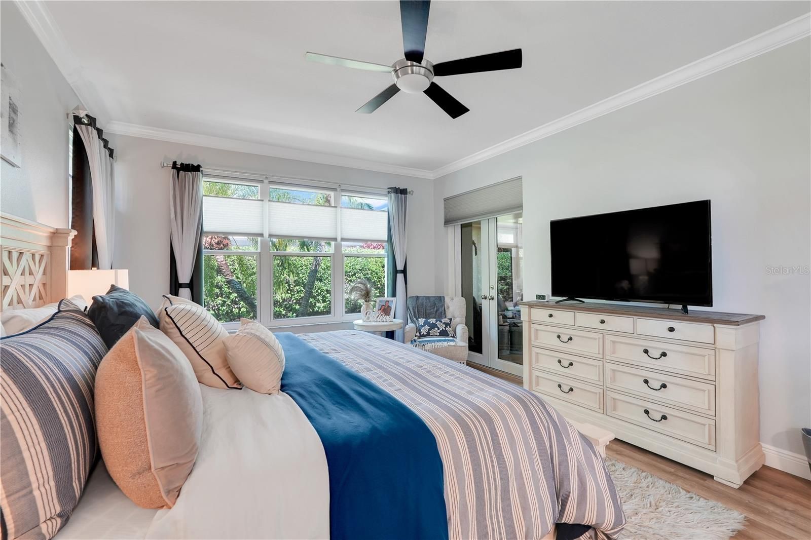 - Ceiling Fan(s), Crown Molding, Eat-in Kitchen, Open Floorplan, Main Level Primary, Stone Counters, Thermostat, Walk-In Closet(s)