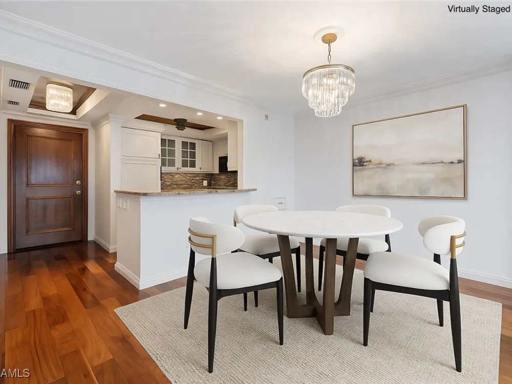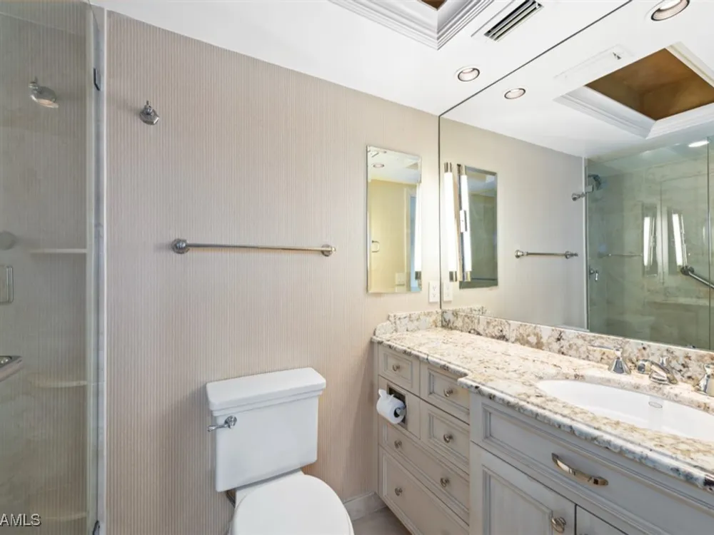 Stunning Bay views, prime location, boating and the beach all come together in this beautifully kept two bedroom, two bath residence in Beacon House. Just steps to the private Moorings Beach Park and only minutes by boat through Doctor’s Pass to the Gulf, this condominium residence offers the best of Naples waterfront living. Interior highlights feature Brazilian mahogany hardwood floors, decorative mirrors, custom trey ceilings and millwork throughout; all with extreme attention to detail. A thoughtfully designed kitchen features a dry bar with beverage cooler, granite countertops, custom cabinetry and integrated appliances. The screened lanai runs the entire length of the unit, providing the perfect spot to enjoy sunrise, sunset, and relaxing bay breezes. The Beacon House buildings boast completely renovated first floor amenity levels with light & bright social rooms, entry lobbies and two guest suites for overflow visitors. An income producing marina offers owners slips for lease up to 40' and the perfect Doctor's pass location, with direct access to the Gulf. Residents also enjoy a Kayak & SUP launch, deeded covered parking, private owners storage and more!