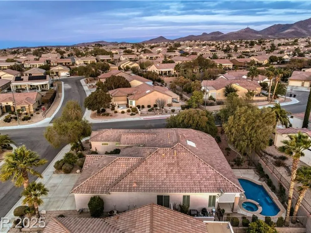 Spectacular Anthem Floorplan with Pool & Spa on Oversized Corner Lot in the premier 55+ age restricted community of Sun City Anthem! Home features approximately 3175 SqFt of living space w/4 Beds, 3 Baths, & oversized 2 Car Garage. Open Floorplan w/Spacious Living Room/Dining Room Combo w/Wet Bar, Ceiling Fan, and Large Radius Windows. Island Kitchen w/ Granite Countertops, Breakfast Bar, Nook, Pantry, Recessed Lighting, B/I Oven, Gas Cooktop, Microwave, & Dishwasher. Separate Family Room w/ Gas FP, Ceiling Fan, & Built-Ins. Owner's Suite with 2 W/I Closets with Organizers, Sitting Area, Custom Built In Cabinets & Drawers, & Bath w/Separate Raised Vanities w/Sinks, Garden Tub, & Shower. Junior Suite w/Ceiling Fan and Bath, plus 2 Secondary Bedrooms w/Ceiling Fans. Neutral Two Tone Paint, Plantation Shutters, Alarm System, Tile on Diagonal, Laundry Room w/Utility Sink & Cabinets, Water Conditioner, Courtyard Entry, Rear Yard w/Covered Patio, Sparkling Pool & Spa, & Mountain views!