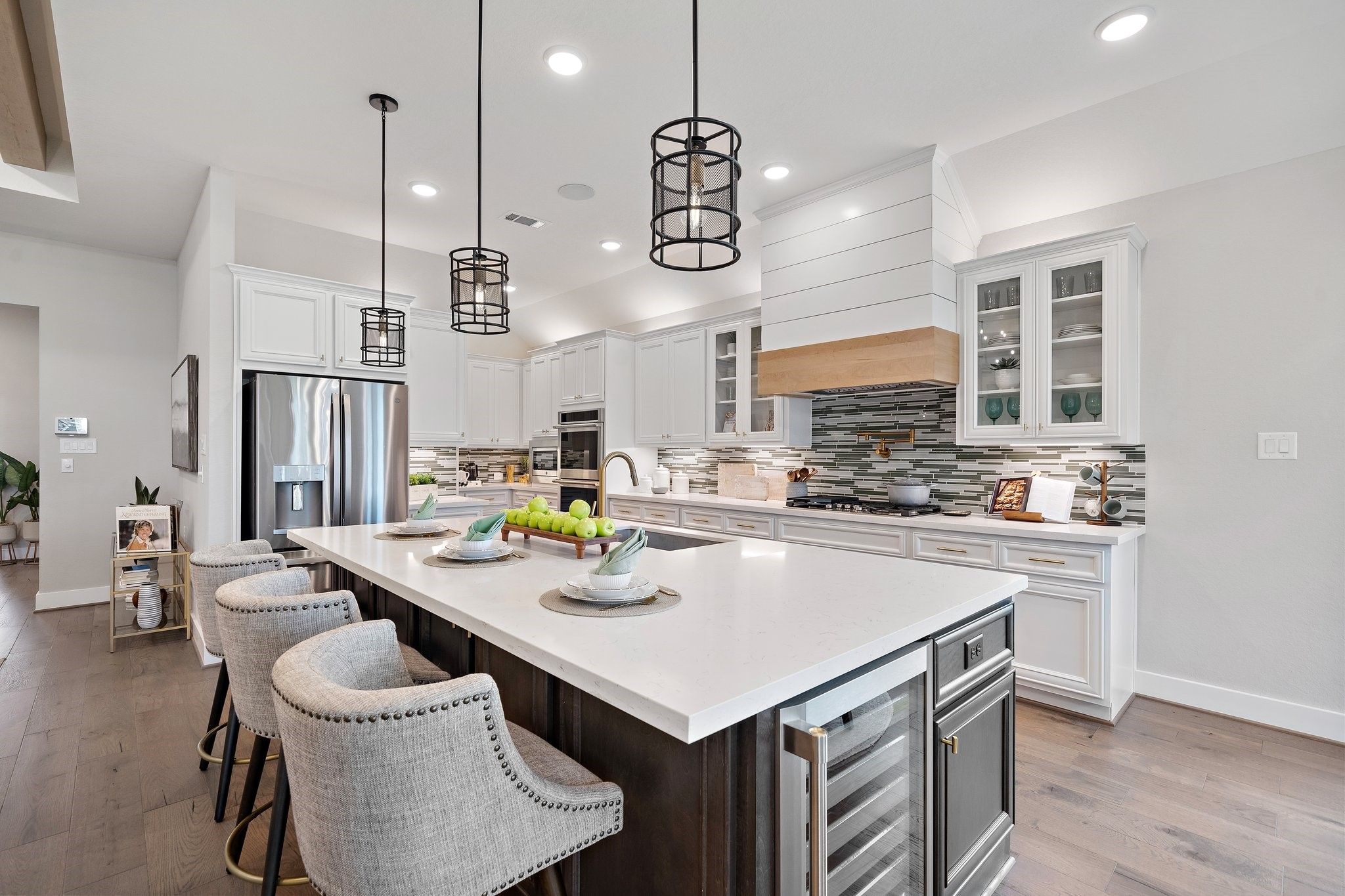 The moment everyone has been waiting for—our premier Bluebonnet model home in The Highlands is for sale! Set on a premium cul-de-sac lot with panoramic golf course views, this showcase home comes fully furnished with professionally curated designer pieces and will be ready for a May closing. Offering 3 bedrooms, 2.5 baths, and a 3-car garage with dedicated golf cart storage, this open and inviting layout is filled with luxurious upgrades, custom built-ins, enhanced lighting, and model-exclusive details throughout. Enjoy a full home speaker system with Sonos, built-in cameras that stay with the home, and beautifully styled living and dining spaces designed to capture sweeping golf course views. Move-in ready and impeccably furnished, this is a rare opportunity to own a true model home in The Highlands—complete with resort-style amenities, scenic trails, and world-class golf right outside your backdoor.