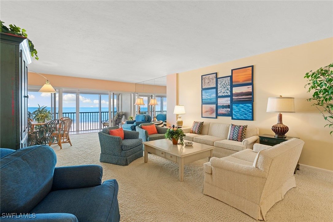 Direct front-row Gulf views take center stage in this three bedroom, three bath end-unit at Gulf View Beach Club, positioned on the south end of the building with sweeping west-facing Gulf and beach views and spectacular sunsets. This light-filled floor plan features an expansive great room opening to a screened, covered Gulf-front balcony, creating an ideal backdrop for coastal living and entertaining. A second, east-facing balcony invites refreshing front-to-back breezes. The generous primary suite enjoys Gulf views and balcony access, while two guest suites each feature en-suite baths. This residence presents an exceptional opportunity to customize and create your ideal beachfront retreat in one of Naples’ premier coastal settings. Gulf View Beach Club has one of the most desirable beachfront locations south of Doctor’s Pass, and is an intimate building with just 32 residences, offering direct beach access, a beachfront pool and patio, social room, fitness center, on-site manager, individual storage rooms, paddleboard and kayak racks. Just minutes from luxury shopping and fine dining of downtown Naples, this is beachfront living at its finest.