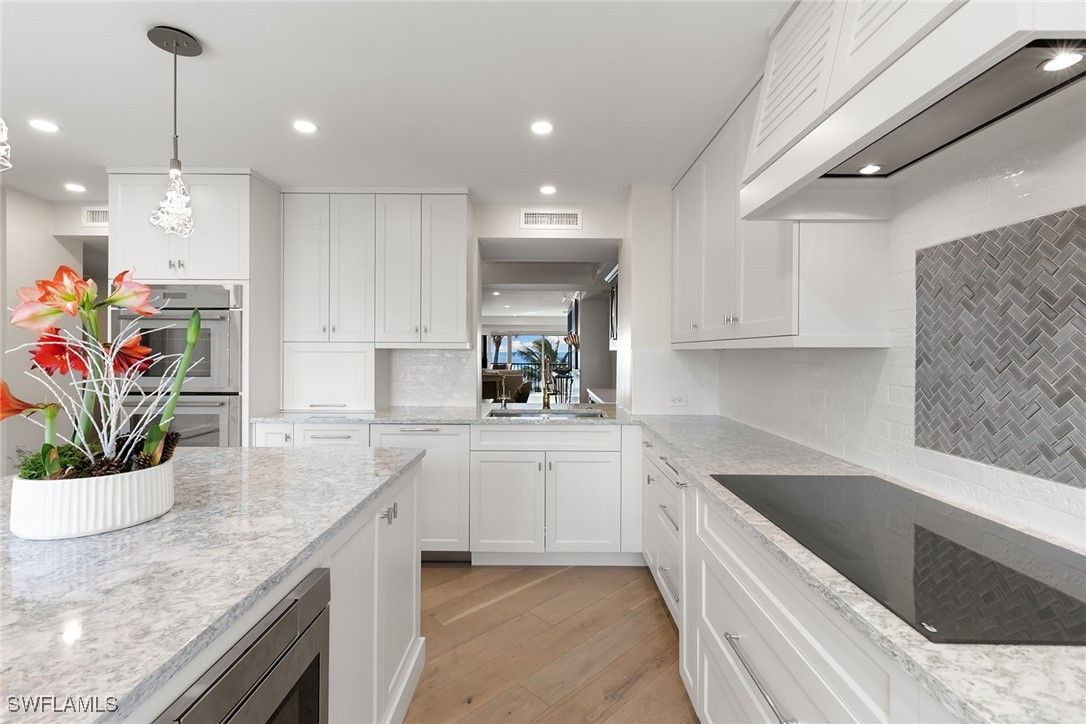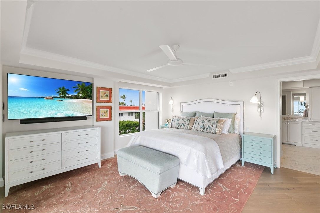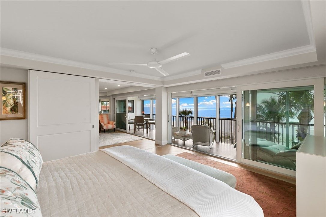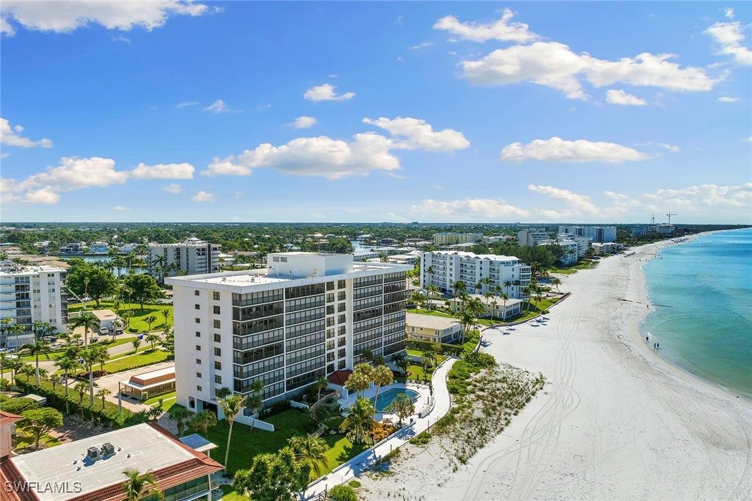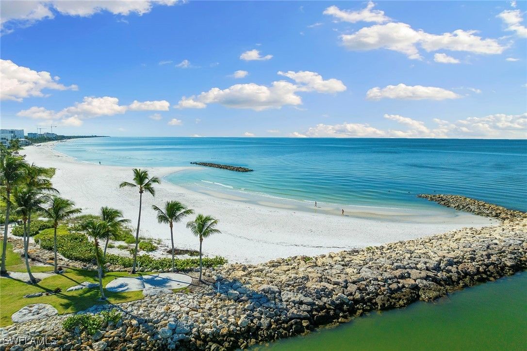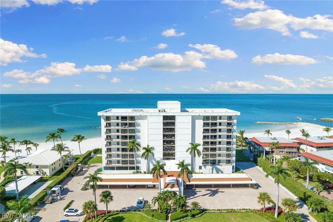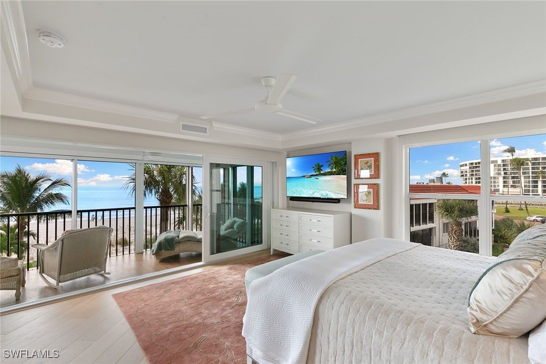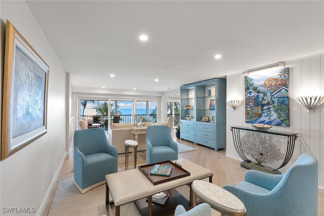 Truly spectacular direct, unobstructed front-row views of the Gulf from this updated beachfront residence. Widely regarded as offering one of the captivating views in all of Naples, this three-bedroom, three-bath end unit features a spacious open floor plan designed to maximize water views and natural light. The expansive great room opens to a screened, covered Gulf-front balcony and is enhanced by gorgeous light oak wood flooring throughout. The beautifully updated kitchen offers custom white cabinetry and built-in stainless steel appliances, seamlessly connecting to an elegant dining area with custom planked ceiling and a custom bar with wine cooler, ideal for entertaining. A second, bay-side balcony allows for refreshing front-to-back breezes. The generous primary suite enjoys gulf views and balcony access, while two additional guest suites each feature their own en-suite bath. Gulf View Beach Club has one of the desirable beachfront locations south of Doctor’s Pass, and is an intimate building with just 32 residences, offering direct beach access, a beachfront pool and patio, social room, fitness center, on-site manager, individual storage rooms, paddleboard and kayak racks. Just minutes from luxury shopping and fine dining of downtown Naples, this is beachfront living at its finest.