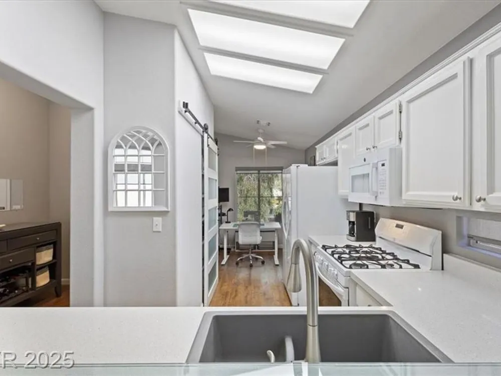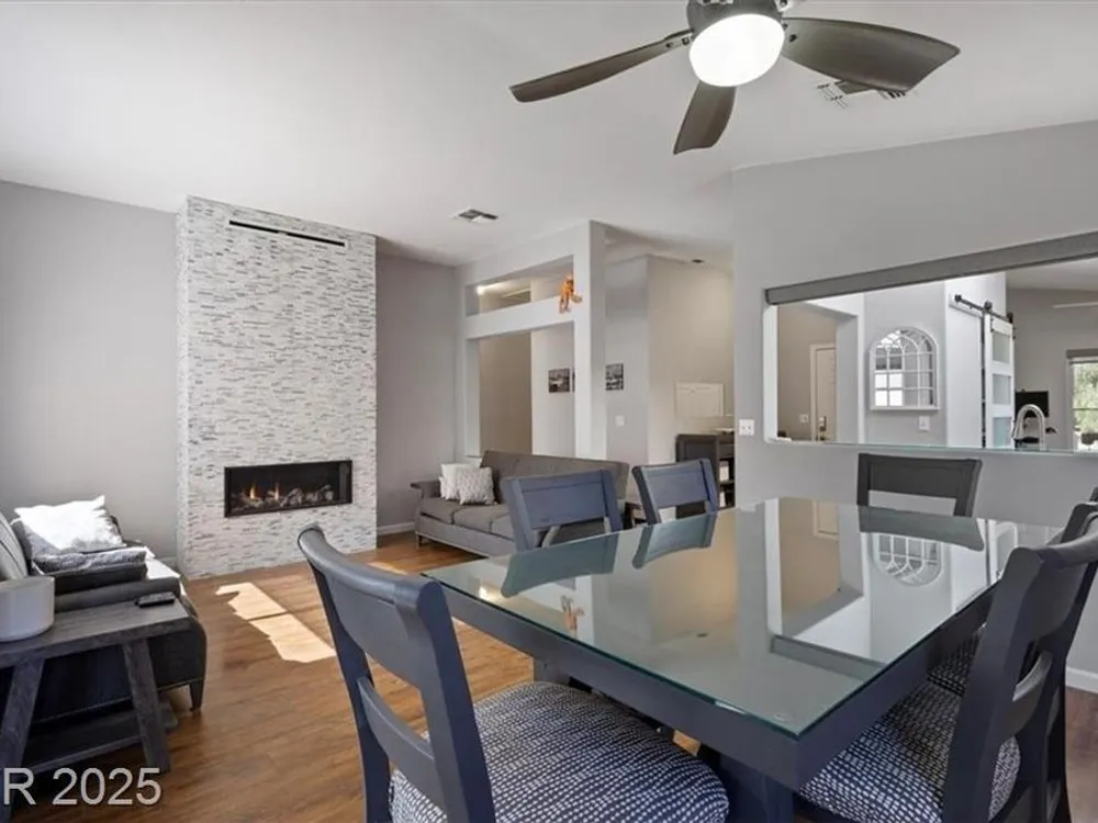 Step inside to discover a stunning new floor-to-ceiling fireplace, the centerpiece of the spacious living area. The home features fresh interior paint and designer touches throughout, including barn doors on the pantry and coat closet that add a touch of rustic charm. Enjoy two remodeled bathrooms with upgraded finishes, den with built in desk and cabinets. The home is equipped with solar screens for added efficiency and comfort year-round. Perfectly located close to the clubhouse, golf course, and community amenities, this home offers the best of resort-style living in a serene neighborhood. Home comes complete with security film on windows.