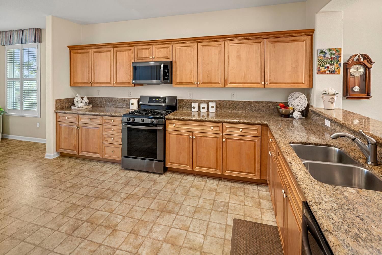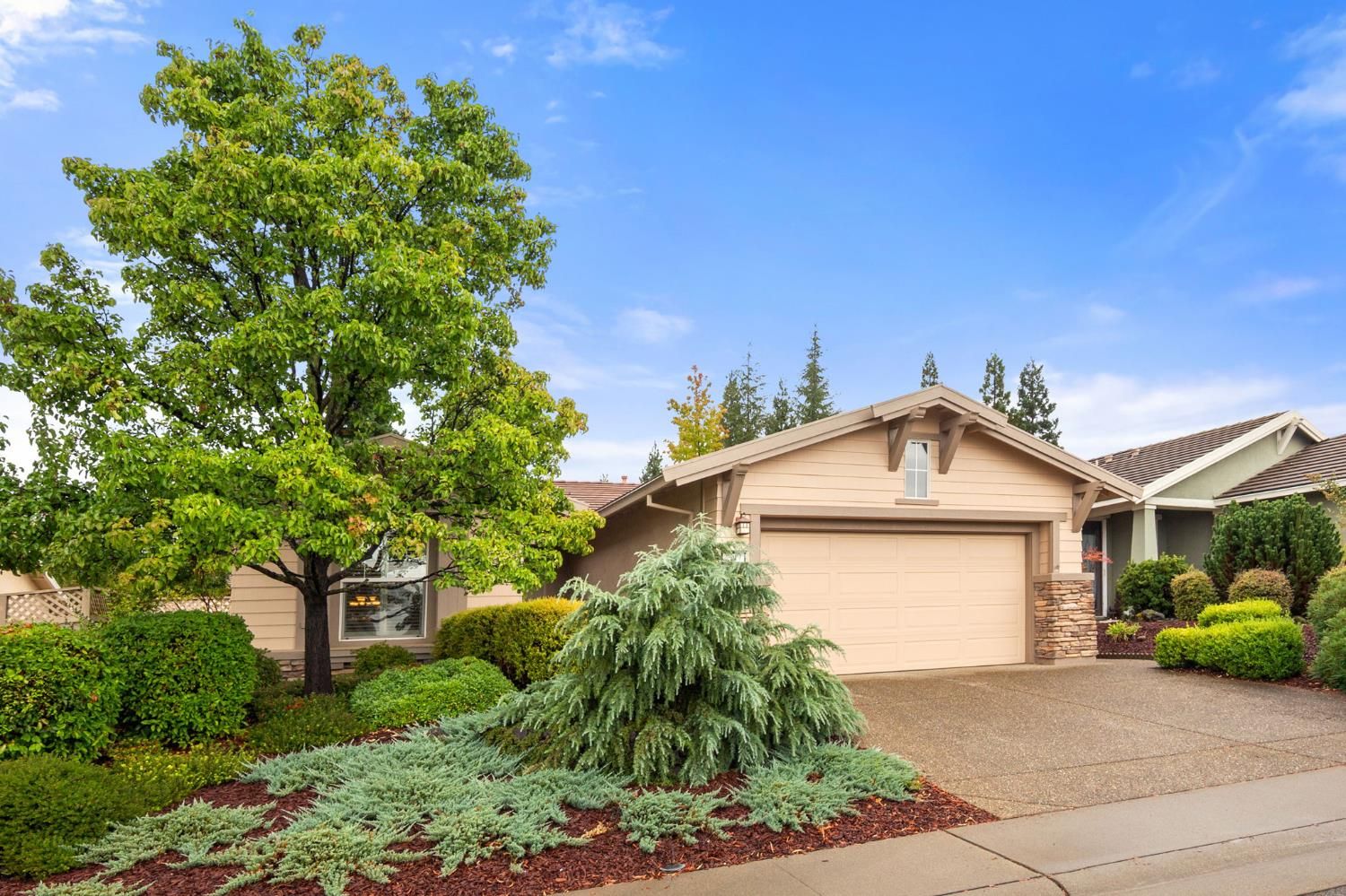Welcome to Sun City Lincoln Hills, where every day feels like you're on vacation! Experience the vibrant lifestyle of this 55+ community with the delightful and rare Tehama model. NO Kitec, and priced to sell. Ideally located in a serene, elevated area with easy access to SCLH entrance and exit. This move-in ready home boasts a spacious layout featuring 2 bedrooms plus an office/den, 2 bathrooms, and kitchen equipped with granite countertops, SS appliances, beautiful cabinetry, cheery front breakfast nook. The home showcases lovely flooring, elegant shutters, and a 2 car-garage with quality storage. Clear sense of pride in ownership throughout. The open floor plan seamlessly connects the Great Room, dining area, and counter seating, nice flow for entertaining guests. The primary suite serves as a tranquil retreat, overlooking a peaceful East-facing back yard, ideal for enjoying the morning sun while remaining cool throughout the day amidst lush greenery and plenty of shade. As a resident of Sun City Lincoln Hills, you'll have access to an impressive array of amenities, including two 18-hole golf courses, fitness centers, swimming pools, a restaurant and pub, pickleball courts, and much more! Discover the active and fulfilling lifestyle that awaits you in Sun City Lincoln Hills.
