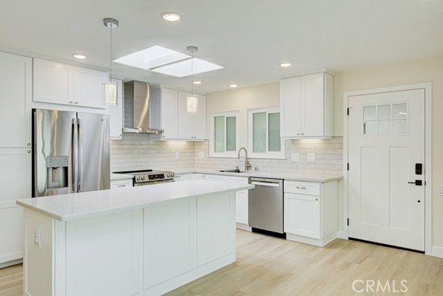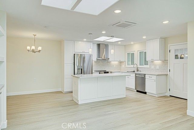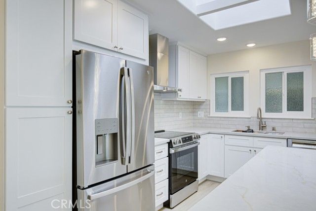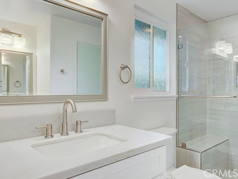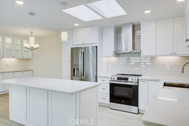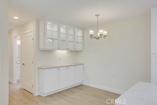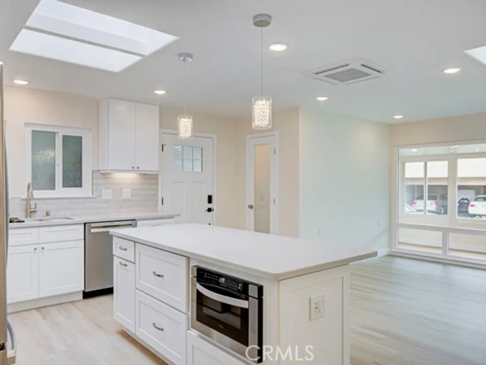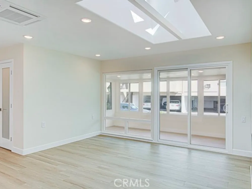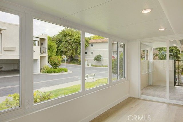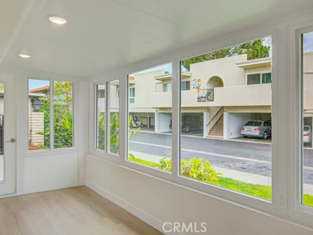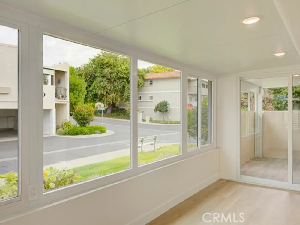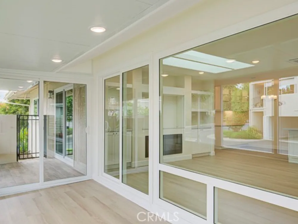 Light, bright, and newly remodeled single-level 2BR/2BA in Laguna Woods Village (55+) Gate 5 with no one above or below and same-level carport for easy access. A reimagined plan opens to an enclosed, covered patio converted to a sunroom-perfect for office, art space, or morning coffee. The living room with built-in entertainment center and electric fireplace is bathed in natural light from a Velux solar skylight with remote-control shade. The new kitchen adds a walk-in pantry, GE range & refrigerator, Bosch dishwasher, and euro-style hood. In home laundry with LG washer/dryer. Year-round comfort via an energy-saving mini-split A/C (ceiling cassette) with independent zone control. The primary suite features a remodeled bath with double vanity and linen cabinet. Solid wood interior doors with Craftsman-style entry door. Approx. 1133 sqft of easy single-level living plus a sun-filled bonus room. Enjoy resort amenities - clubhouses, 5 pools & spas, 27 hole golf courses, tennis courses, fitness centers, equestrian facilities, garden centers, library, art & crafts, studios, and 200+clubs- about 6 miles to Laguna Beach and close to shopping, dining, medical, and major routes.