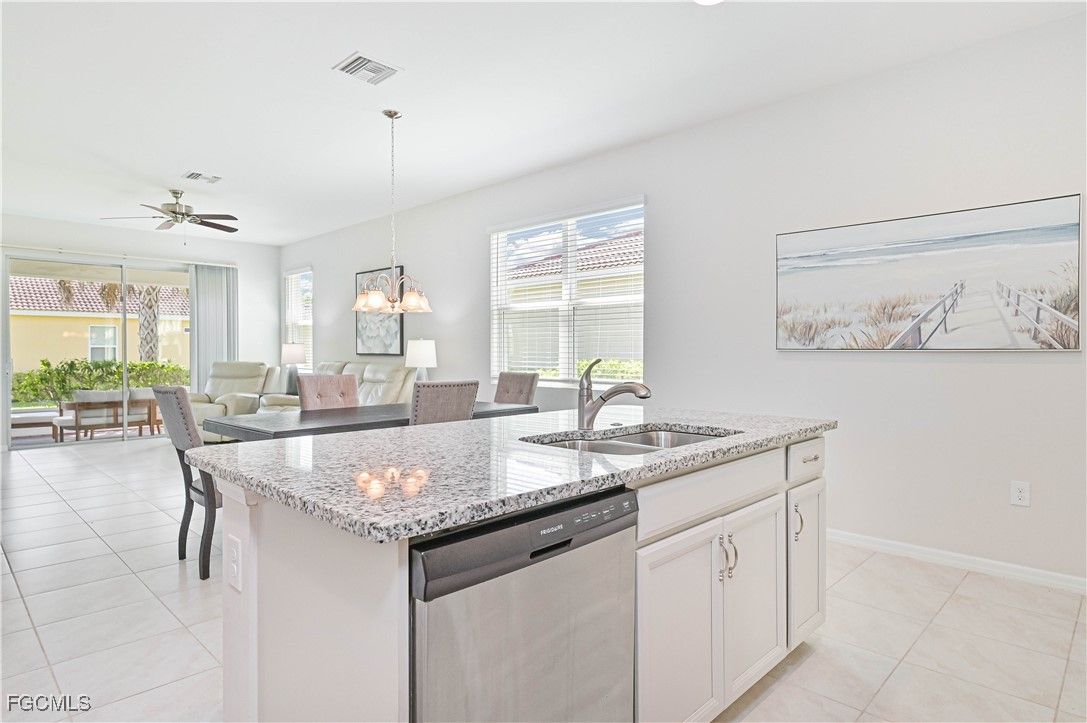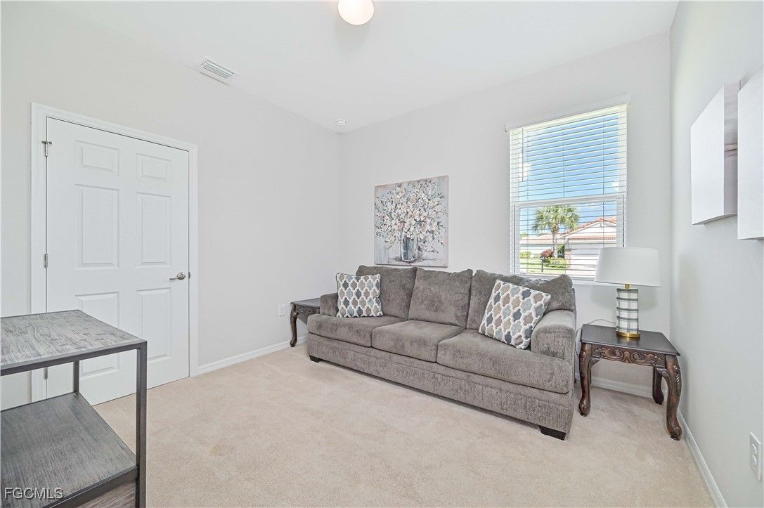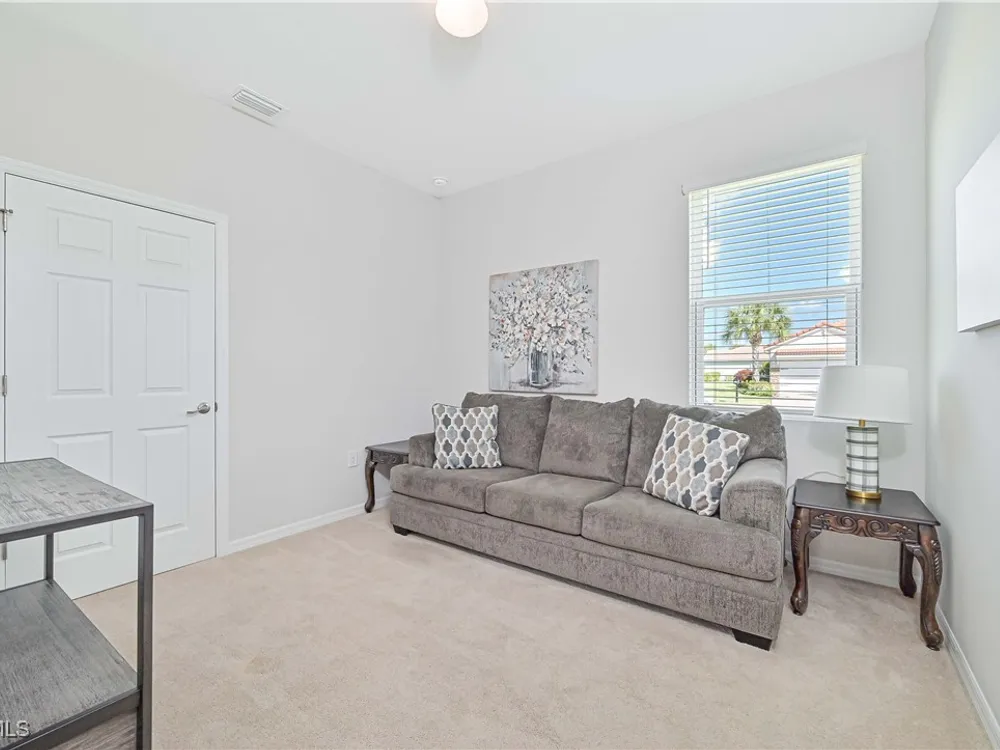 Welcome to your dream retreat in the vibrant 55+ community of Cascades at River Hall! This beautifully maintained 2-bedroom + den, 2-bath home sits on a spacious corner lot with stunning lake views, offering tranquility and privacy. Fully furnished for your convenience, the open-concept layout includes a versatile den perfect for a home office, hobby room, or guest space. The low HOA fee of just $343/month covers resort-style amenities such as a pool and spa, fitness center, tennis, pickleball, and bocce courts, full cable and internet, lawn care and landscaping, plus a calendar packed with social clubs and activities. Whether you're relaxing by the pool, joining a pickleball match, or mingling with neighbors at one of the many community events, this home offers the perfect blend of comfort, convenience, and connection. Located in the heart of River Hall, you're just minutes from shopping, dining, and all that Southwest Florida has to offer. Ready to embrace resort-style living every day? This turnkey gem won’t last long!