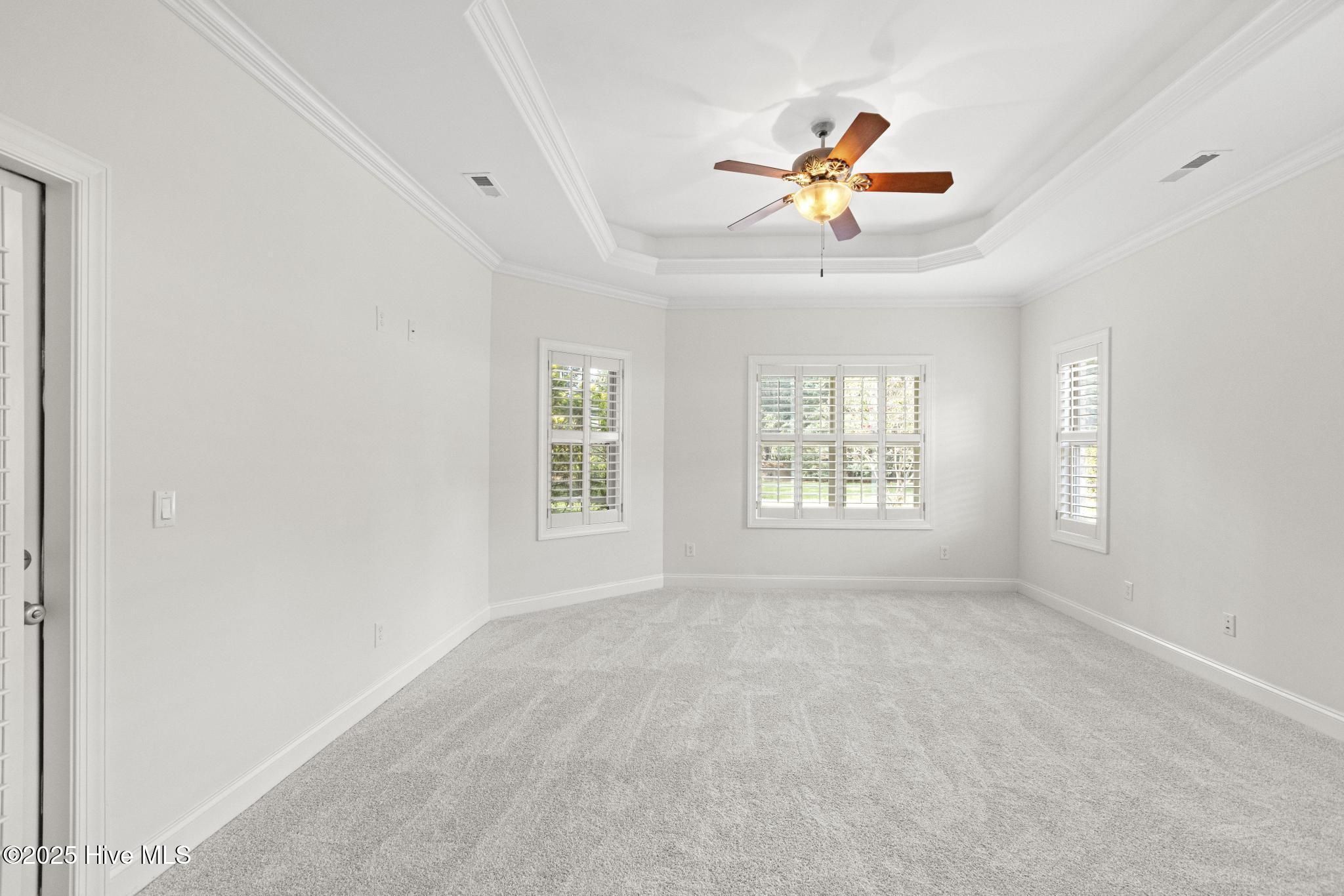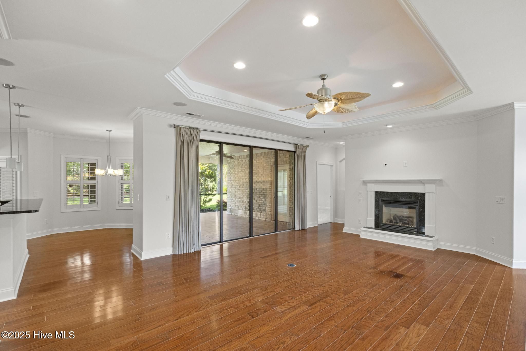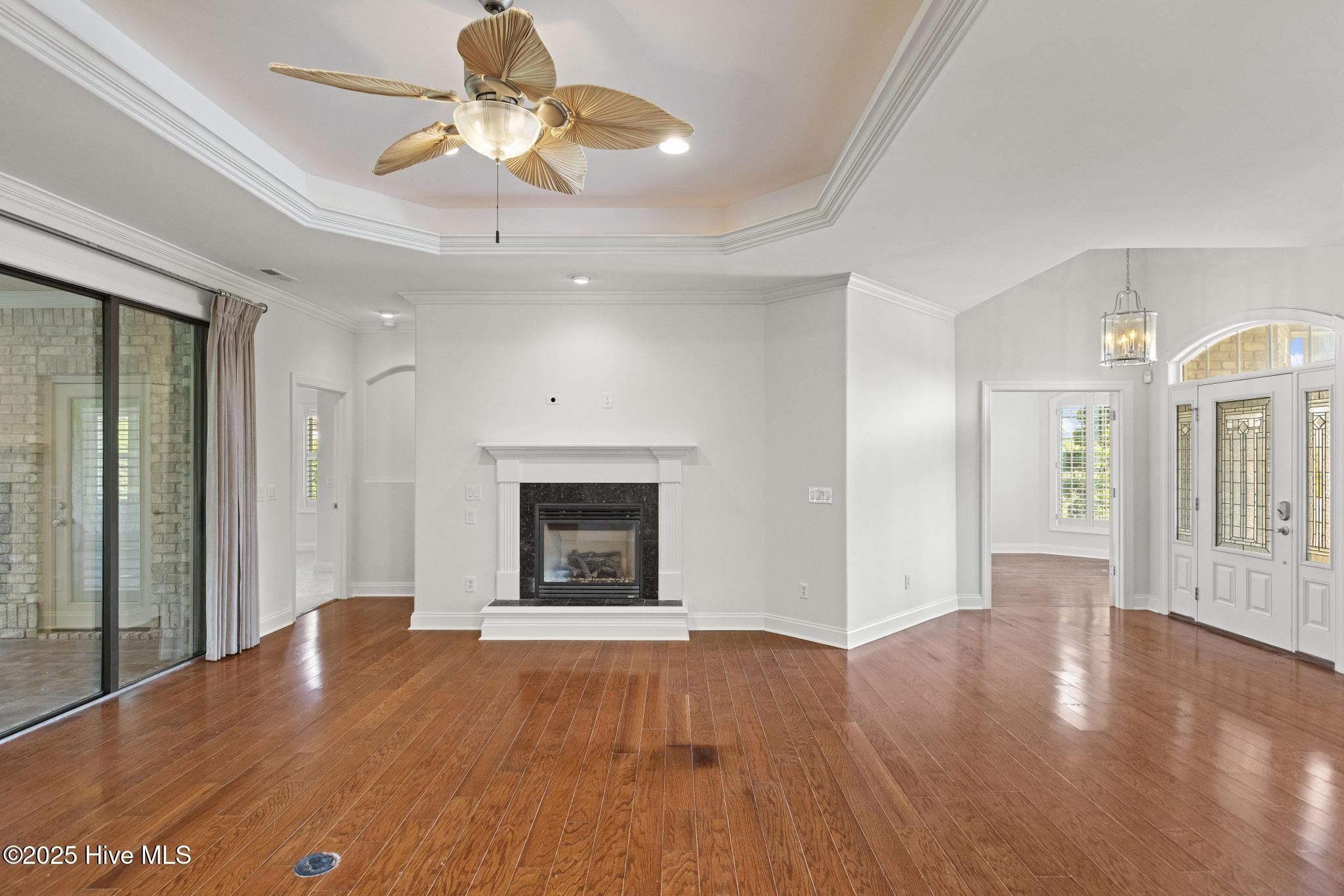 - Blinds/Shades, Sound System, Walk-In Closet(s), Walk-in Shower, Tray Ceiling(s), Gas Log, Mud Room, Master Downstairs, High Ceilings, Ceiling Fan(s)