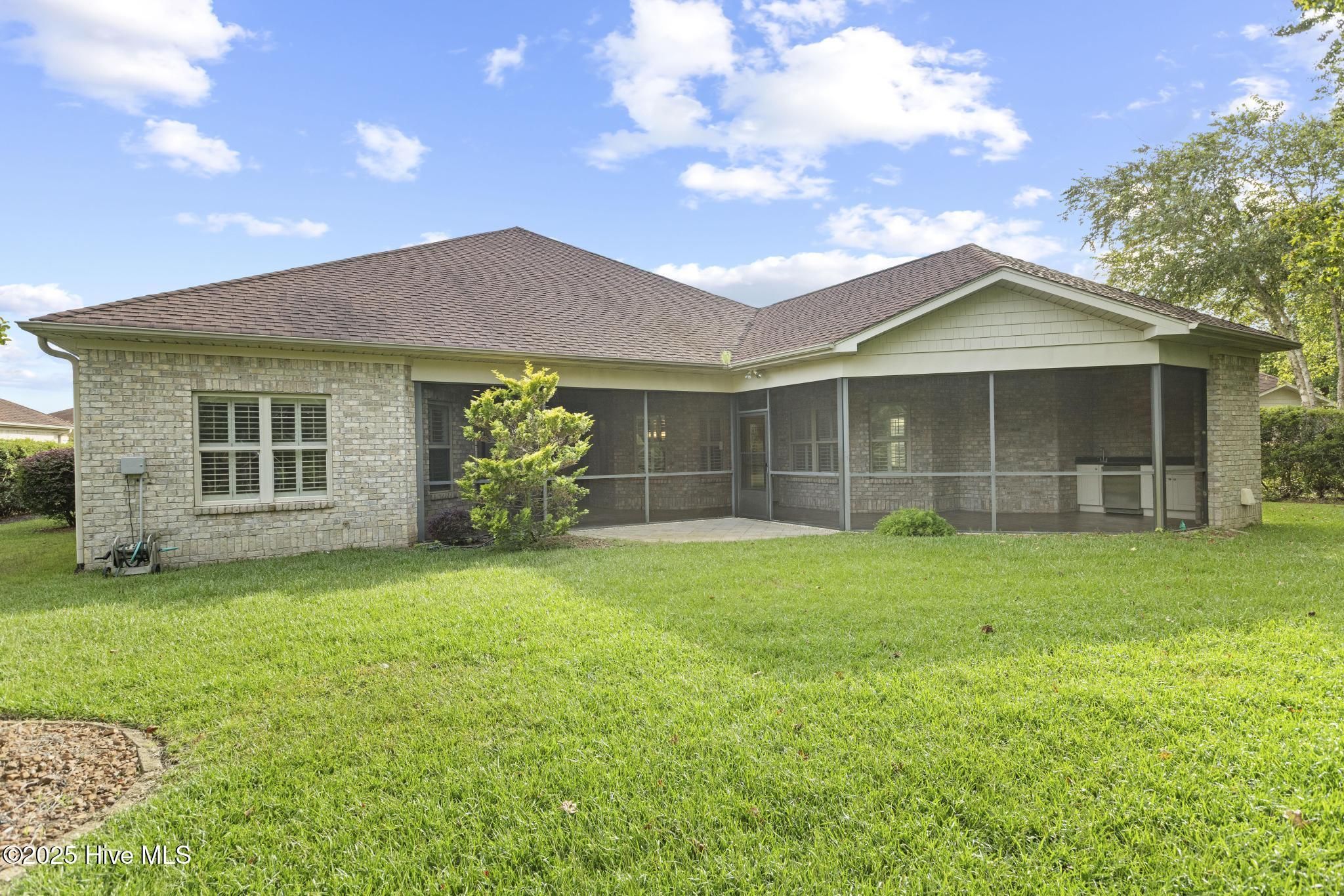 NEW PRICE- THE BEST OPPORTUNITY TO LIVE IN BRUNSWICK FOREST!! This solid brick Trusst-built home offers a luxurious and comfortable living experience. She might still be wearing some 2007 fashions but does classic ever go out of style?? Roof and HVAC was replaced in 2019. freshly painted and new carpet in the bedrooms. At this price you can make the updates you want!! Featuring three spacious bedrooms, three full baths, and an additional office, this home boasts an open floor plan with high ceilings and elegant architectural details throughout, fresh paint and new carpets in the bedrooms. The large kitchen includes a center island, pull-out drawers, a pantry, and a convenient bar sink, perfect for entertaining. The inviting living room includes a gas log fireplace, in-floor outlets and a huge telescoping glass door to view your private back yard. Or venture out to the screened lanai with a summer kitchen, grill, mini fridge, and bar sink--ideal for outdoor gatherings. From the Lanai you have a separate entrance to the large primary suite which offers dual closets, and generous bath including a tub and walk in shower. Other features of the home include private lot, a leaded glass front door, plantation shutters, garage with a workbench and shelving, and storage room. Lawn care is included in the HOA. The perfect home and opportunity to make it your own!