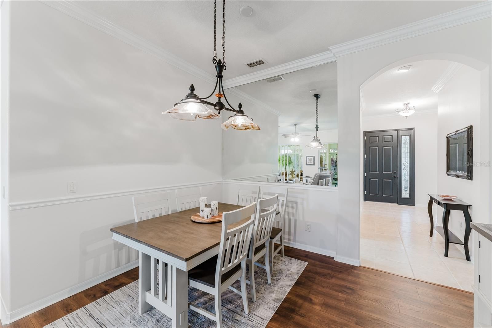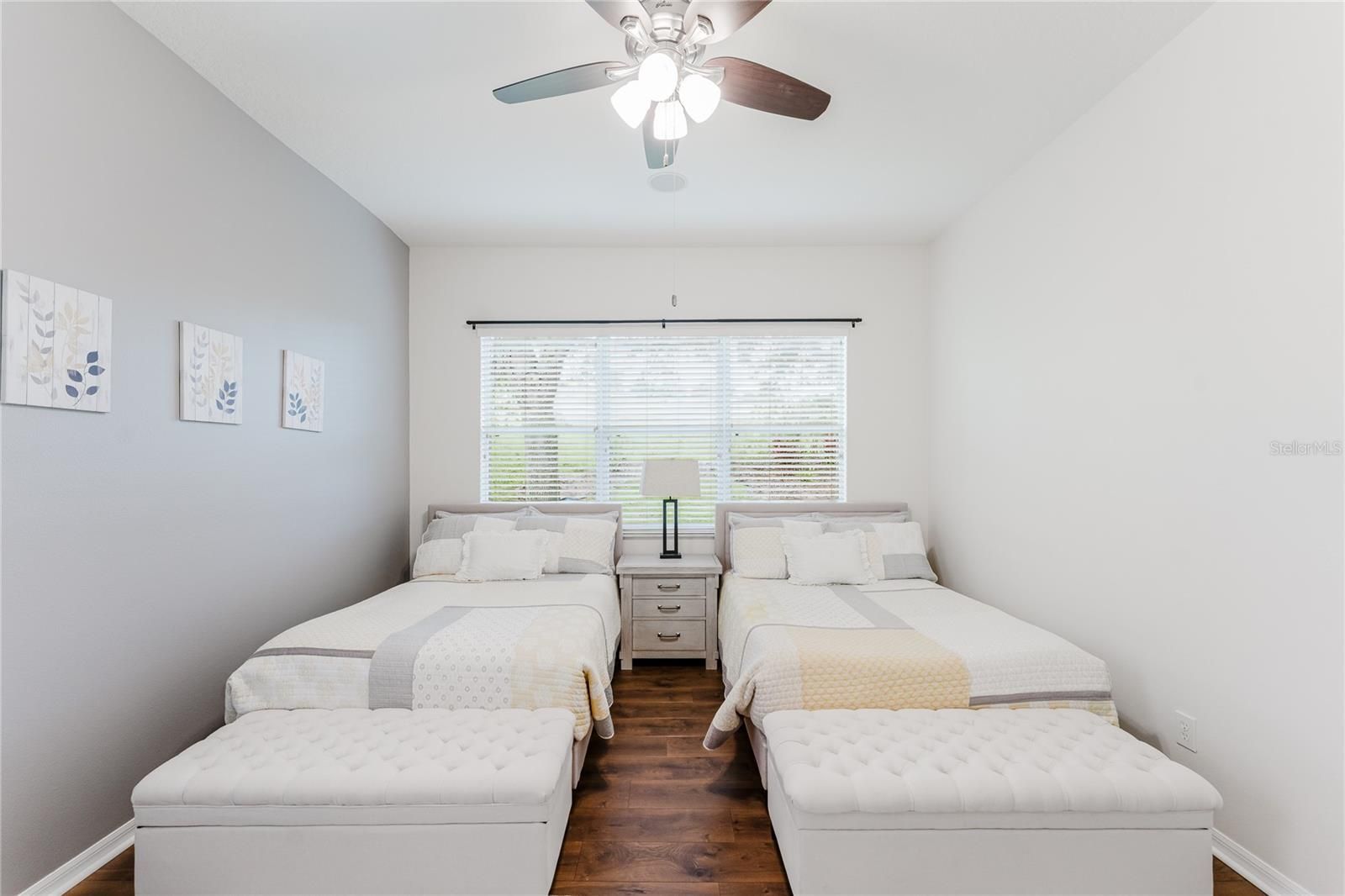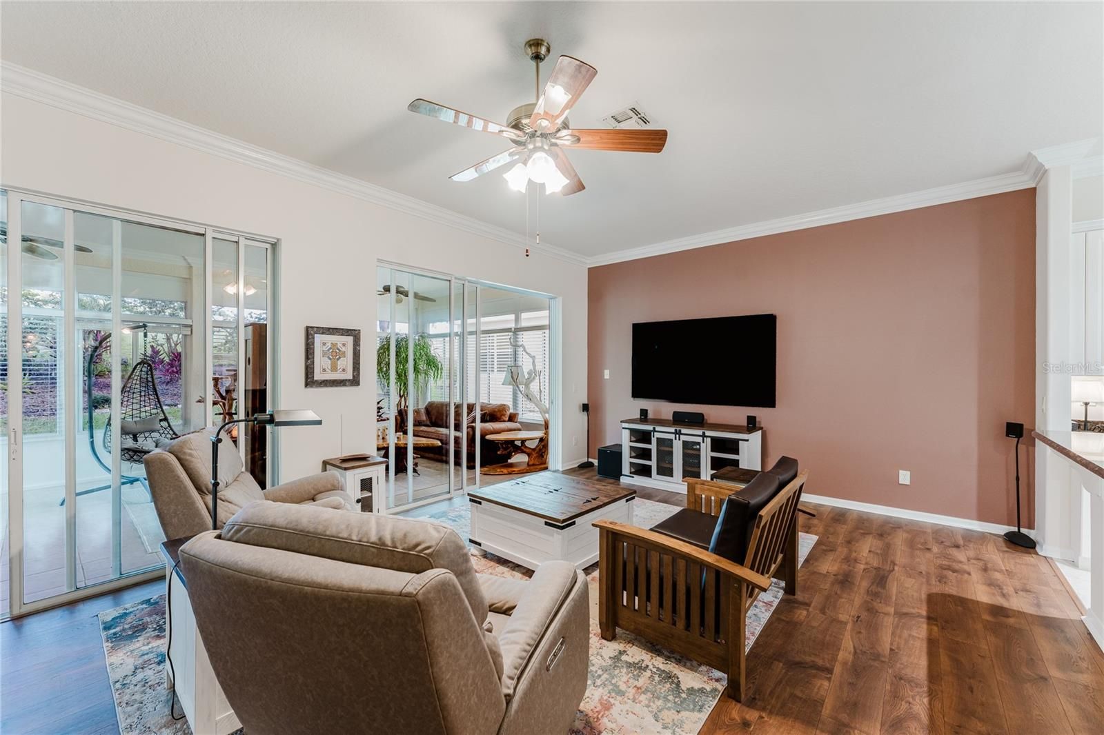 Discover HIGH-VALUE, WORRY-FREE living in this beautifully maintained 3-BEDROOM, 2-BATH home offering 1,886 square feet of OPEN-CONCEPT living space—plus 364 ADDITIONAL SQUARE FEET in the FINISHED THREE-SEASON SUNROOM overlooking a lush, landscaped backyard with NO REAR NEIGHBORS for maximum privacy. Enjoy seamless indoor-outdoor living by opening the trio of sliding glass doors to take in the tranquil views, or begin your day on the screened front porch (with no-see-um mesh) ideal for your morning coffee and watching the sunrise. Located on a QUIET, LOW-TRAFFIC CUL-DE-SAC, this home provides peace of mind with a BRAND-NEW ROOF AND GUTTERING (June 2025), a high-efficiency A/C and furnace, and newer stainless steel Whirlpool appliances—including refrigerator, stove, microwave, and dishwasher. Stylish design upgrades include granite countertops, rounded corners, architectural arches, large ceramic tile, laminate flooring throughout—no carpet!—and crown molding accenting the entire home. The spacious open floor plan is perfect for entertaining or relaxed living. The HOA includes yard mowing, shrub trimming, expanded TV, and high-speed internet, offering true low-maintenance convenience. Located in Summit Greens, a gated 55+ community with 24-HOUR SECURITY, residents enjoy a wide range of amenities: clubhouse with classes and social activities, indoor/outdoor pools, sauna, hot tub, billiard room, ballroom, tennis, shuffleboard, and pickleball courts. Adjacent to the Clermont National Golf Course, enjoy access to The View—a modern venue with state-of-the-art driving range, restaurant, and outdoor food court with live music, big screen TVs, and panoramic views of Central Florida. This is active 55+ living at its best—schedule your private showing today!
