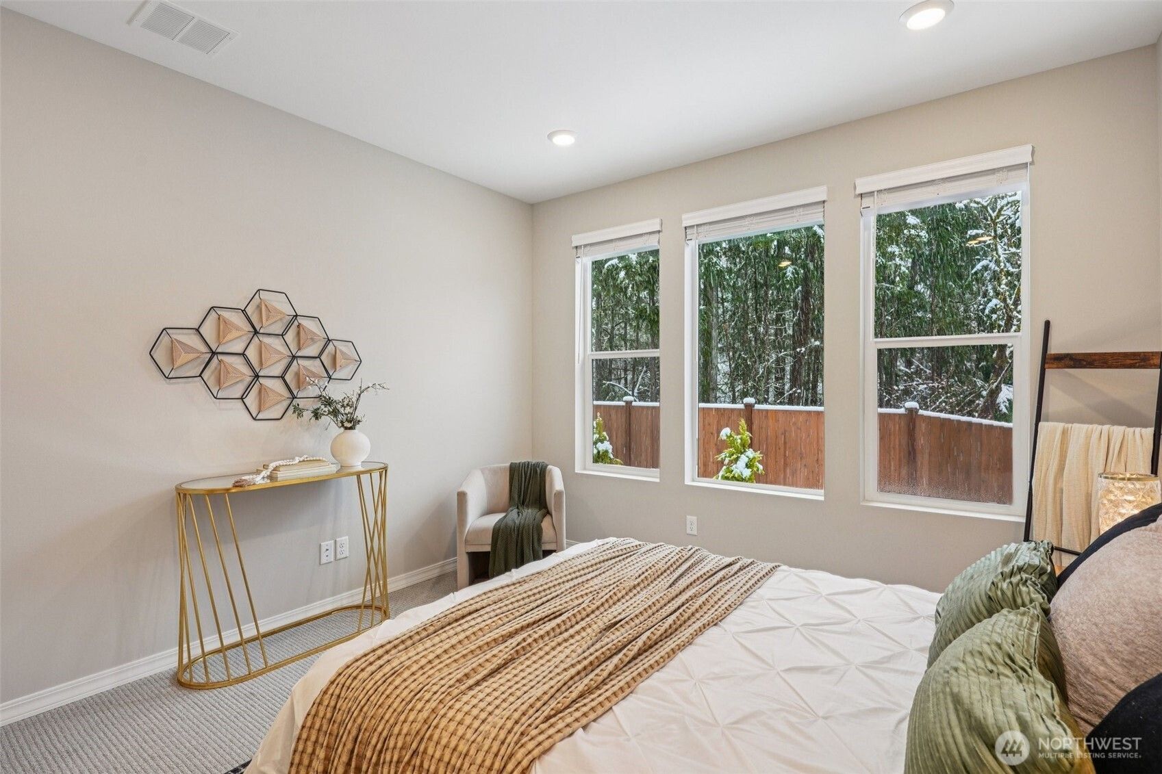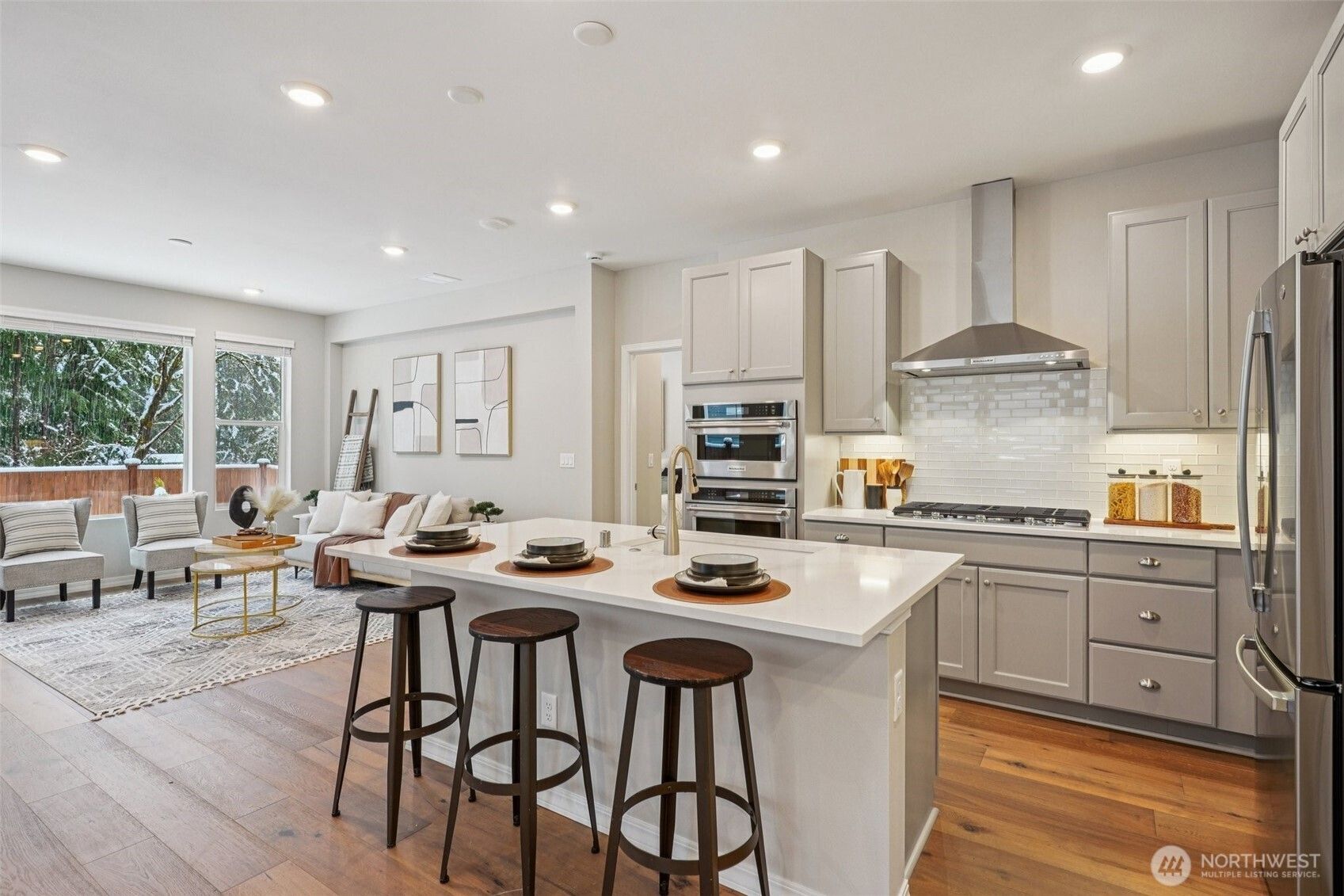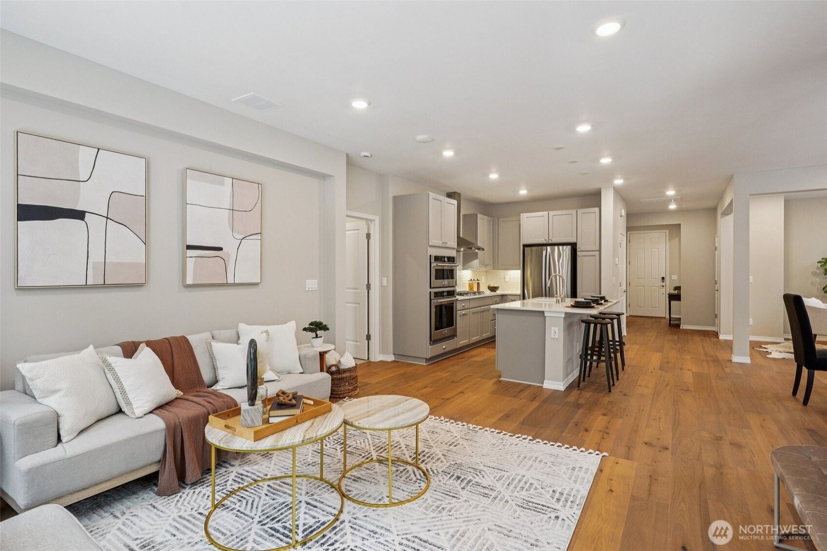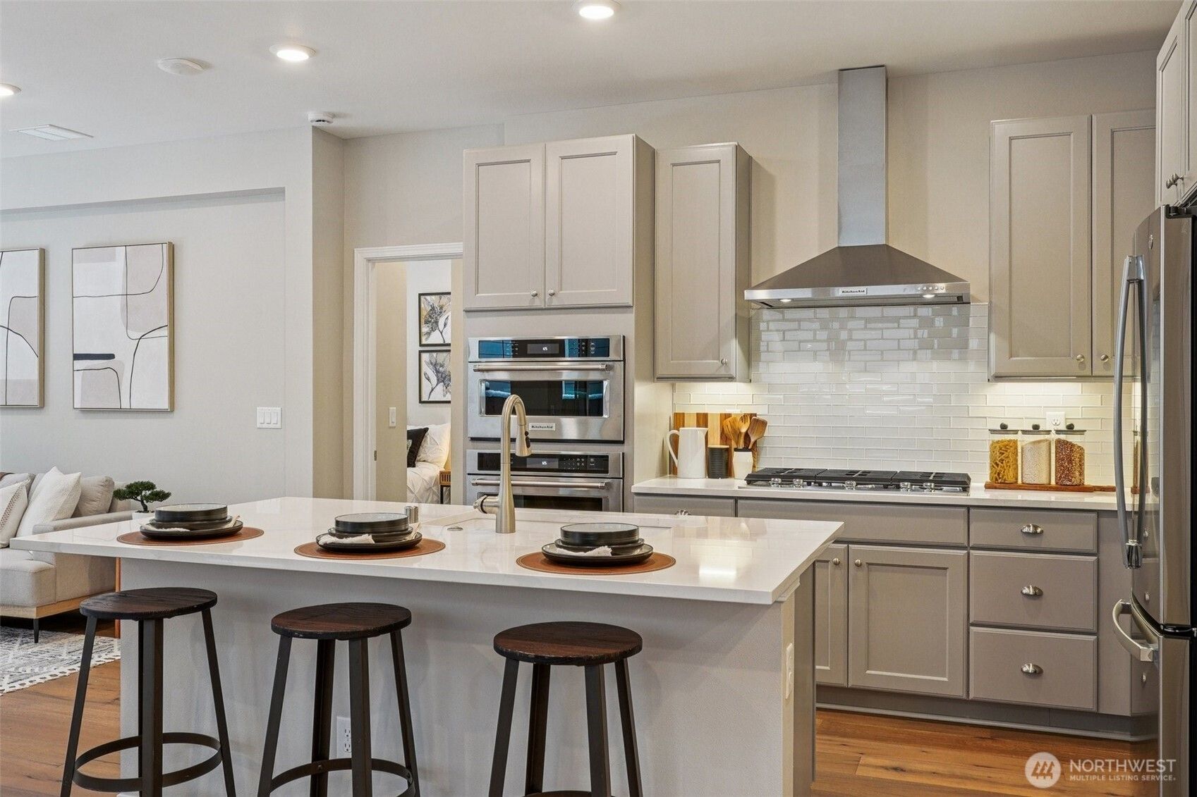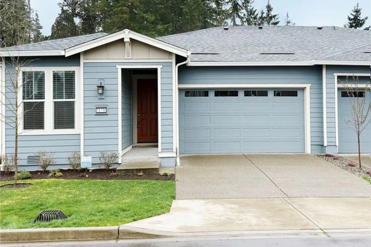 Enjoy the privacy of a peaceful wooded backdrop in the desirable 55+ community of Tammaron at Lake Sawyer! This thoughtfully designed home offers comfortable single level living with a bright, open-concept layout. The kitchen features quartz countertops, a classic subway tile backsplash, soft-close drawers, and a large island that opens to the spacious dining area and great room, perfect for everyday living and entertaining. The private primary suite provides a relaxing retreat with a luxurious ensuite bath and walk-in closet, while guests will appreciate their own comfortable suite with a private bath. Additional highlights include a versatile den or home office and a covered patio ideal for outdoor gatherings. Residents also enjoy access to the community pavilion with picnic tables in a peaceful, park like setting. Conveniently located near the popular Maple Valley area, an ideal location for those who want to stay close to family and shops & amenities.