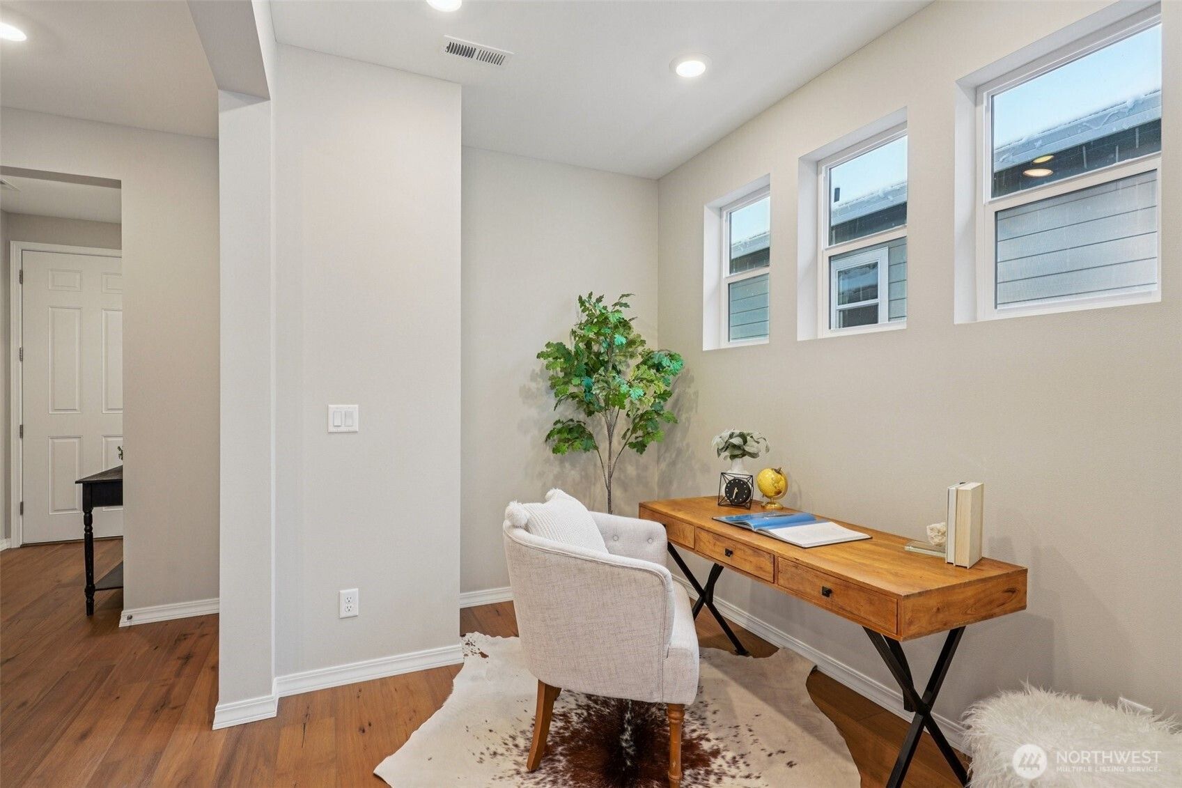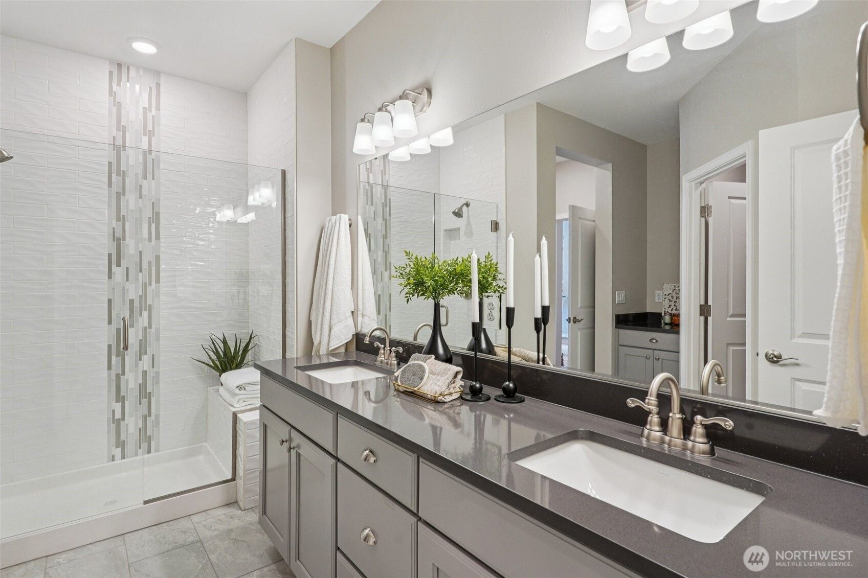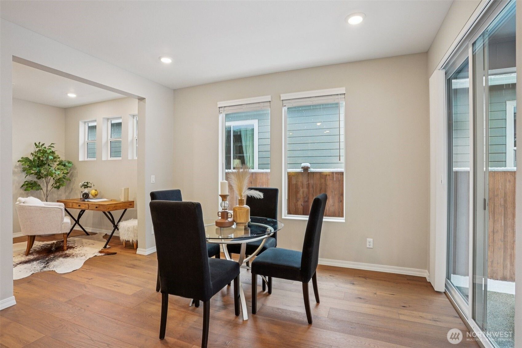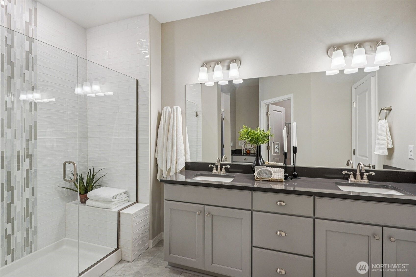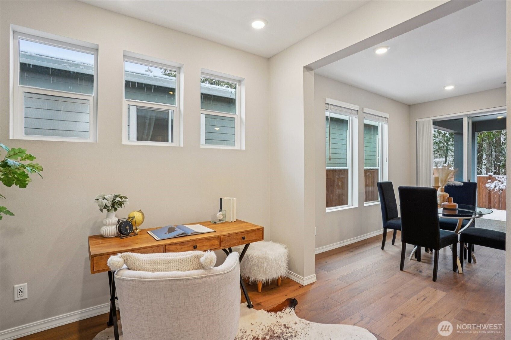 Enjoy the privacy of a peaceful wooded backdrop in the desirable 55+ community of Tammaron at Lake Sawyer! This thoughtfully designed home offers comfortable single level living with a bright, open-concept layout. The kitchen features quartz countertops, a classic subway tile backsplash, soft-close drawers, and a large island that opens to the spacious dining area and great room, perfect for everyday living and entertaining. The private primary suite provides a relaxing retreat with a luxurious ensuite bath and walk-in closet, while guests will appreciate their own comfortable suite with a private bath. Additional highlights include a versatile den or home office and a covered patio ideal for outdoor gatherings. Residents also enjoy access to the community pavilion with picnic tables in a peaceful, park like setting. Conveniently located near the popular Maple Valley area, an ideal location for those who want to stay close to family and shops & amenities.