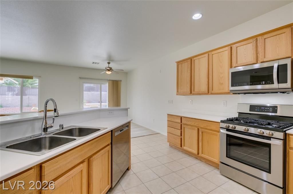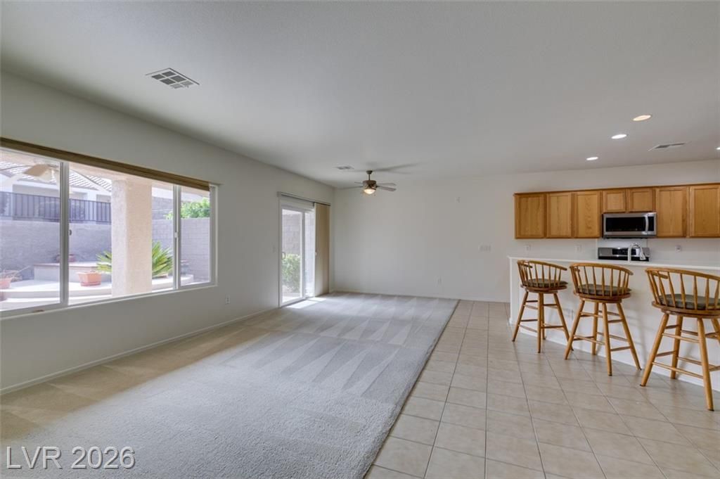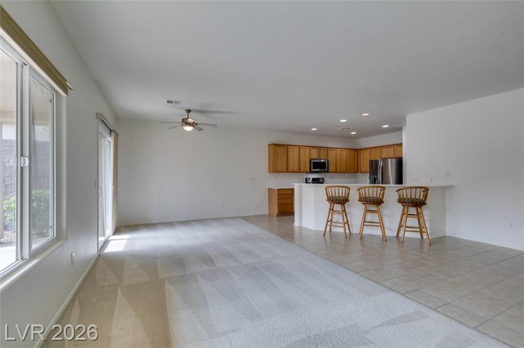Welcome to this beautiful Virginia model located in the highly desirable Sun City Anthem, a premier 55+ Age community! Home is completely move-in ready. Interior has just been freshly painted, carpets, windows & entire home professionally cleaned. This spacious home offers 3 bedrooms, with the secondary bedrooms separated from the primary suite for added privacy. The primary suite includes backyard access, W/I closet, and en suite bath with dual sinks and a walk-in shower. Kitchen has a breakfast bar, pantry, recessed lighting, tile flooring and stainless-steel appliances. Outdoors enjoy a private, low-maintenance backyard with covered patio. Separate laundry room w/cabinets, washer, dryer, fridge & water softener all stay. B/I cabinets & workbench in garage. Sun City anthem residents can enjoy all three club houses, 2 golf courses, nature trails, fitness center, indoor outdoor swimming pools, tennis courts, bocce ball, pickle ball and an amazing social calendar of activities / events.