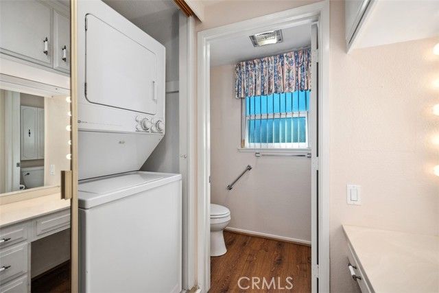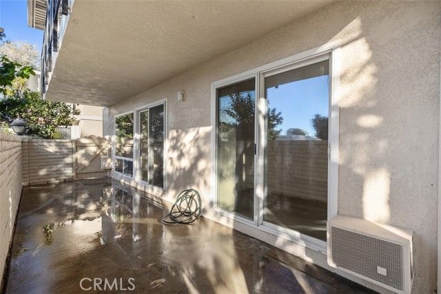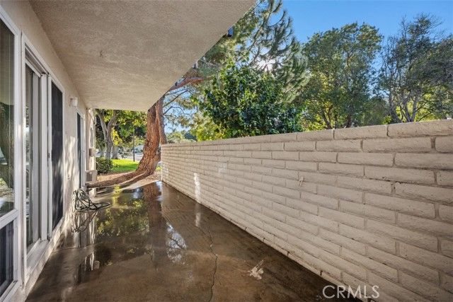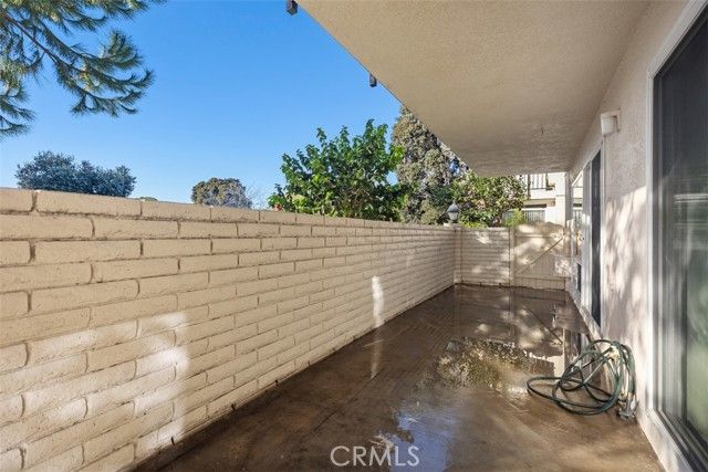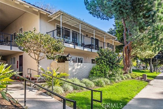 Welcome to this Popular "CASA LINDA" model! This charming condo offers a convenient, no-stairs entry right from the street, making it easily accessible. A spacious living room welcomes you and opens to the extended, walled patio through a wide sliding glass door, perfect for entertaining! The adjacent dining area flows into a nice kitchen with lots of storage, upgraded countertops, a dishwasher, a wall oven, and an electric cooktop. Both bedrooms are nicely sized. The primary suite enjoys an expansive dressing area with mirrored wardrobes, a built-in vanity, and a separate step-in shower. The guest bedroom also has a slider to the patio, creating extraordinary indoor-outdoor living. The hall bath features a tub/shower combo. Additional highlights include a new water heater, double-pane windows, laminate wood flooring, and the convenience of an in-unit stackable washer/dryer. This home is in a wonderful location in Gates 5 & 6, walking distance to the popular Clubhouse 5. You won't want to miss seeing it! Add all of this to the Laguna Woods Village lifestyle, and you have a winning combination. Enjoy a 27 hole championship golf course and a nine hole executive course, tennis, pickleball, paddle tennis, lawn bowling, two fitness centers, seven clubhouses, five swimming pools, an equestrian center, garden centers, an art studio, a world class woodshop, more than two hundred clubs and organizations, free bus service within the community and to nearby shopping, convenient RV parking, and you are approximately six miles from beautiful Laguna Beach. Country Club Living at its BEST! Carport 2107 Space 8