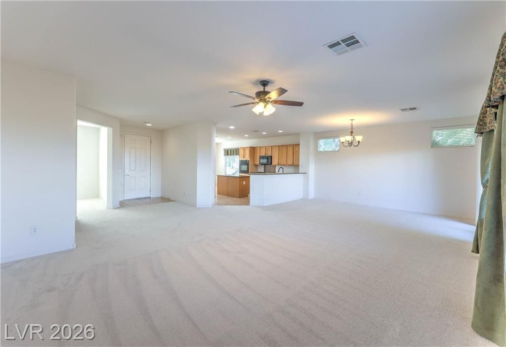 Stunning in Sun City Anthem! Gorgeous Lincoln Model with 3 bedrooms and a Den /Office, including a detached 304 sq. ft. casita, for a total of approximately 2,400 sq. ft. of living space. Highlights include a 2-car attached garage, brand-new carpet, and a gated courtyard. The open floor plan features a spacious great room and a gourmet kitchen with granite countertops, breakfast bar, and large island—perfect for entertaining. The primary suite offers a walk-in closet, separate tub, and shower. Relax under the covered patio and enjoy breathtaking mountain views from the elevated lot! Incredible value in this vibrant 55+ community with clubhouses, pools, golf, tennis, pickleball, and more than 70 social clubs. This is a Must See!!