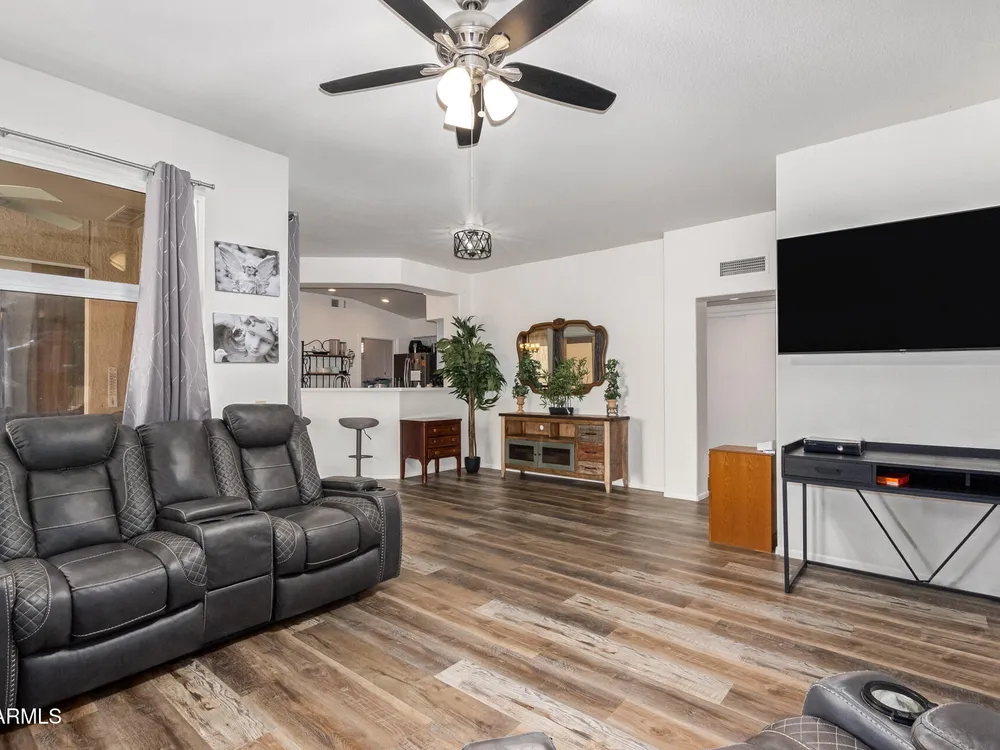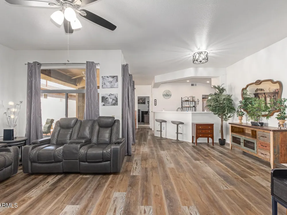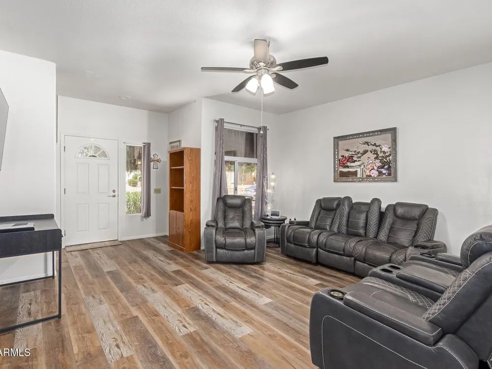 Welcome to your dream home in the vibrant 55+ community of Sun City West! This 2-bedroom, 2-bath gem offers 1,327 sq ft of beautifully updated living space with wood plank flooring, a spacious great room, and a large kitchen with ample cabinets and an oversized breakfast bar. Step outside to a private backyard perfect for relaxing or entertaining. The 2-car garage even has room for your golf cart! Enjoy resort-style living with access to 7 golf courses, 4 recreation centers, dozens of pickleball and tennis courts, indoor and outdoor pools, fitness centers, hobby clubs, and more. Don't miss the chance to live the lifestyle you've been waiting for!