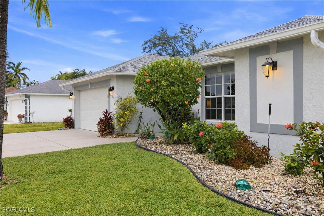 This comfortable and well maintained 3 bedroom, 2 bath home in Riviera Golf Estates, a desirable 55 plus community, is offered turnkey and truly move in ready. With 1,419 square feet under air and vaulted ceilings, the home feels open and spacious, making it ideal for everyday living and entertaining. The kitchen features granite countertops, stainless steel appliances, and updated fixtures. Tile flooring runs through the main living areas, while Dream Weaver carpet adds comfort in the bedrooms. Major updates include a new roof and new HVAC system installed within the past year, offering peace of mind for years to come. Impact shutters are installed on all windows and doors. Additional highlights include a private well for lawn irrigation, helping to keep water costs low. There is nothing to update or purchase. Simply bring your swimsuit, golf clubs, and pickleball paddle and start enjoying the Naples lifestyle. Riviera Golf Estates offers a heated community pool, tennis courts, and an exercise room. The community is conveniently located close to downtown Naples, beaches, shopping, and fine dining. Best of all, the HOA fees are among the lowest in town and include basic cable. If you want easy, low maintenance living that is ready from day one, this home checks all the boxes.