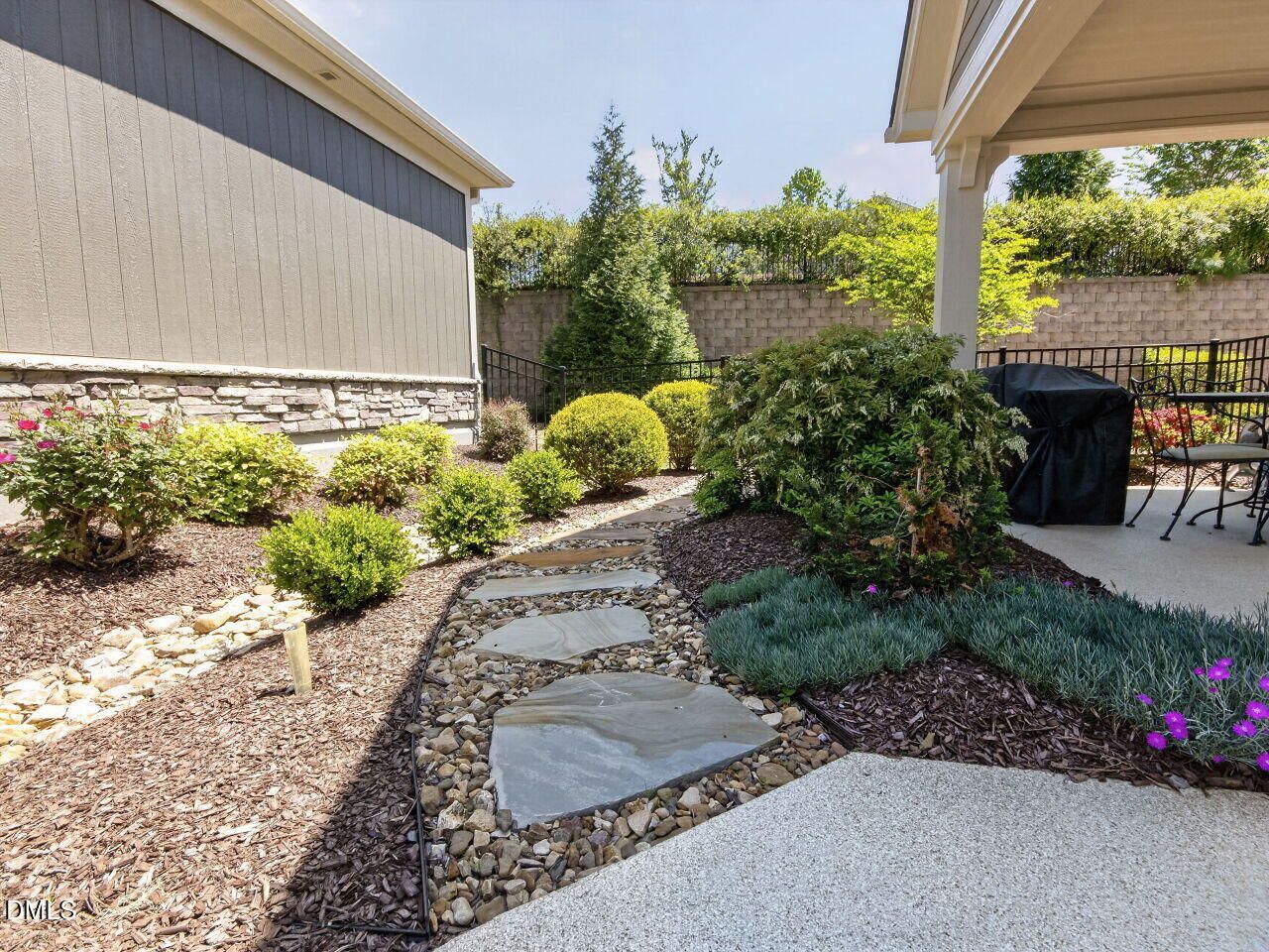 Welcome to The Courtyards at O'Kelly Chapel, where luxury and easy living meet in this beautifully appointed 55+ ranch-style home. Thoughtfully designed for comfort and style, this residence offers 2 spacious bedrooms, a private office with French doors, and upgrades throughout. The gourmet kitchen is the heart of the home, featuring GRANITE countertops on all surfaces, a large center island perfect for entertaining, Double wall ovens and all Stainless Steel appliances. Flowing seamlessly from the kitchen are the dining and family rooms, all enhanced by gleaming hardwood floors that extend through the entry and hallways. The focal point of the family room is the STONE floor to ceiling fireplace adorned with BUILT_INS. A large picture window fills the family room with natural light and provides a stunning view of the PROFESSIONALLY landscaped yard and covered courtyard. The generously sized owners suite features a tray ceiling with a large walk in closet. The spa-like ensuite has a GRANITE dual vanity, zero entry oversized TILE shower with a bench, separate commode and linen closet. . Every detail has been upgraded for comfort and quality -- PELLA windows, custom window coverings including a motorized shade in the family room, and a whole-home generator for peace of mind. Enjoy outdoor living year-round with an epoxy-finished covered patio perfect for relaxing or entertaining. The garage also has the floor finished in epoxy. This home combines timeless design with modern convenience -- a perfect fit for anyone seeking refined, single-level living in one of the area's most desirable communities. The community offers walking trails, pool, clubhouse and yard maintenance.