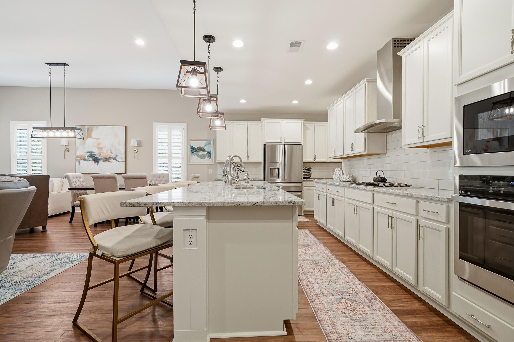 - Popcorn Ceiling, Tray Ceiling(s), High Ceilings, Kitchen Island, Walk-In Closet(s), Eat-in Kitchen, Family Room, Entrance Foyer, Great Room, Living/Dining Room, Pantry, Study, Sunroom