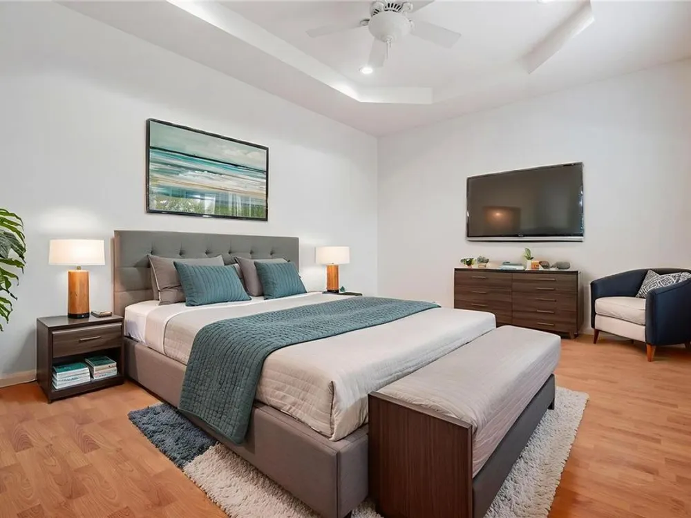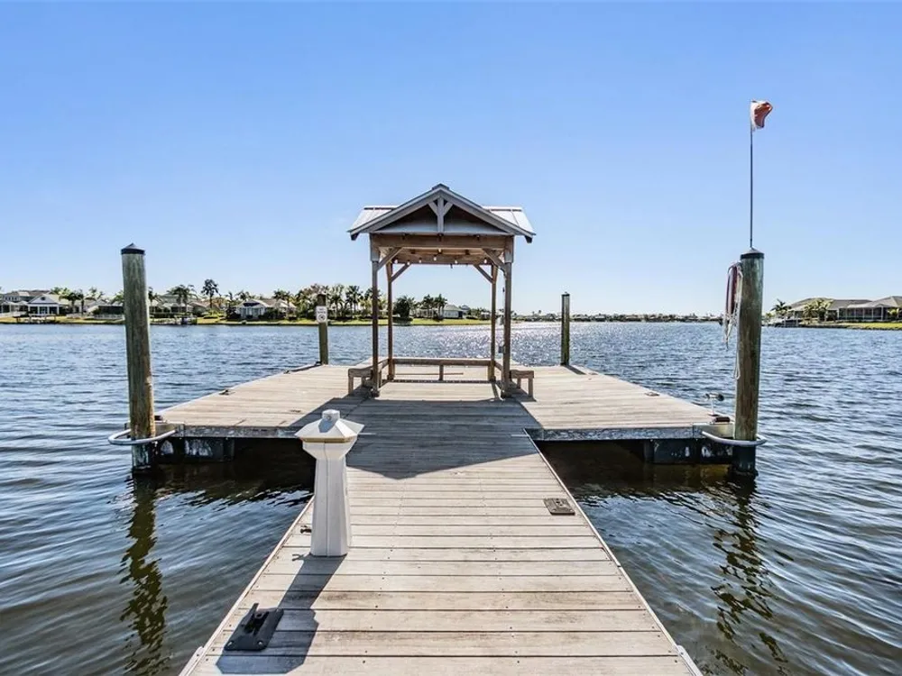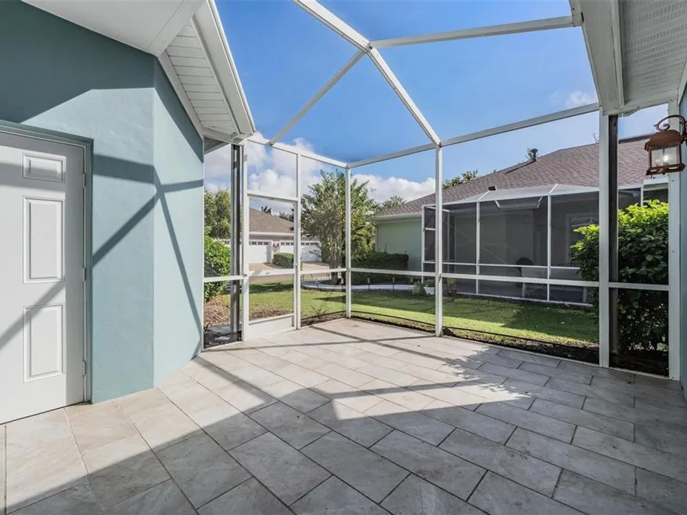 One or more photo(s) has been virtually staged. Welcome to this stunning 3-bedroom, 2-bath villa —move-in ready and packed with upgrades! Step inside to soaring 10-foot tray ceilings, an open, light-filled layout, and elegant touches throughout. Choose your perfect spot to unwind: a private rear courtyard connecting the home to the garage or a front screened patio overlooking a peaceful, park-like setting. The chef’s kitchen and baths feature granite countertops and solid cherry cabinets, complemented by custom blinds, a spacious laundry room, and plenty of storage. Enjoy easy living with an epoxied garage floor, tile flooring on both porches, and the privacy of a prime end lot. Major updates—newer roof & AC (2022) and new water heater—mean worry-free ownership. Nestled in the sought-after gated waterfront community of MiraBay, you’ll have access to resort-style amenities: a fitness club, tennis & racquetball courts, sparkling pool, poolside café, clubhouse, boat rentals, and more. This is one of the best values in MiraBay—impeccably maintained, full of charm, and ready to welcome you home!
