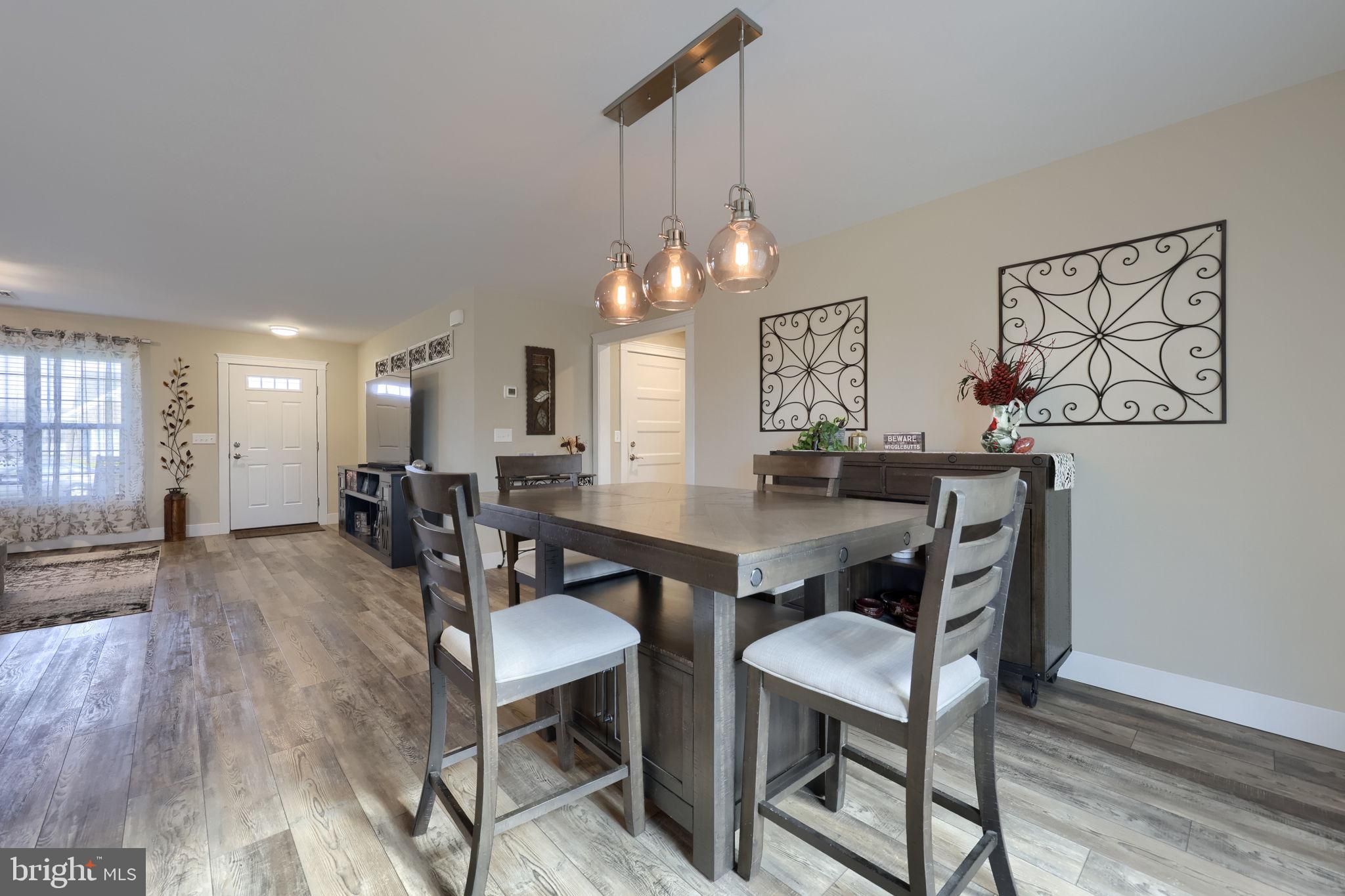 Step into this beautifully upgraded home where comfort, style, and convenience come together perfectly. The private master suite offers a generous walk-in closet and a spa-like master bathroom. Outside, stunning front landscaping frames a welcoming covered front porch perfect for morning coffee or evening chats. Inside, upgraded luxury plank flooring flows throughout the living room, dining room, kitchen, bathrooms, and hallways. You’ll also love the elevated baseboards, upgraded doors, and wide 36-inch entryways that create an open, accessible feel. Fresh new blinds dress every window, and decorative ceiling fans (including one in the garage) add both style and comfort. The heart of the home is the gourmet kitchen, featuring upgraded cabinets, a large walk-in pantry, and matching stainless appliances. Out back, the fully landscaped and fenced yard is an entertainer’s dream: a stamped concrete patio shaded by a charming pergola with peaceful views ideal for relaxing or hosting gatherings. Additional upgrades include a brand-new water softener system. Community perks are a bonus: the HOA maintains a clubhouse packed with events and a scenic walking path, giving you resort-style living without leaving home. Move-in ready and packed with thoughtful upgrades this is single story living done right!