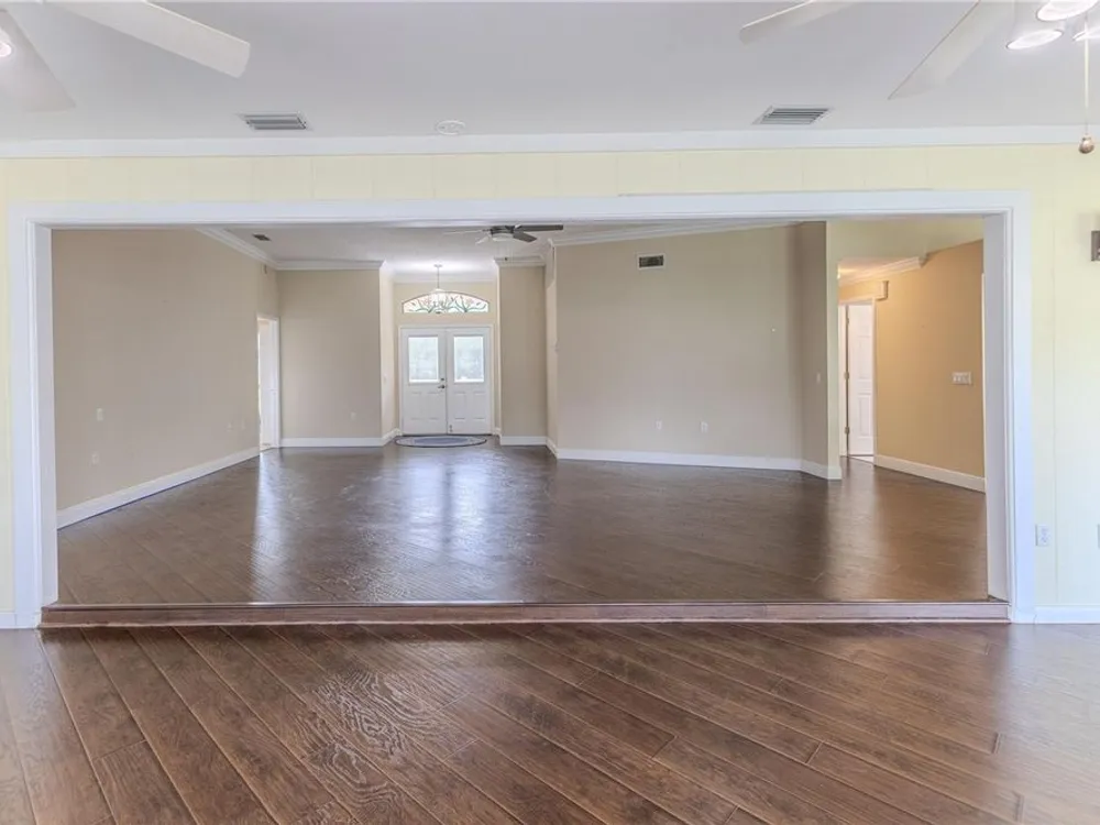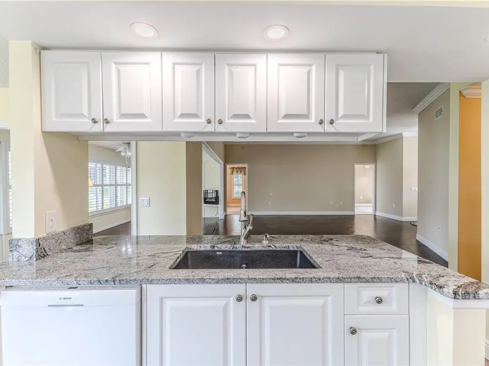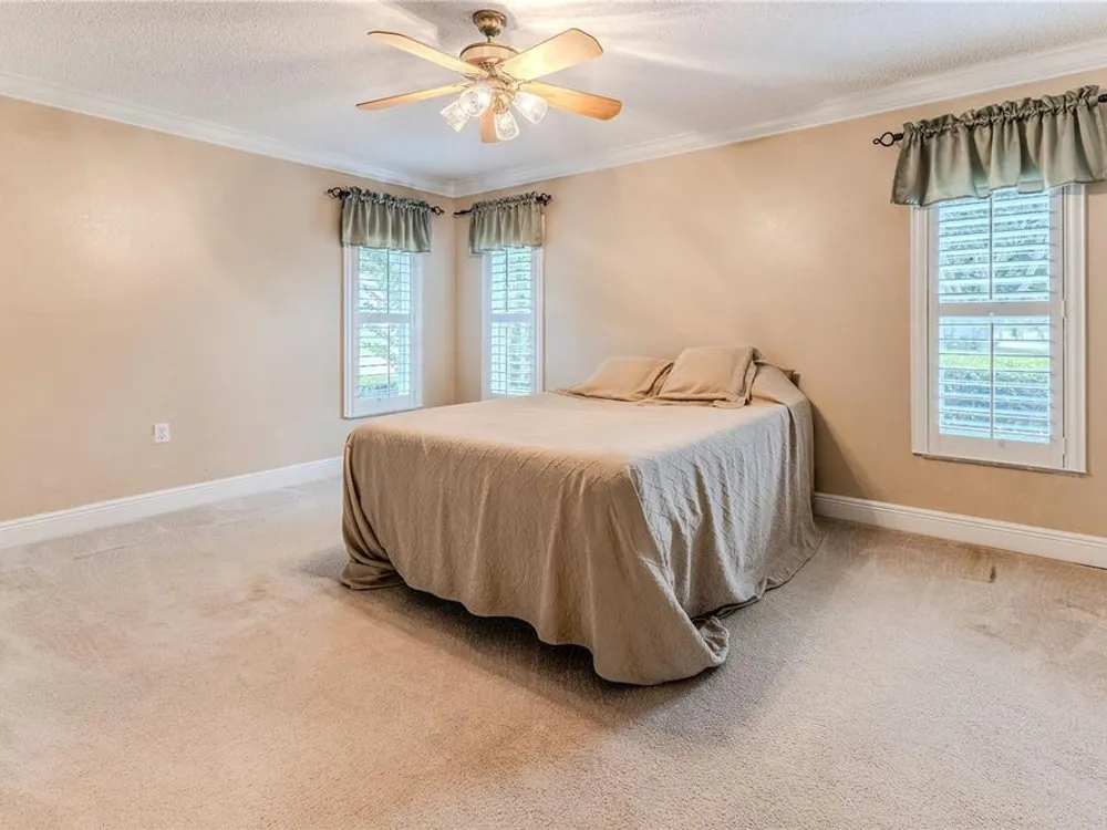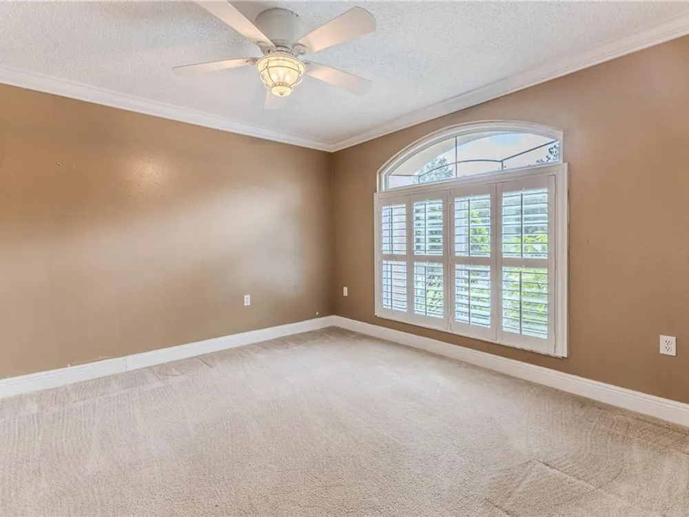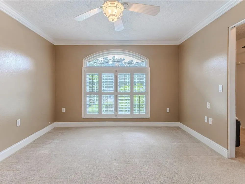 - Ceiling Fan(s), Crown Molding, Eat-in Kitchen, High Ceilings, Kitchen/Family Room Combo, Living/Dining Room, Open Floorplan, Main Level Primary, Solid Surface Counters, Split Bedrooms, Stone Counters, Thermostat, Vaulted Ceiling(s), Walk-In Closet(s), Window Treatments