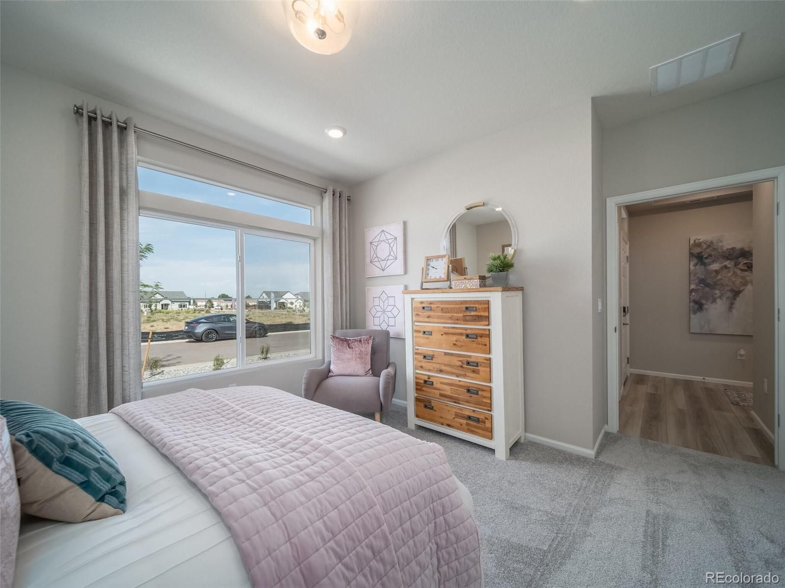 The Pathfinder is a charming, easy-maintenance single-level home designed for comfort, efficiency and adaptability in a gated 55+ resort-style community in Green Valley Ranch, Aurora. Perfectly suite for the active-adult lifestyle. This single family, open-concept home spans 1877 and features 2 bedrooms, 2 bathrooms, a large flex space along with a 2-car garage. Set in a gated community on a private motor court you'll experience tranquility at your doorstep with a charming covered front porch and included front yard landscaping maintained by the Metro District- they also shovel the driveway! The interior is bright with oversized windows and 9' ceilings. Enjoy designer LVP flooring, Shaw carpeting, Samsung appliances and Sherwin Williams paint inside and out. The kitchen features a working/dining island, granite or quartz countertops, a recipe window and a pantry; The kitchen flows seamlessly into the great room/dining room area and out to the expansive covered rear patio accessed by via the "Colorado Room" double slider door and a separate kitchen door. The spacious primary suite boasts a large walk-in closet, double sink vanity and a tiled spa shower with a bench seat and low entry. Actual home may differ from the artist's rendering or photography shown.