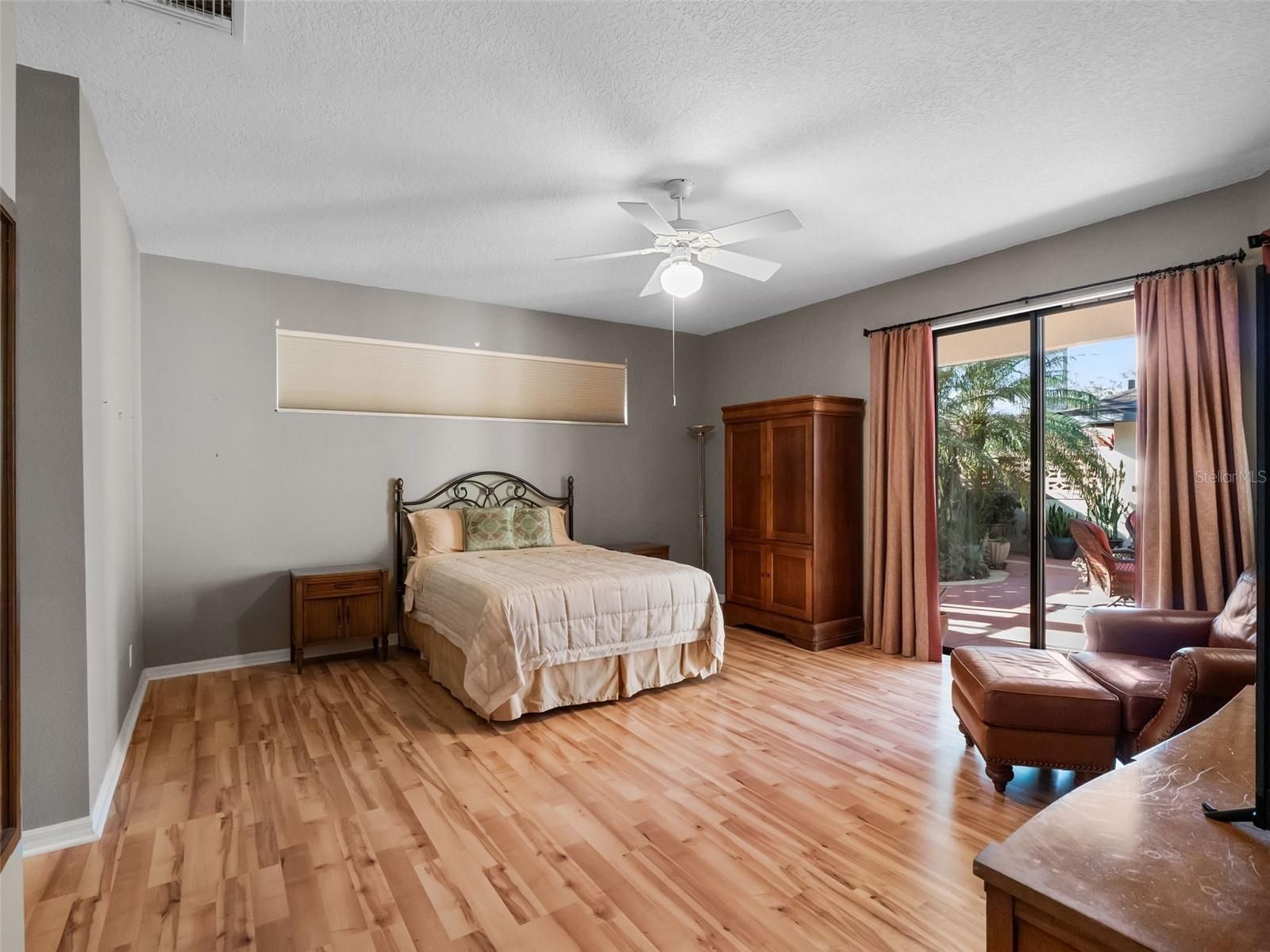 PRICE REDUCED $25k! NEW ROOF COMING SOON! This lovely DUKE MODEL with a SOUTHWESTERN FLAIR is situated on a POND where you have unobstructed VIEWS from the GREAT ROOM. The UPDATED KITCHEN has GRANITE COUNTERS, warm-tone WOOD CABINETS, AND newer STAINLESS-STEEL APPLIANCES that include an electric stove, a FRENCH-DOOR REFRIGERATOR, a hood/microwave combo plus a dishwasher. There is also a BREAKFAST BAR and an EAT-IN SPACE with a PICTURE WINDOW overlooking the COURTYARD. Solar tubes bring in lots of EXTRA NATURAL LIGHT. The LIVING SPACES have warm-toned, lustrous ENGINEERED HARDWOOD FLOORING, additional SOLAR TUBES and ceiling fans strategically placed throughout. The spacious PRIMARY BEDROOM has TWO WALK-IN CLOSETS, space for king size furniture, direct COURTYARD ACCESS through SLIDING GLASS DOORS and an EN SUITE BATH that features a LARGE WHIRLPOOL BATH, and a WALK-IN SHOWER. The GUEST BEDROOM features direct COURTYARD ACCESS and is in a separate hallway with a GUEST BATH giving guests (and you) ADDED PRIVACY. There is a BONUS ROOM off the Great Room that you can use for an office, a reading nook, a TV Room, or whatever you like. At the CENTER of this home is the SPACIOUS COURTYARD that features a lush garden and is IDEAL FOR ENTERTAINING. The SPECIAL FEATURE of the DUKE floorplan is the CASITA located on the other side of the courtyard from the main house. This SEPARATE SUITE is suitable for guests or a LIVE-IN and features a BUILT IN SHELVING unit that encases a MURPHY BED, a large WALK-IN CLOSET, and a three-piece EN SUITE. At the rear of the home is a large a BIRDCAGE COVERED PATIO overlooking a pond where you can do outdoor grilling, ENJOY THE FRESH AIR or just soak up the rays . OVERSIZED GARAGE. The ROOF was replaced in 2017 and there is a WHOLE-HOUSE GENERATOR. Located in the premier GOLF COURSE 55-plus community of ROYAL HIGHLANDS, residents enjoy a full range of amenities, including CABLE & HIGH-SPEED, FIBER OPTIC INTERNET, a GATED entrance with attendants, a GOLF COURSE, a RESTAURANT, tennis, pickleball, softball, INDOOR & OUTDOOR POOLS, secured RV STORAGE, bocce, shuffleboard, a FITNESS ROOM, a library, arts and crafts, billiards, catch-and-release fishing, and a variety of clubs. There truly is SOMETHING FOR EVERYONE in this vibrant community!