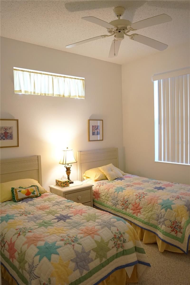 This partially furnished home has had only 1 owner. This section allows a 50 year old resident and a VA buyer !! Kings Point has lots to pick from for you in your retirement life with the monthly fees covering just about everything it makes living here so easy. There is a screened entryway in this 2 bedroom, split floor plan home with a full bath for each bedroom. The kitchen has a breakfast bar with the dining room a few steps away. The living room has sliders out to te open air lanai for you to enjoy the green space view. Your primary bedroom has a walk in closet, walk in shower and plenty of counter space. The guest area is at the front of the home off the kitchen. Your laundry room is off the kitchen and takes you out to the garage where you will have a golf cart waiting for you to run around the community with. Located close to the south clubhouse with a restaurant, 2 pools, hot tub, pickleball and golf. There is more at the North clubhouse too. Sun City Center is close to 3 airports, multiple beaches and plenty of entertainment.
