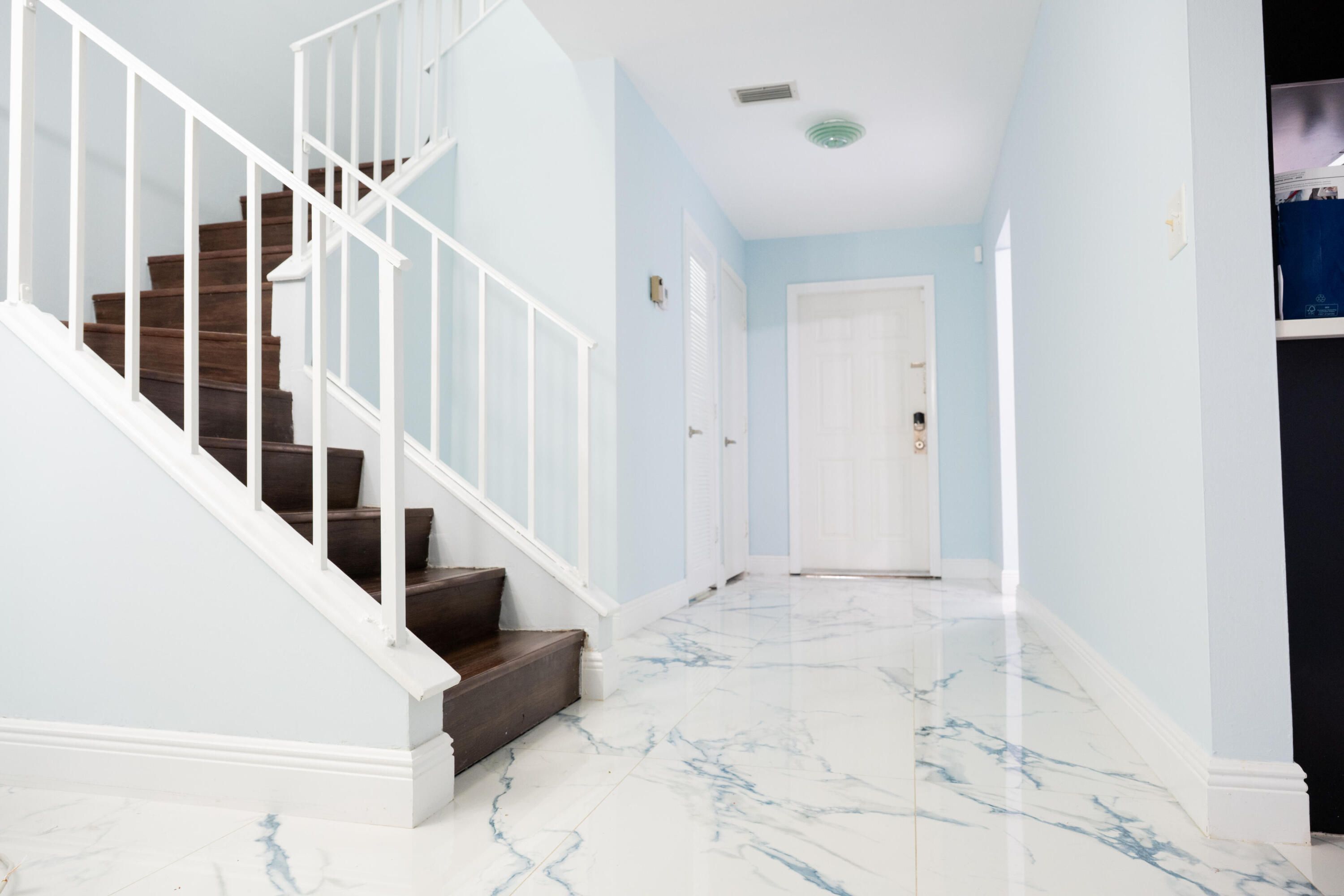 Beautifully remodeled 2BR/2.5BA townhome in Boca Lago with a bright, open layout, updated tile flooring downstairs, and hardwood floors upstairs. The modern kitchen features quartz countertops, sleek cabinetry, and upgraded appliances. Enjoy impact windows, doors, and whole-house water treatment for peace of mind. The spacious primary suite has three closets and a private balcony, while the second bedroom includes an en-suite bath. Relax on the screened patio overlooking a quiet green space. Located in an all-age community with no mandatory membership, near dining, shopping, and easy Turnpike access. Cable and internet included.