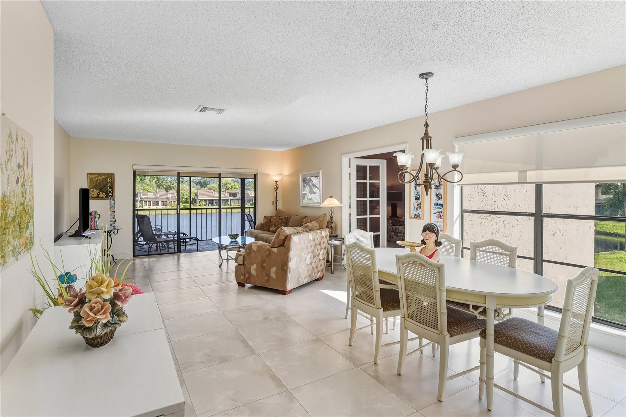 A well maintained, Move in ready, 3 bd, 2 bath unit with a beautiful lake view, from your full size screened balcony. Enter your unit from a private staircase. Bright and cheerful, recently painted, tile floors and brand new carpet in bedrooms. Unit has upgraded window treatments and Plantation shutters. A Pet friendly, gated, 55 plus, Country club community without mandatory fees.