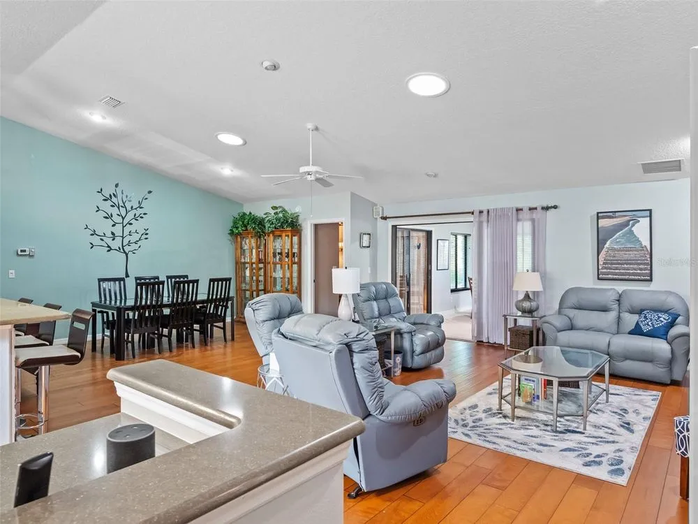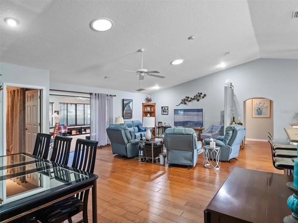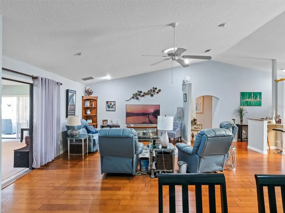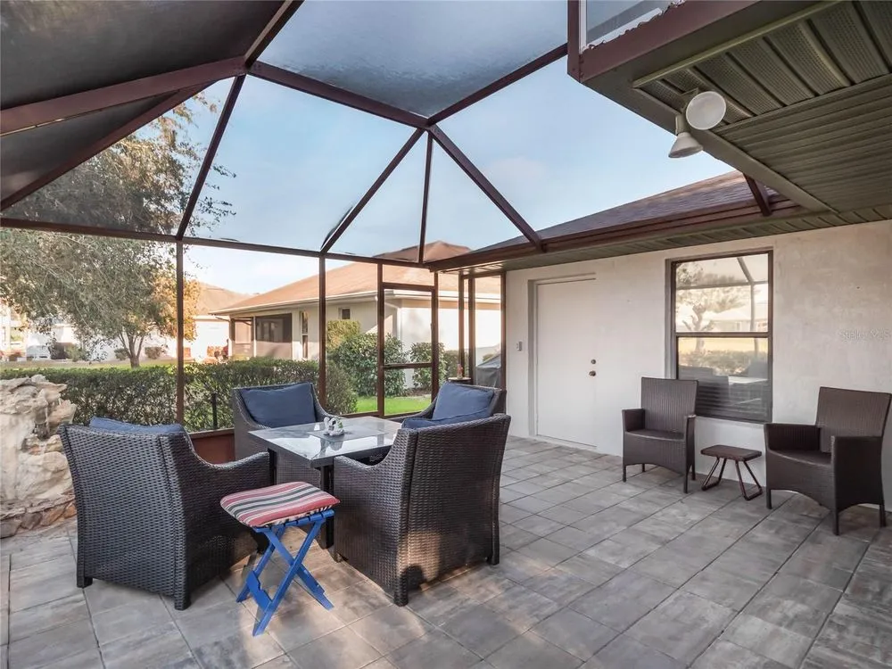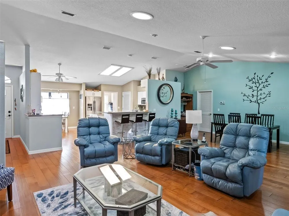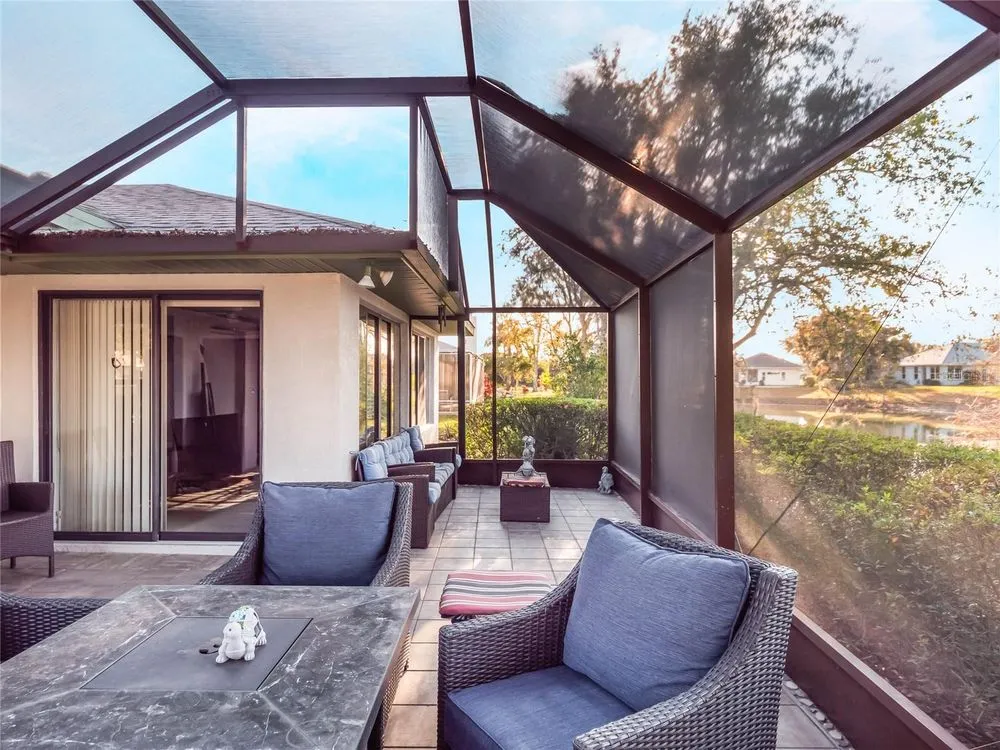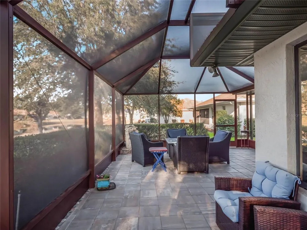 One of a kind Modified & Expanded Majestic Model with CUSTOM improvements and updates throughout! Situated on an oversized lot with water views, this 2684 square foot home has a large garage with a workbench & cabinets/racks, epoxy floor, and auto screen! Peace of mind is YOURS with a 2023 GENERAC *Whole house back-up*, Natural Gas Generator, 2025 ROOF, 2023 Gas Water Heater, CENTRAL VAC, and 2013 HVAC-all maintained and routinely serviced! Inside, you'll fall in love with the updates this home has received, including the engineered flooring, Quartz counters & sills, fully renovated kitchen with cottage-style beadboard cabinets, full wall of pantry cabinetry, pull-outs, island, media center, stainless appliance package (with a gas line behind the range for easy conversion!) and a show-stopping glass backsplash! The split bedroom floor plan offers HUGE bedrooms, large closets for storage, access to the Florida Room & Lanai areas, and the Primary Suite includes a sitting area for quiet reading or can be used by those still working from home as an office space, just use your imagination! And, WOW! The primary bathroom has been renovated into a serene oasis with free-standing modern tub, walk-in shower with glass enclosure surround, rainshower head, and Quartz vanity counters. The herringbone tiled floor is magnificent! This home has so many considerations for it's owners including a craft room or Butler's Pantry, additional closet storage, a HUGE air-conditioned Florida Room, and expanded screen lanai with fountain! Gorgeously landscaped all around, with a pond full of fish! Toss a line in from the water's edge! Explore all Royal Highlands and Lake County Florida have to offer! This home is being sold mostly furnished and turnkey! The skylights offer a ton of natural light and the shelter room provides a safe place for owners and pets. The vaulted ceilings give this beautiful home an expansive feel and is the perfect home for entertaining. Knockdown ceiling texture, orange peel walls, bull-nose corners, and surround sound! The recirculation pump provides the home with instant hot water! This property is a MUST-SEE and checks all the MUST-HAVE and WISHLIST boxes! Royal Highlands is a 55+ gated, golf community with on-campus restaurant, pro shop & driving range. Softball field, Pickleball & Tennis Courts, Fitness Center, Theater Stage, Dance Floor, Library, Craft & Kiln Room, Two Pools and MORE! Call for your tour today. Conveniently located near the Florida Turnpike, I-75, Amusement Parks, MCO, medical facilities, restaurants, shopping and The Village's Squares!