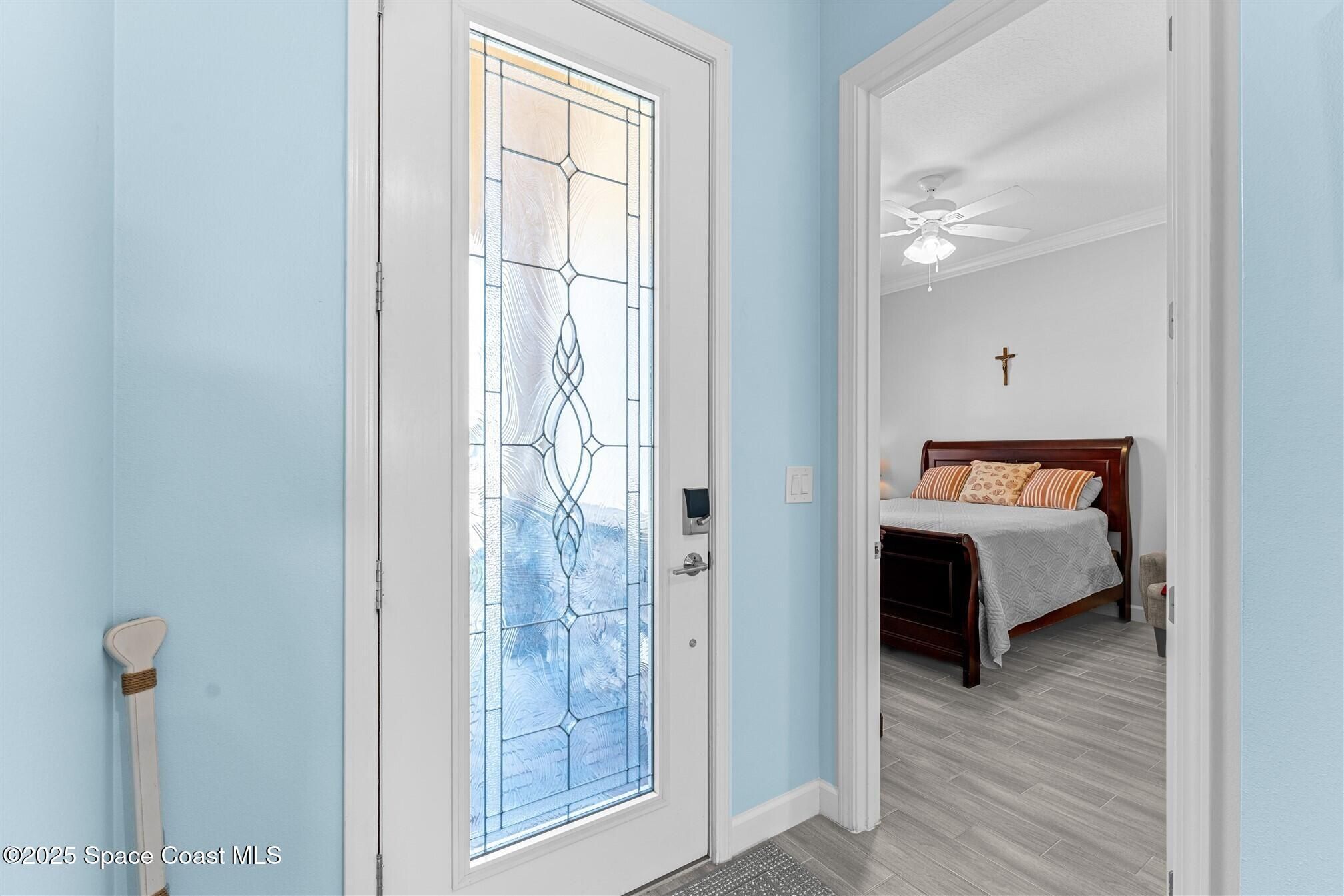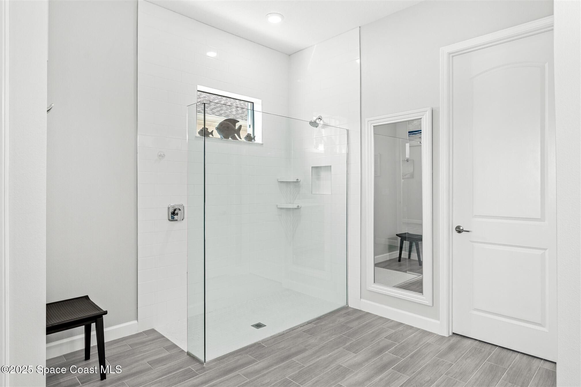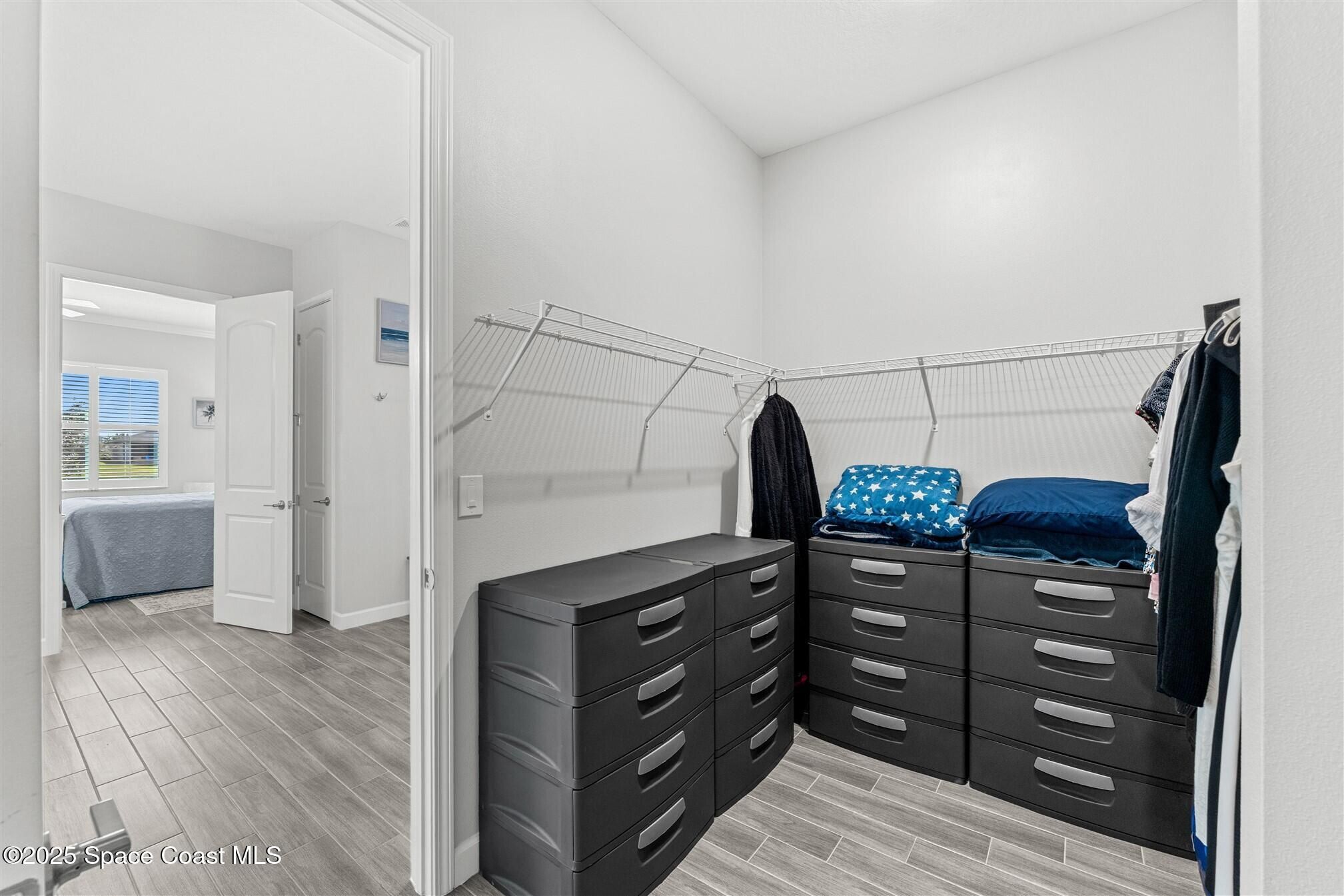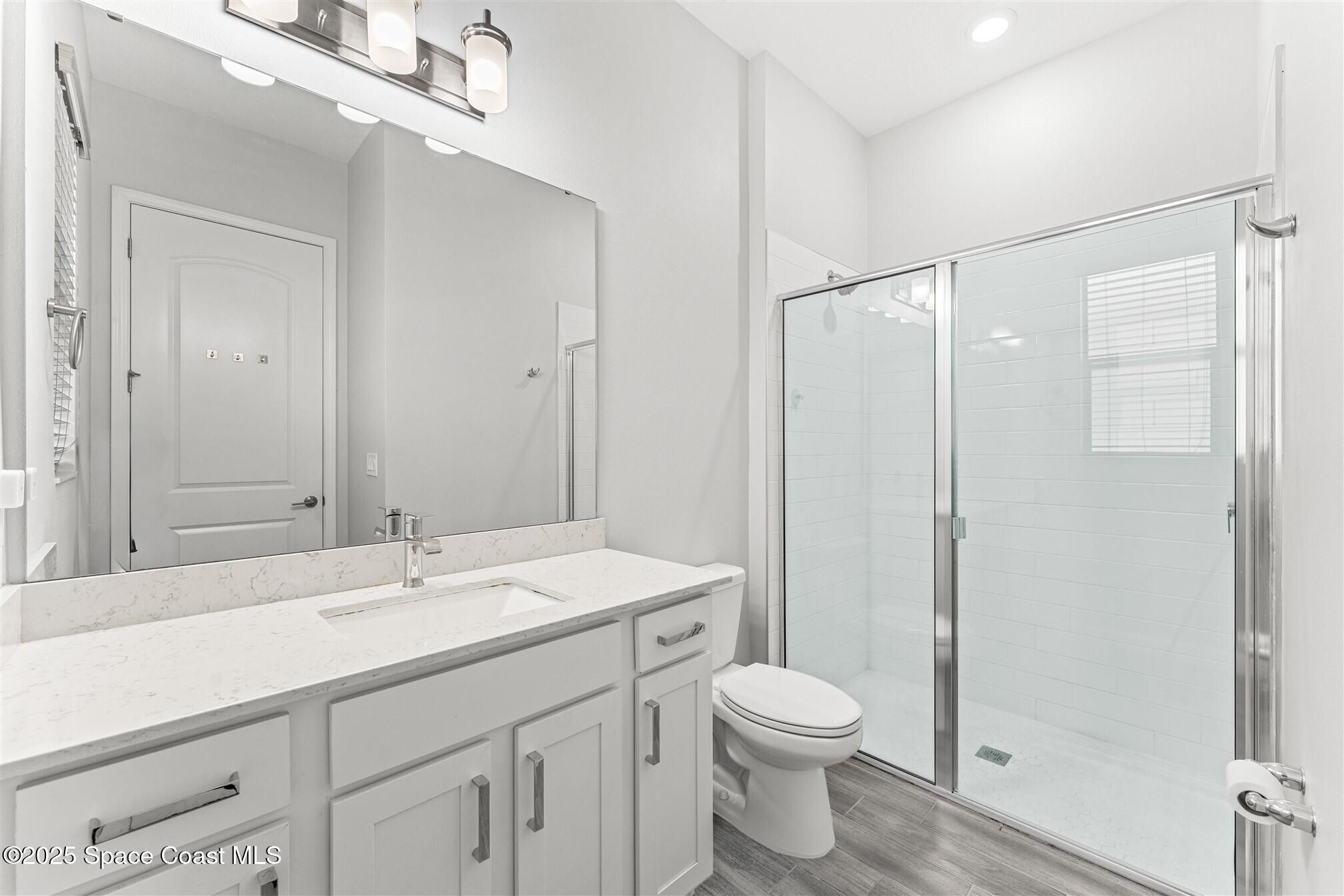 Pristine 3 bedroom plus study, 3 ½ bath home in Bridgewater, Viera's popular 55+ resort style community! Move in ready with every upgrade: new porcelain tile plank floors throughout, crown molding, plantation shutters, screened in lanai, 8' doors, epoxy garage floors and more! Perfect for guests, every bedroom is an ensuite with its own bath! Large three panel sliders in great room bring the beautiful lake views into your home and set it apart from similar key largo style homes! The outside is as meticulous as the interior with stone trim enhancing the freshly painted exterior. As you approach the home, you will notice the stone landscape beds and impact glass etched front door. Accordion shutters are on all windows and sliders and a transformer switch for a future generator add to your peace of mind. The private clubhouse offers a large heated pool and spa, fitness center, tennis & pickleball courts and a movie theater! Short drive to ocean beaches, cruise ships, shopping, dining!
