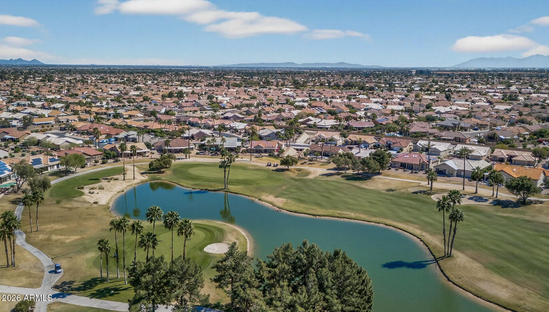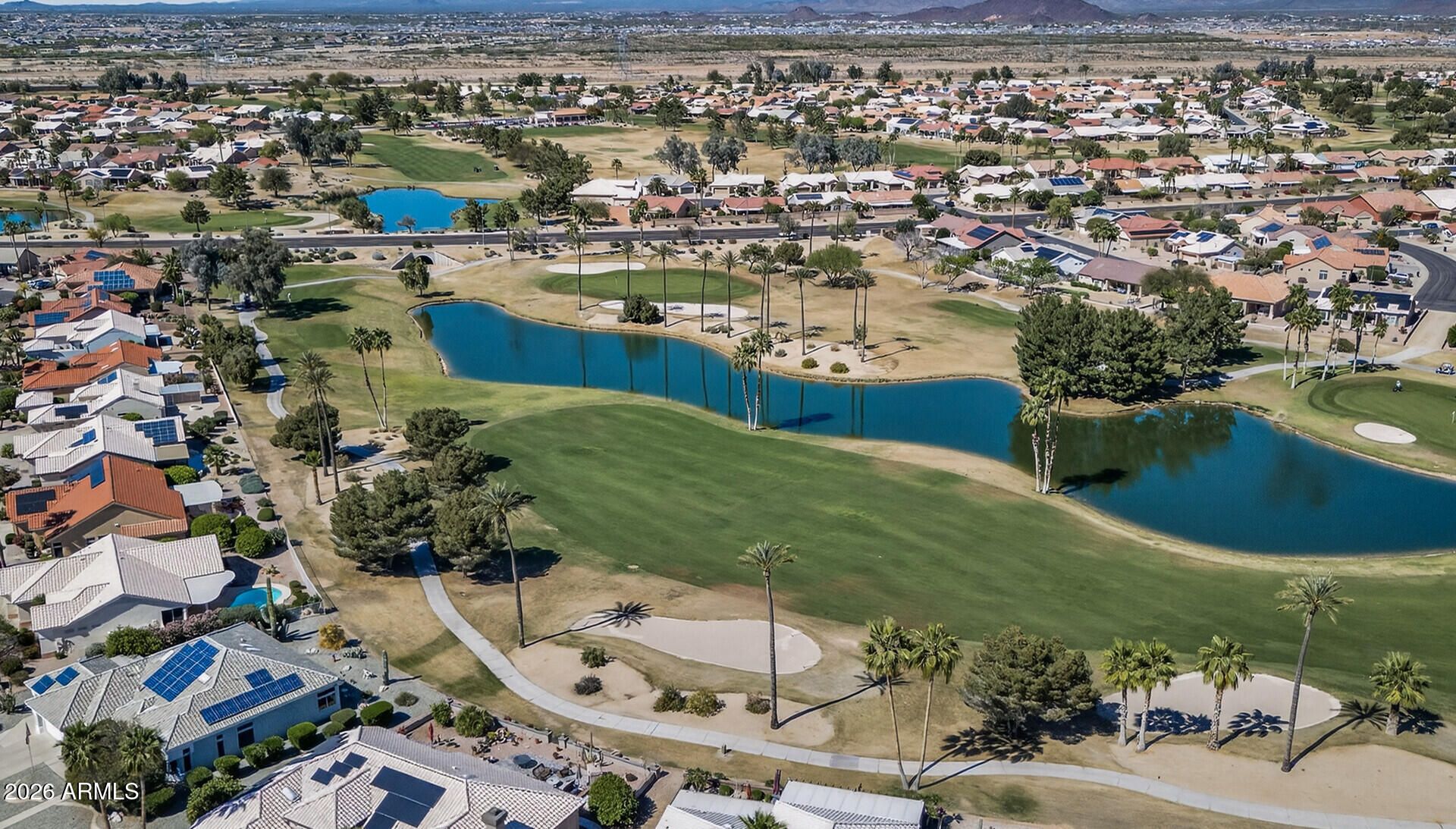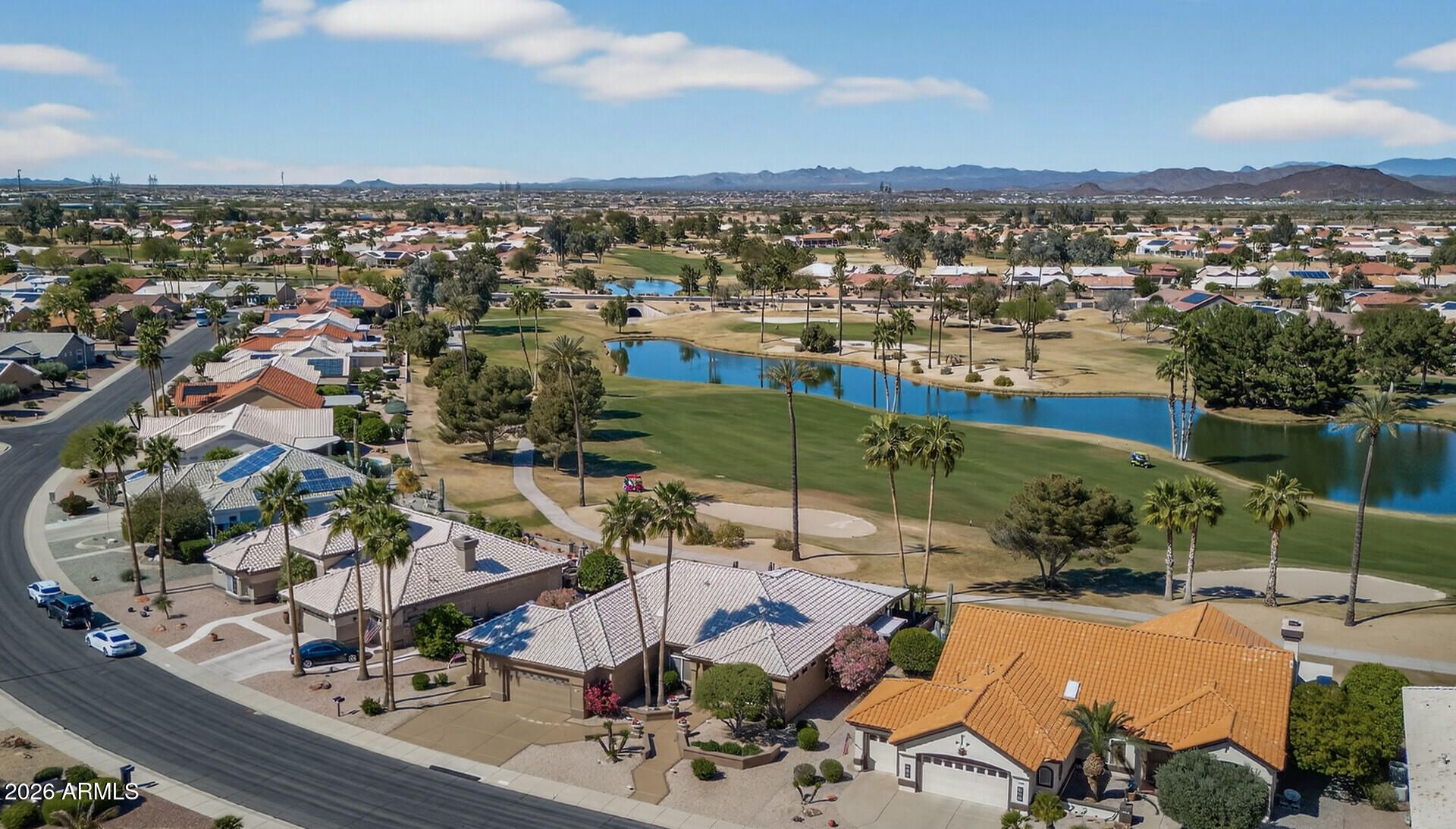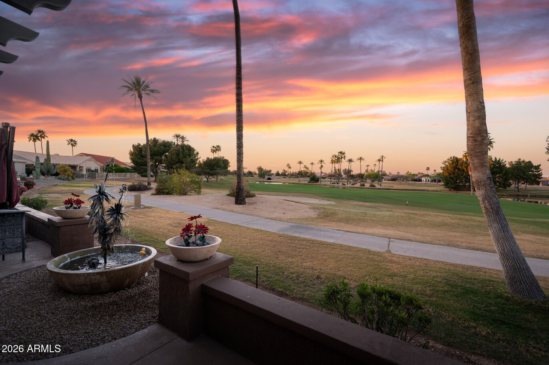 ONE-OF-A-KIND PROPERTY with MILLION-DOLLAR GOLF COURSE VIEWS! Prime lot overlooking the Desert Trails Golf Course featuring RARE TRIPLE FAIRWAY (15th, 16th and 17th) and WATER VEIWS This EXPANDED San Carlos model is being offered FULLY FURNISHED and is available for the first time from the original owner, who has METICULOUSLY MAINTAINED and THOUGHTFULLY UPDATED the home throughout the years. The ideal floor plan includes two spacious ensuite bedrooms plus a dedicated office/study with French doors and built-in cherry cabinetry. The home also features formal living and dining areas with custom chandelier lighting, along with an expanded family room highlighted by a full wall of built-ins, an entertainment center, and an electric holographic fireplace providing both ambiance and supplemental heat. The chef's kitchen is truly exceptional, featuring 6cm granite throughout, a massive kitchen island with counter seating, custom cabinetry (including built-in spice racks, premium appliances, induction cooktop, dual wall ovens, Ever-Hot water dispenser, pantry, and a dining area perfectly positioned to capture the spectacular water and golf course views. Outdoor living is equally impressive. The extended patio spans the full width of the home and includes an insulated patio roof, ceiling fans, and roll-down sunshades for year-round comfort. The patio furniture, custom fountain, BBQs, storage shed, and deck box all convey, making this outdoor space ready to enjoy immediately. Additional highlights include a 2.5-car garage plus dedicated golf cart garage, extensive storage, and a hobby/storage room leading to the garage. Major Improvements Include: New Premium Tyvek roof underlayment (2017) - 40-year material warranty and 10-year installation warranty -- Exterior paint and driveway/walkway resurfaced and painted (2024) - 5-year warranty -- New 50-gallon water heater with recirculation pump (2025) -- New water softener (2023) -- One A/C unit replaced (2022) -- Custom leaded glass double front doors with overhead window -- Hidden roll-away screens on front and patio doors -- Landscape lighting in front and back yards -- Solar tubes and skylights for abundant natural light -- Additional electrical outlets in kitchen and floor outlets in family room -- Coffered ceilings and custom 4" baseboards -- Two built-in shoe closets in the primary bedroom -- Spa-inspired primary bath with large roll-in shower, bench seating, 6cm granite counters, dual vanities, extra outlets (including USB), and walk-in closet -- Spacious guest suite with private bath and walk-in closet -- Central vacuum system -- Storage/hobby room leading to garage -- New Samsung washer and dryer -- Extended 2.5-car garage with utility sink, extensive built-in cabinetry, storage drawers, and dedicated golf cart bay -- A rare opportunity to own a beautifully maintained golf course property with exceptional views, upgrades, and furnishings included in one of Sun City West's most desirable locations.