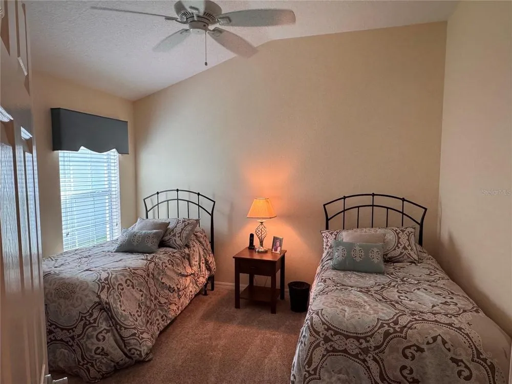 This beautifully maintained and move-in ready Iris Designer home is located in the desirable Village of Pennecamp and offers excellent curb appeal with stacked stone landscaping borders and attractive plantings. Inside, you’ll find a spacious open floor plan that’s perfect for entertaining, with tile flooring throughout the main living areas and carpeting in all three bedrooms.The kitchen features stainless steel appliances, chocolate cabinetry, a breakfast bar, closet pantry, and a cozy nook area. A formal dining space connects seamlessly to the living room, creating plenty of room for gatherings. Just off the kitchen is the laundry room, complete with cabinets, a wash sink, and even space for a desk.The living room opens to an enclosed lanai, made private by a row of mature shrubs, providing the perfect place to relax. The main bedroom is a light-filled retreat with a tray ceiling, ceiling fan, and 4 windows. Its en-suite bath includes dual vanities, a separate water closet, a tiled walk-in shower with seat, and a spacious walk-in closet. The guest area is located at the front of the home and is made private by a pocket door, leading to two additional bedrooms, a guest bath, and a linen closet.Additional highlights include a two-car garage with epoxy flooring, pull-down attic stairs, water softener, and space for a golf cart—which is included with the sale.This home is move-in ready, extremely well kept, and located in a lovely neighborhood known as Jacaranda Island. Call today to schedule your private showing!