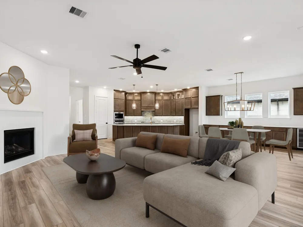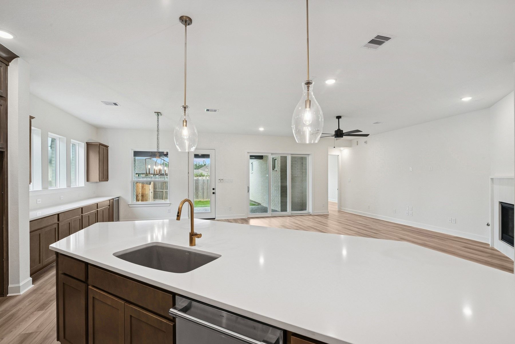 - Double Vanity, Kitchen Island, Kitchen/Family Room Combo, Bath in Primary Bedroom, Pantry, Solid Surface Counters, Walk-In Pantry, Ceiling Fan(s), Kitchen/Dining Combo, Programmable Thermostat