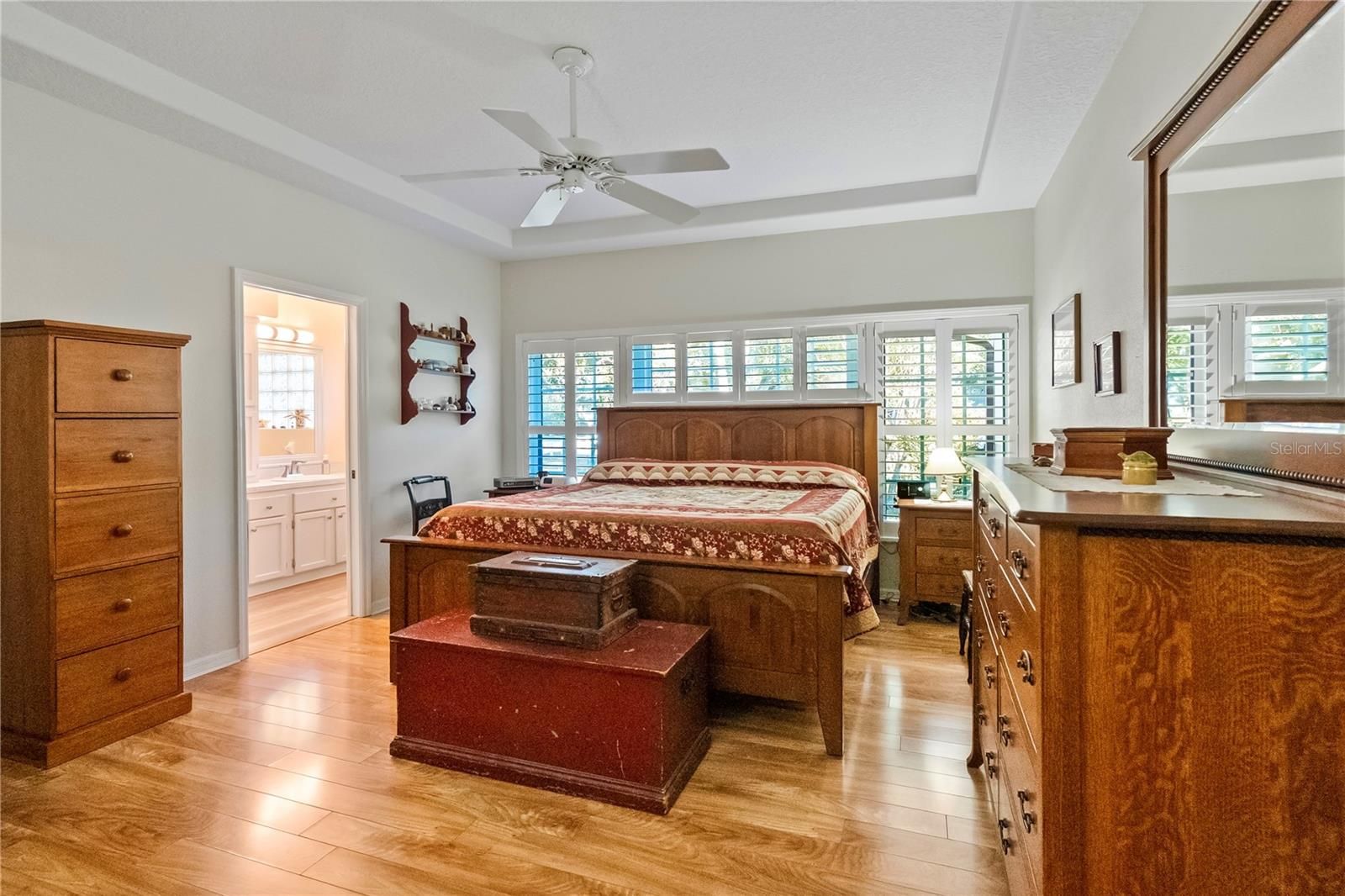 - Built-in Features, Eat-in Kitchen, Open Floorplan, Main Level Primary, Thermostat, Tray Ceiling(s), Walk-In Closet(s), Window Treatments