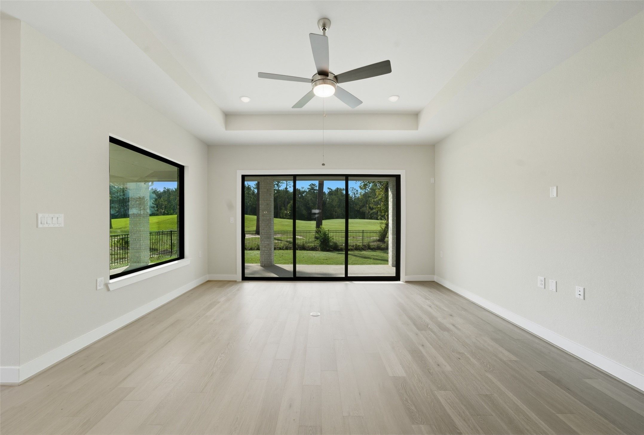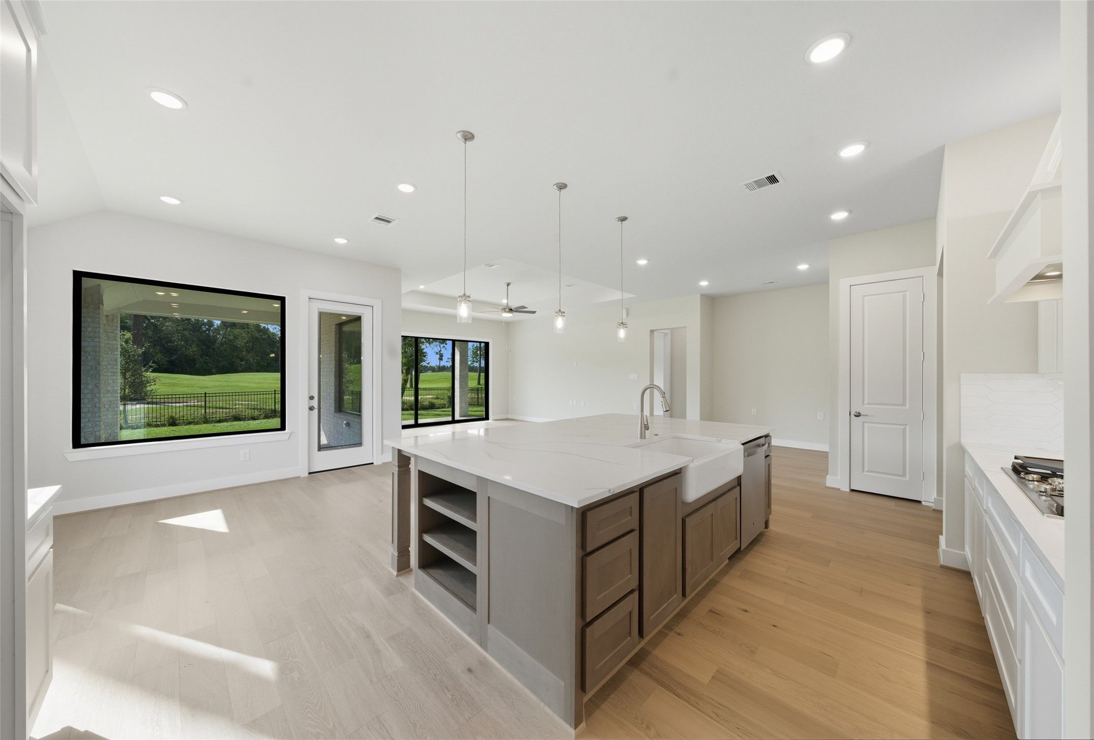 Fairway Pines at The Highlands is a 55+ community thoughtfully designed for wellness, connection, and an active lifestyle. Enjoy top-tier amenities like pickleball courts, scenic trails, Mirror Lake, The Preserve, and beautifully maintained golf course views. The Waterlily is a well-appointed single-story home featuring an extended covered patio with sliding glass doors that frame stunning views of the fairway—perfect for entertaining or relaxing outdoors. Inside, the pocket office has been removed to create a more open and spacious living area, and the 5-foot garage extension is ideal for storing a golf cart or extra gear.