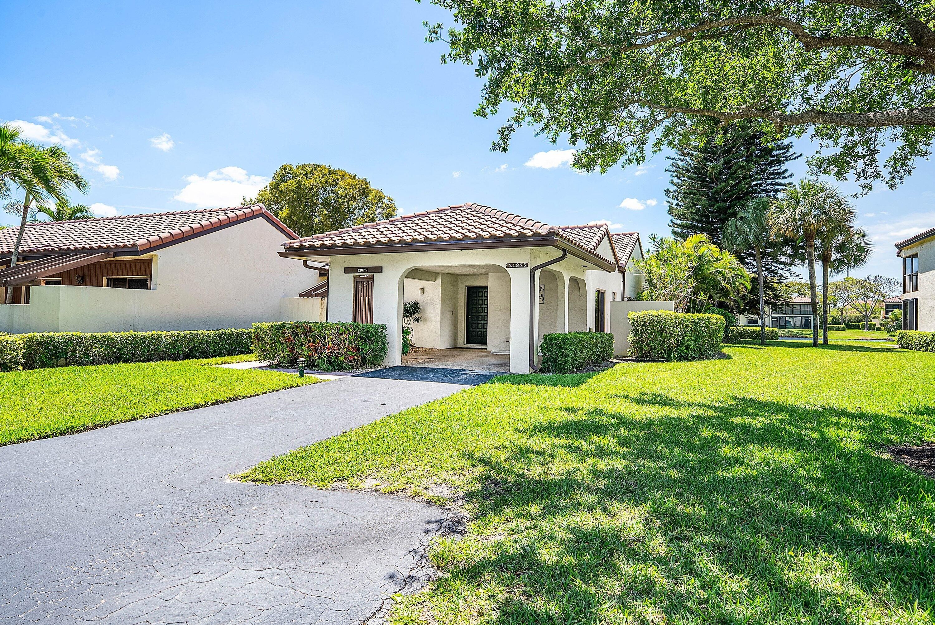 Spectacular lake views from this spacious 2-bedroom, 2-bath villa in highly desirable, man-gated, non-mandatory Boca Lago Country Club. Bright open floor plan with living and dining areas, eat-in kitchen, and ample closet space. Enjoy a glass-enclosed patio with serene lake views, plus an additional outdoor side patio. Includes carport and private driveway. Pet-friendly community (one small pet) with optional golf membership—country club living without mandatory fees. Conveniently located near top restaurants, shopping, and the Turnpike.
