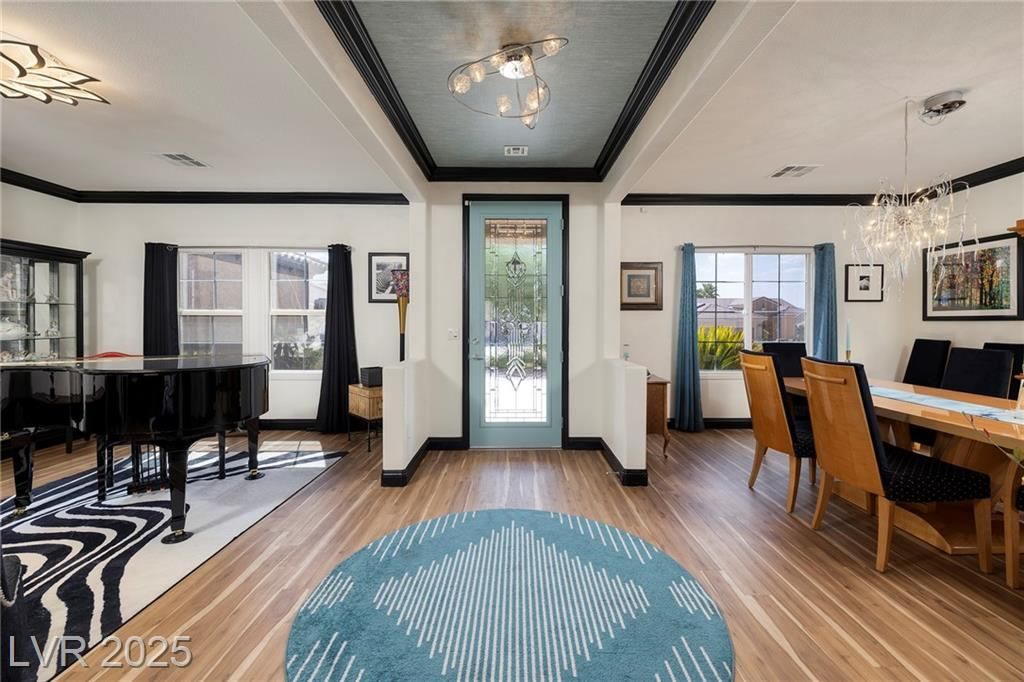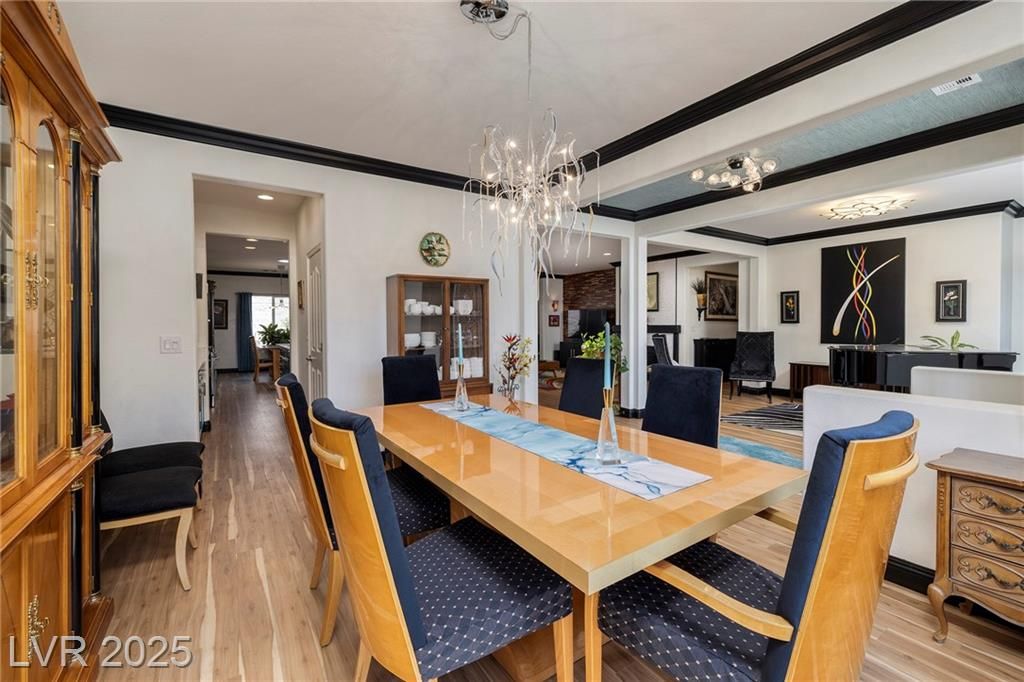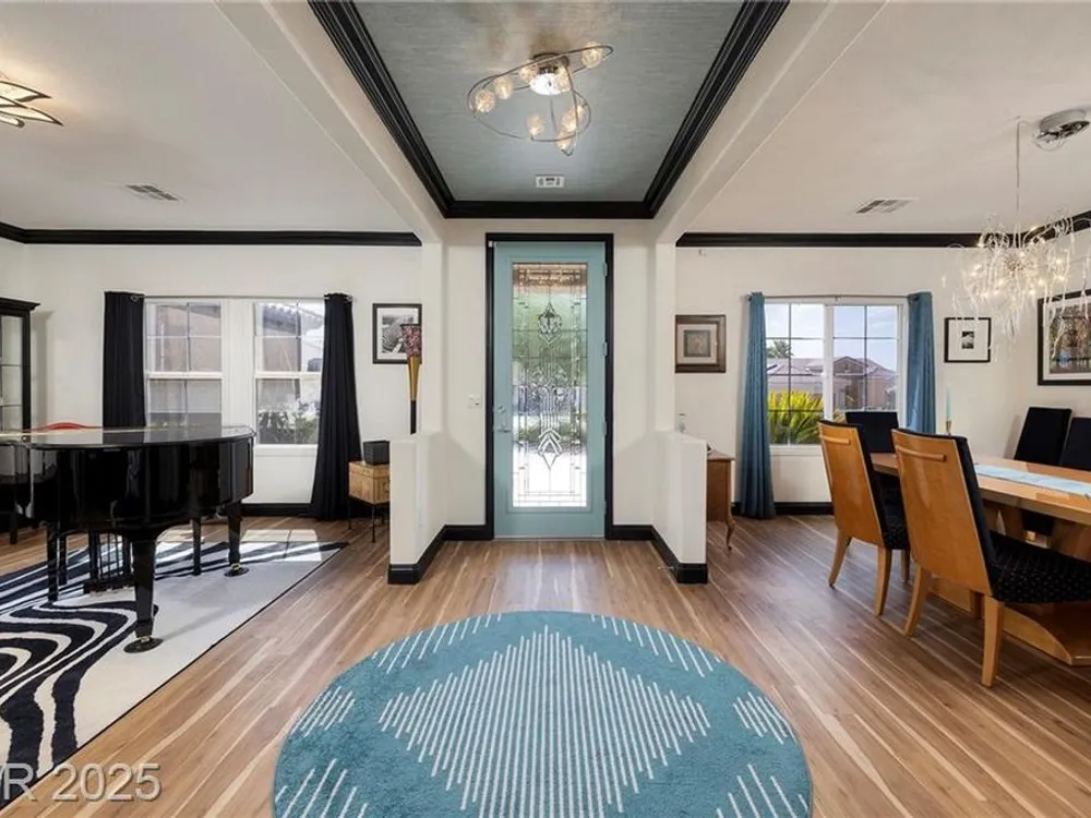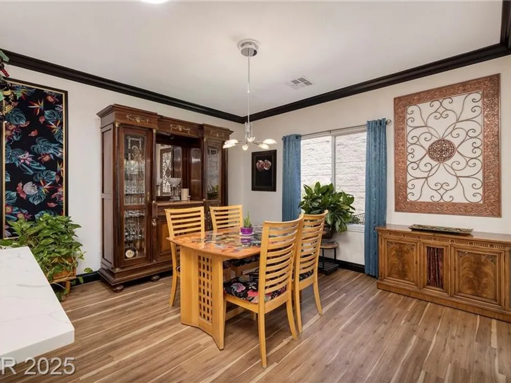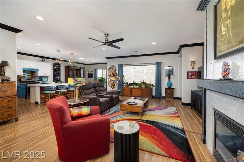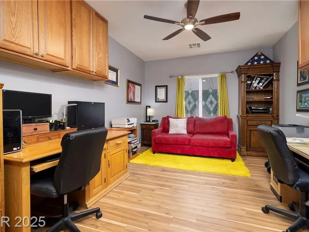 Stunning Columbia Model in Sun City Anthem – 55+ Living at Its Finest! Welcome to this beautifully maintained and popular floor plan with thoughtfully designed living spaces, featuring 2 bedrooms, 2 bathrooms, and a flex room with a stylish barn door—perfect as a den, office, fitness space, or hobby room. Large family room with gas fireplace and plenty of natural light. The upgraded kitchen boasts 2 ovens, SS appliances, eat-in nook, island, butler’s pantry + walk-in pantry for ample storage. Interior highlights include luxury vinyl plank flooring, crown molding, and custom light fixtures—all adding warmth and elegance. Garage has Electric car charger. Step outside to your fully enclosed backyard with covered patio and low-maintenance desert landscaping, offering peaceful outdoor living year-round. 3 Clubhouses, restaurant, 2 golf courses, fitness center, pickleball, swimming, tennis and more. Don't miss this opportunity to live in one of Henderson’s premier active adult communities!