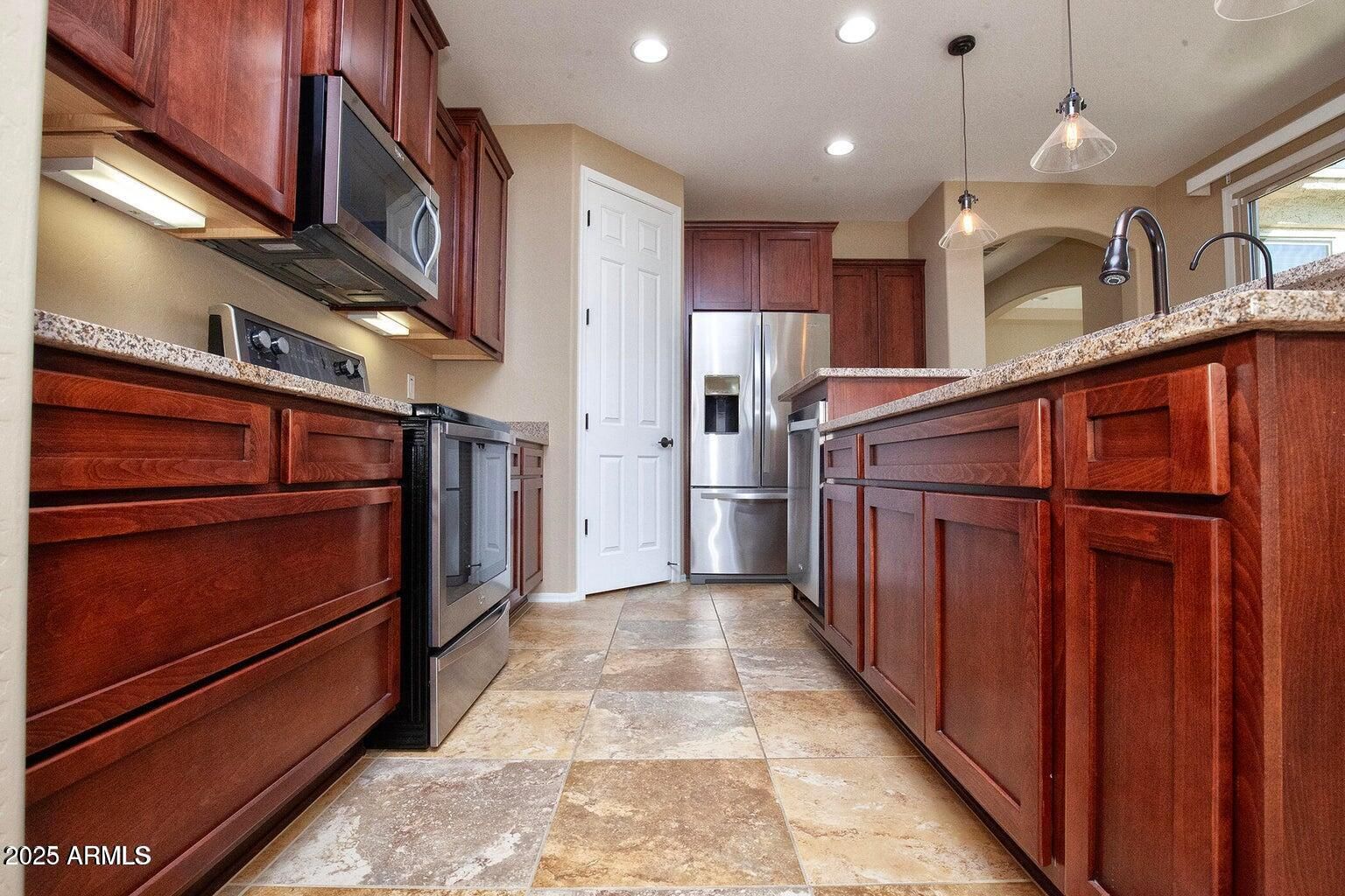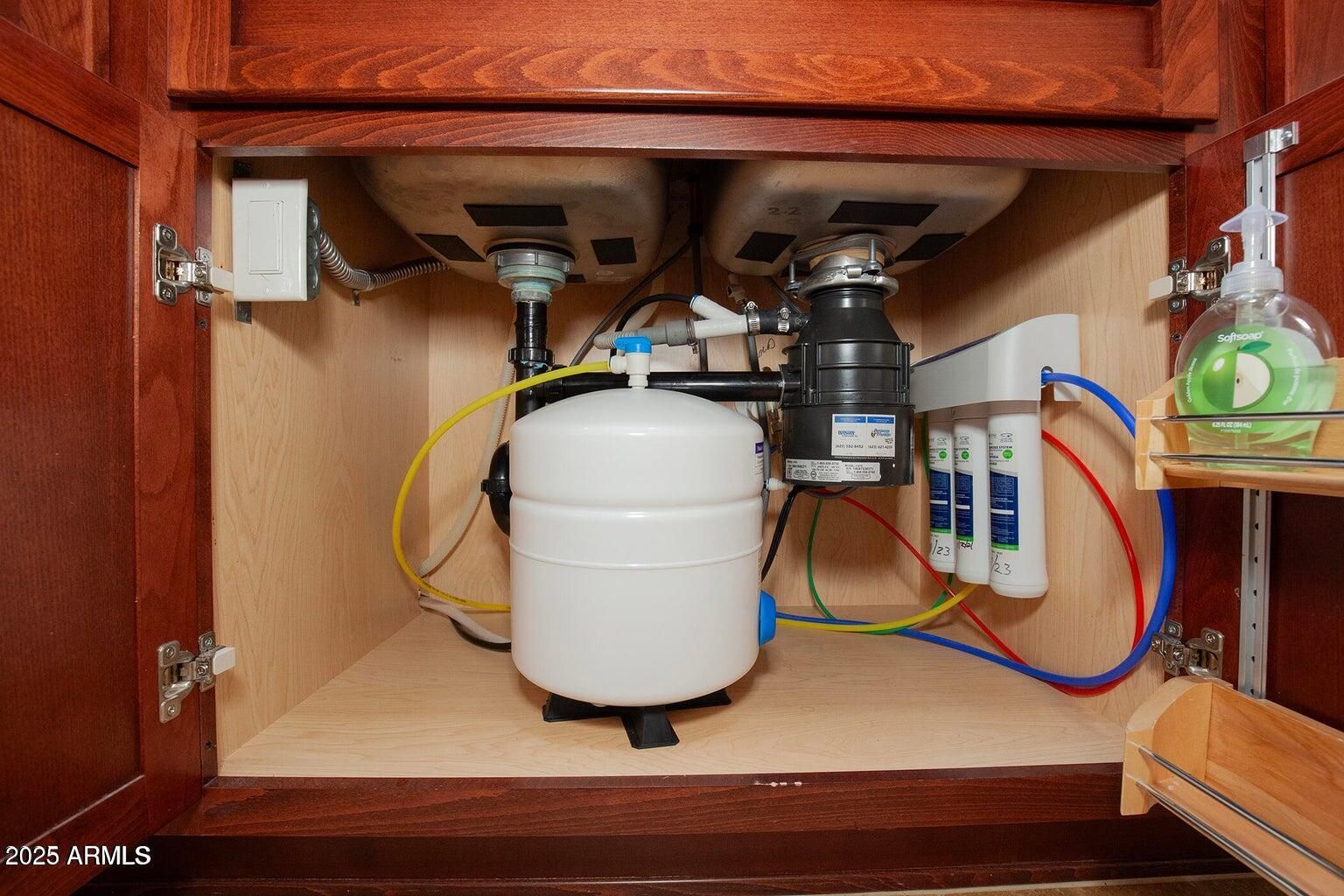 - Dryer, Washer, Water Softener Owned, Gas Stub for Range, Built In Recycling, Reverse Osmosis, Refrigerator, Built-in Microwave, Dishwasher, Disposal, Gas Range, Electric Range