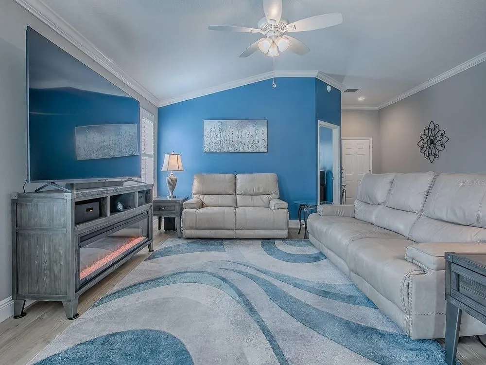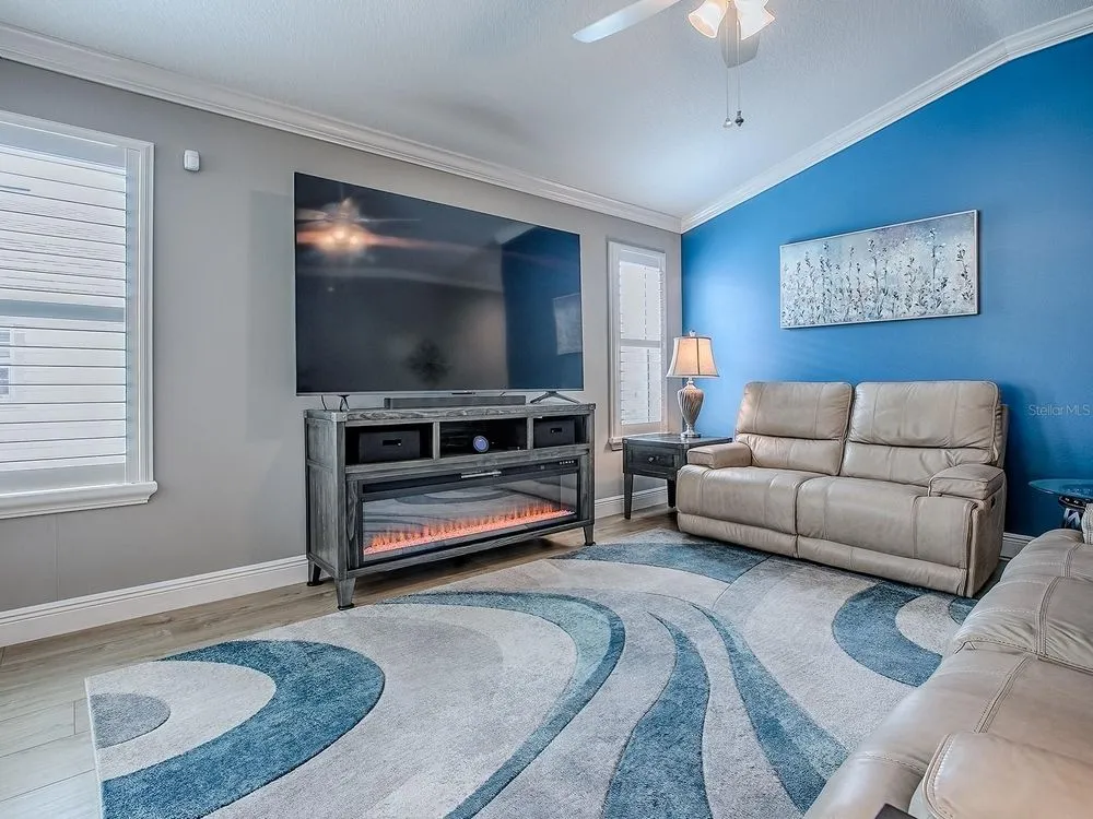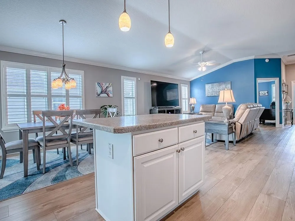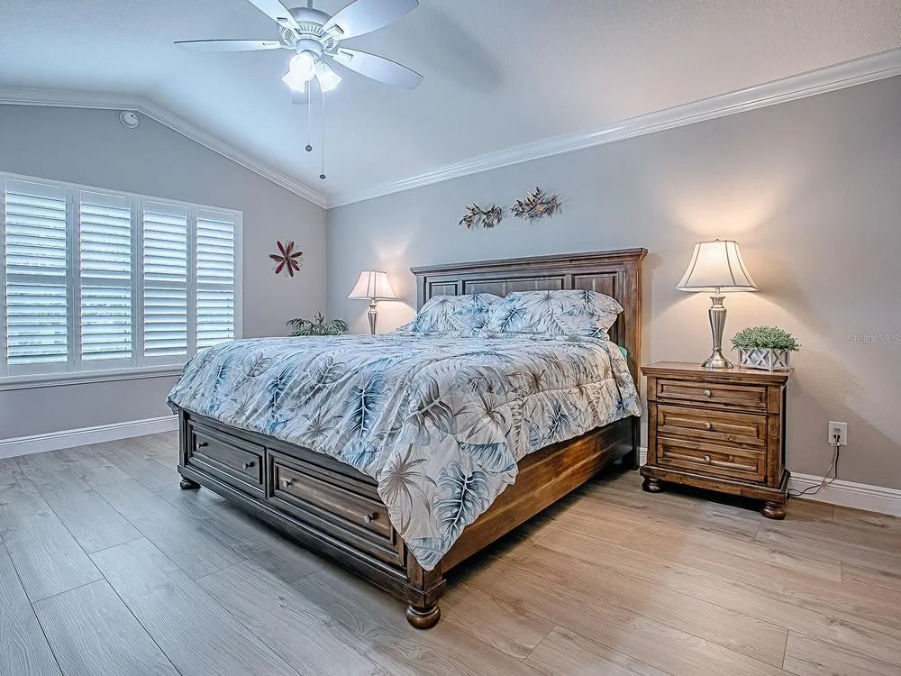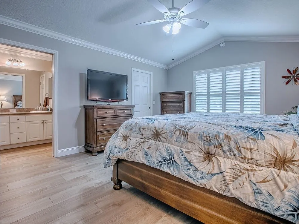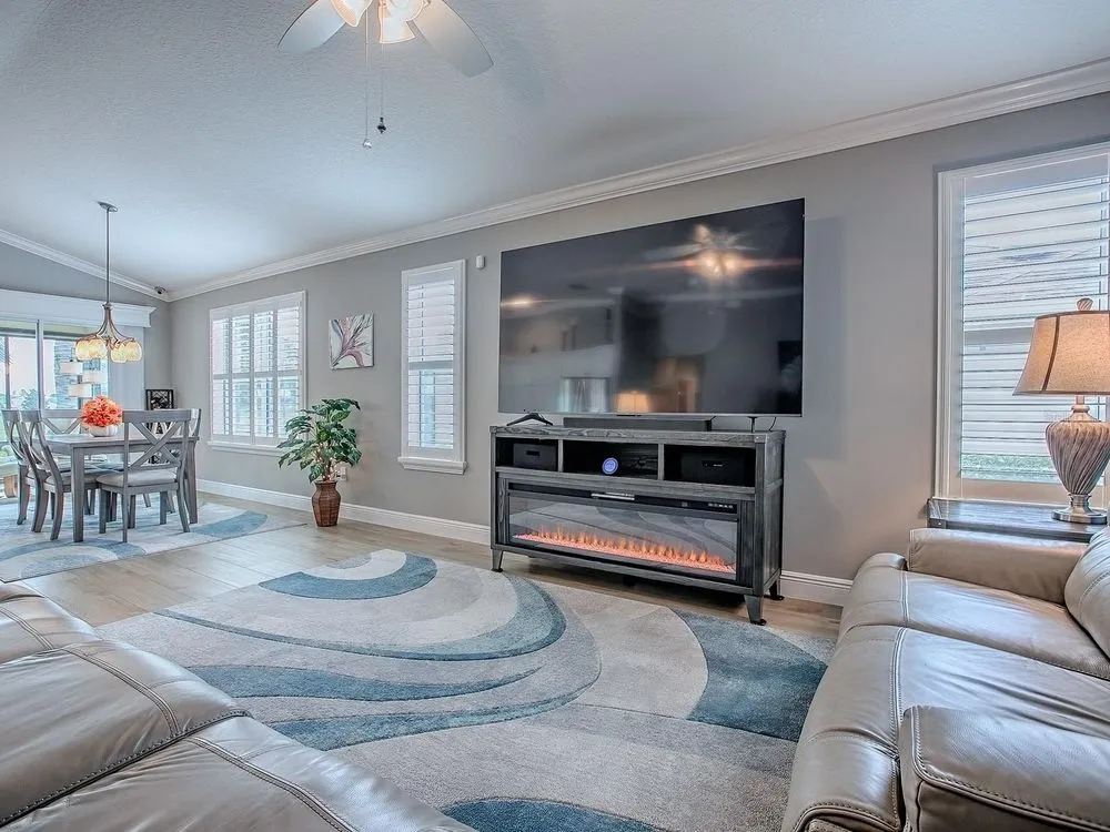 - Ceiling Fan(s), Crown Molding, Living/Dining Room, Open Floorplan, Main Level Primary, Vaulted Ceiling(s), Walk-In Closet(s), Window Treatments