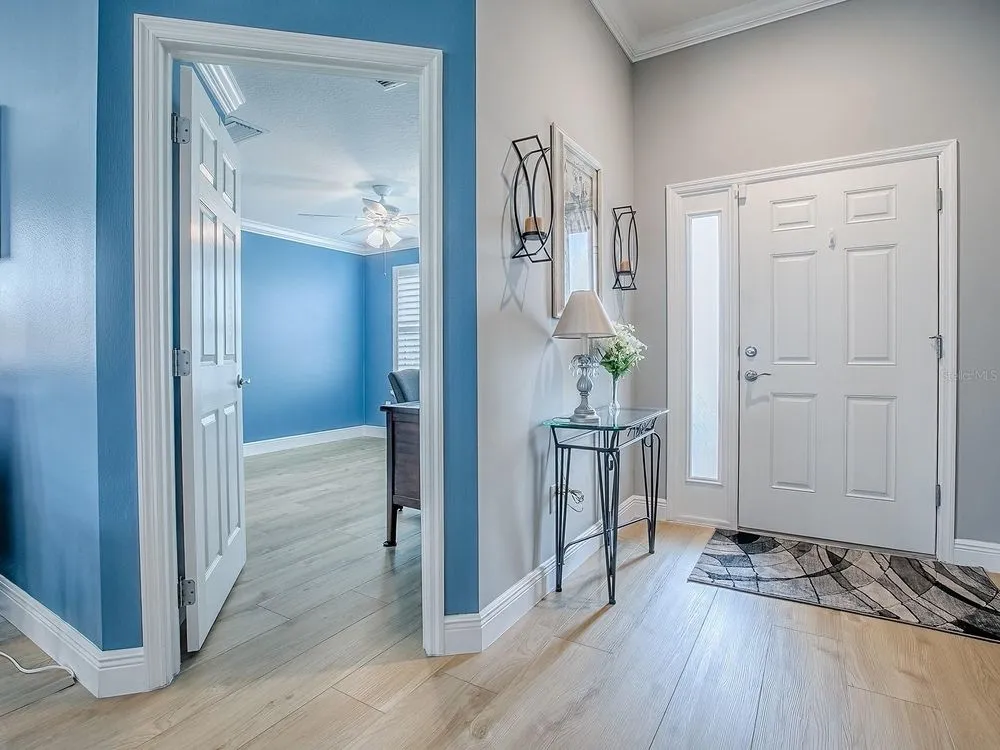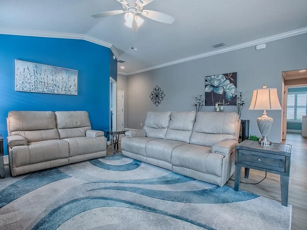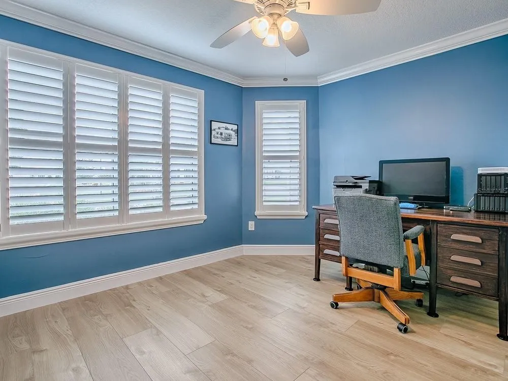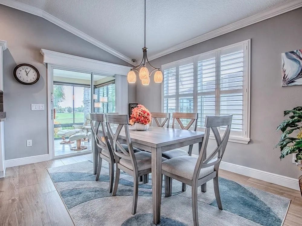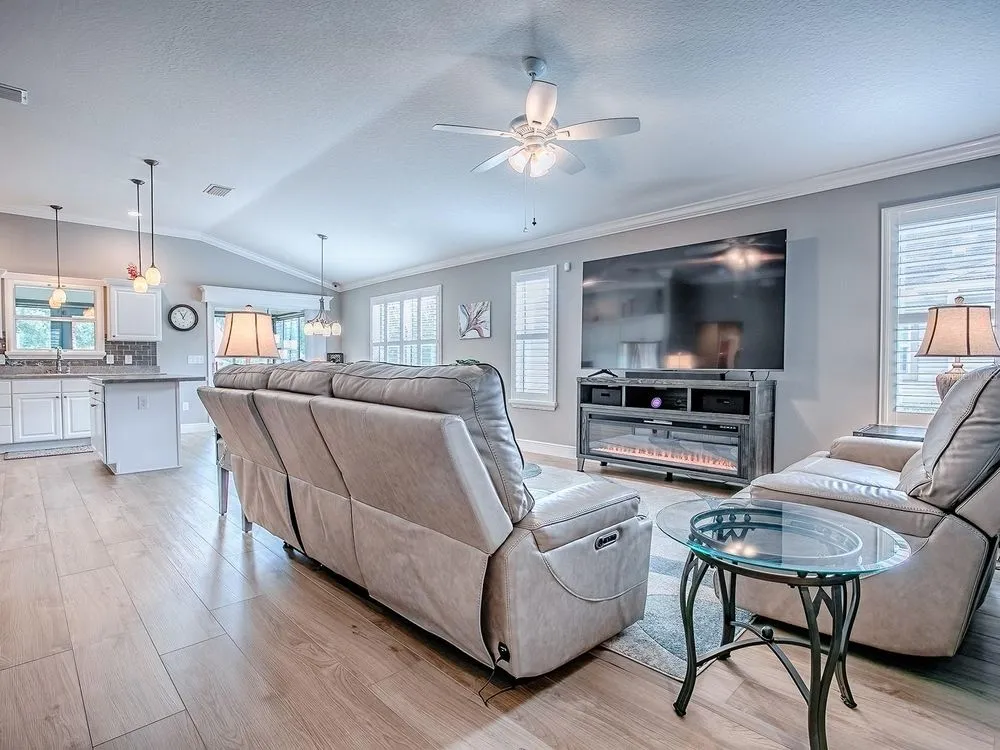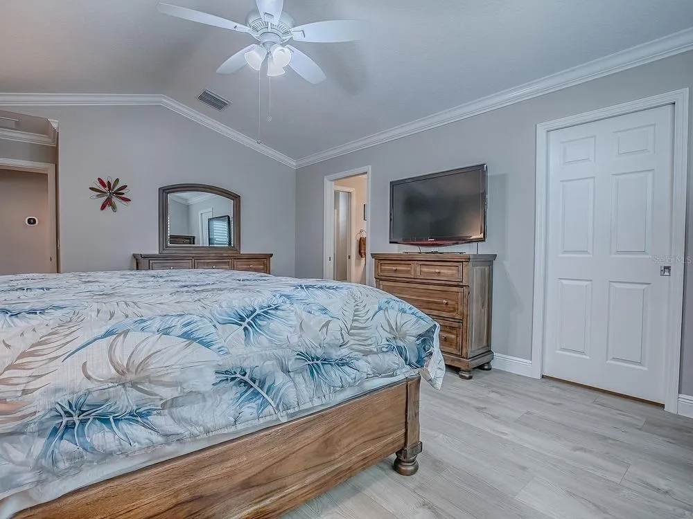 - Ceiling Fan(s), Crown Molding, Living/Dining Room, Open Floorplan, Main Level Primary, Vaulted Ceiling(s), Walk-In Closet(s), Window Treatments