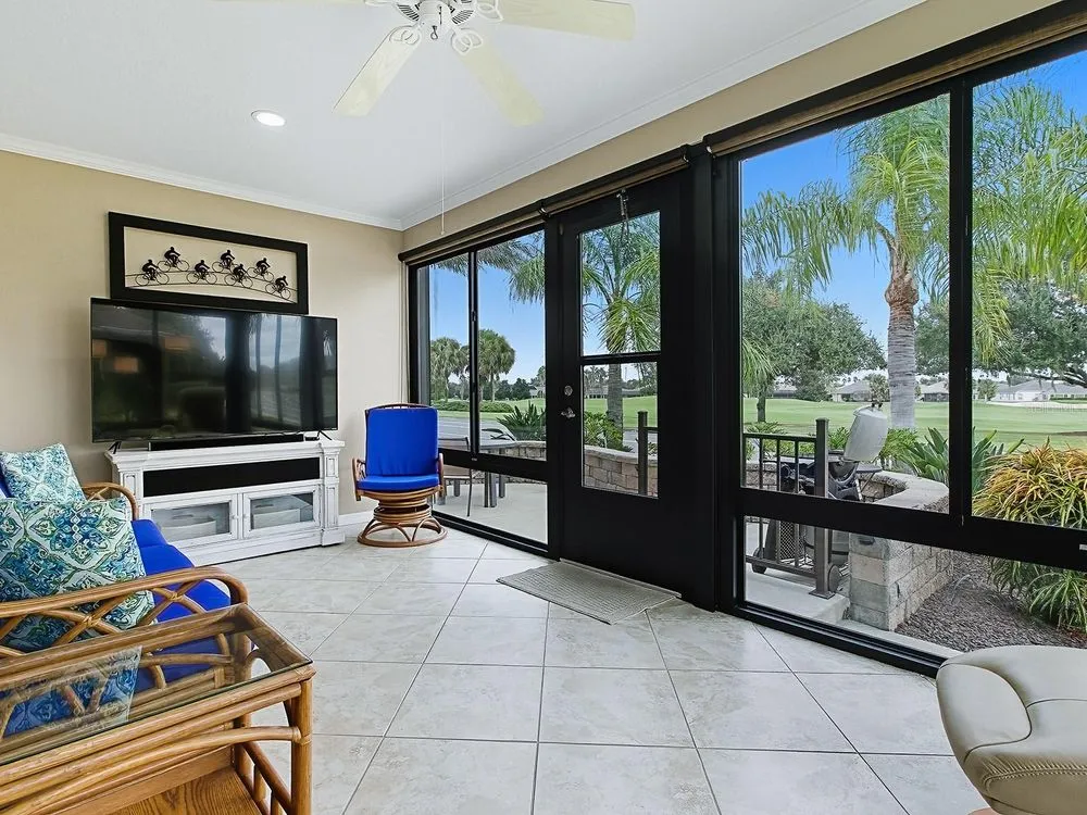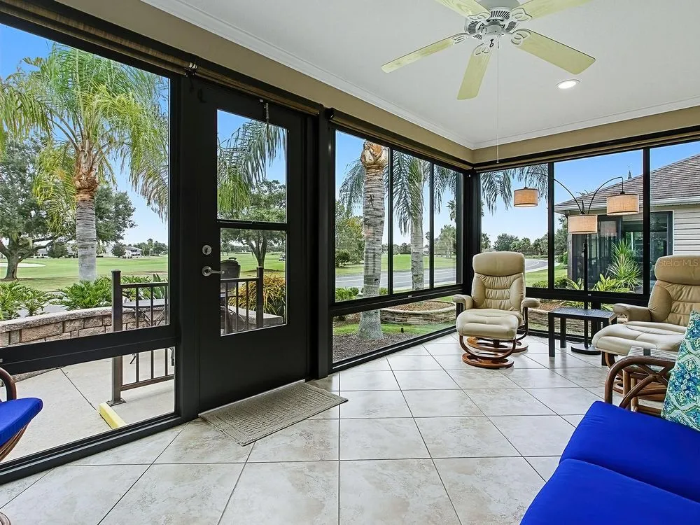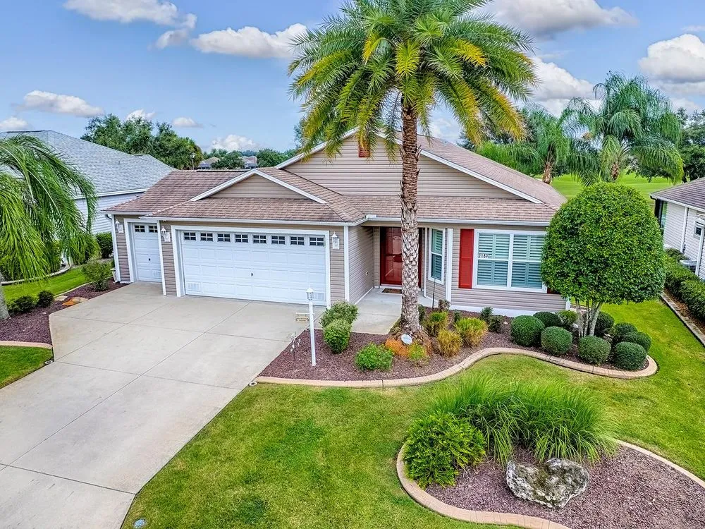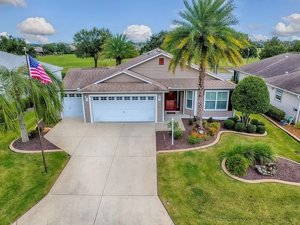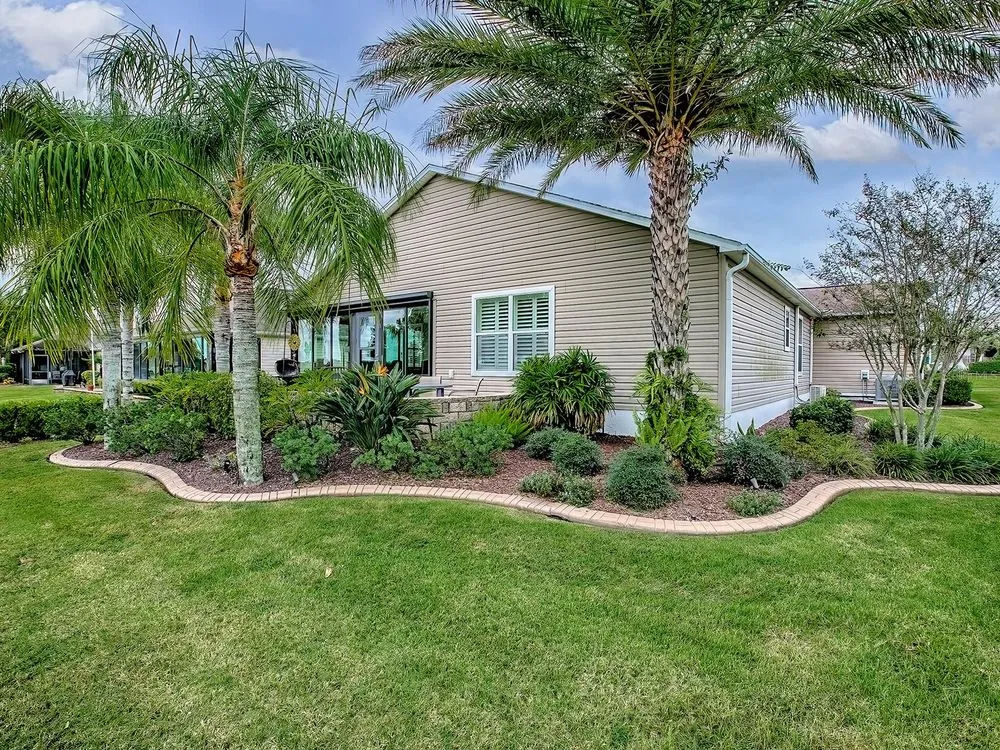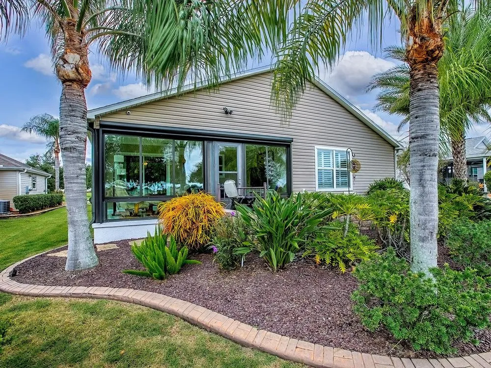 NEW ROOF COMING, and NEW 2024 HVAC on this LOVELY FURNISHED 3/2 COTTAGE with 2 car+ GOLF CART GARAGE located in the VILLAGE OF ST. JAMES. This beautiful, upgraded Seabreeze has lovely curb appeal with curbing, rock beds, and palm trees surrounding the entire home. You’ll find custom features throughout; PLANTATIONS SHUTTERS, CROWN MOLDING and NEW LUXURY VINYL PLANK FLOORING! The kitchen offers WHITE cabinetry with beveled edge hi-definition counter tops, SUBWAY TILE BACKSPLASH, STAINLESS appliances, closet PANTRY, under cabinet lighting, and an island with extra storage and pendant lighting. The dining room opens with sliding glass doors out to the GLASS ENCLOSED LANAI with drywall walls, TILE flooring, a mini-split unit for year round comfort, and motorized shades AND a GREAT VIEW! You’ll also love the custom PATIO off the enclosed lanai with a stacked stone wall, and plenty of room for grilling and entertaining while enjoying the VIEW! The two guest rooms both have all the lovely upgrades and large closets. The guest bath has a custom mirror, white cabinetry, crown molding, and a tub/shower. The primary bedroom has a large WALK-IN CLOSET with extra shelving, and an EN-SUITE BATH. The bath has a linen closet, dual sinks, and a pocket door that leads to the toilet and shower with glass enclosures. The laundry room has extra cabinetry and, of course, the washer and dryer do convey with the home. You’ll really enjoy all the room in the 2 car+ GOLF CART GARAGE where you’ll also find the NOVA water filtration system, pull down stairs, and power ventilation. Many other features include lightning rods, solar tube, and a security system with cameras, and so much more! This house has so much to offer whether a full time residence, snowbird, or a rental in a prime location. Located between Lake Sumter Landing and Brownwood with plenty of golf courses, recreation centers and nearby shopping, dining, and plenty of neighborhood fun!