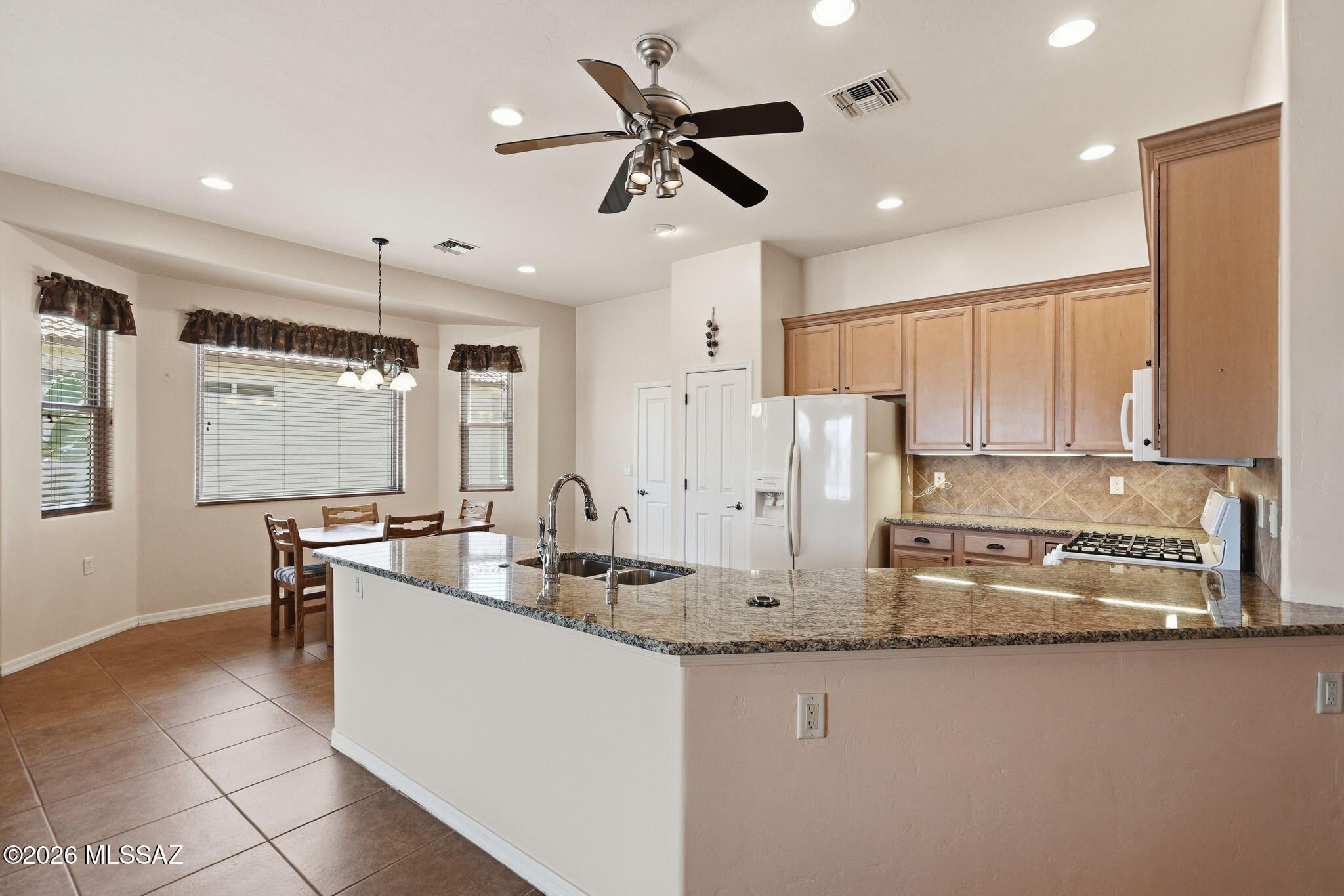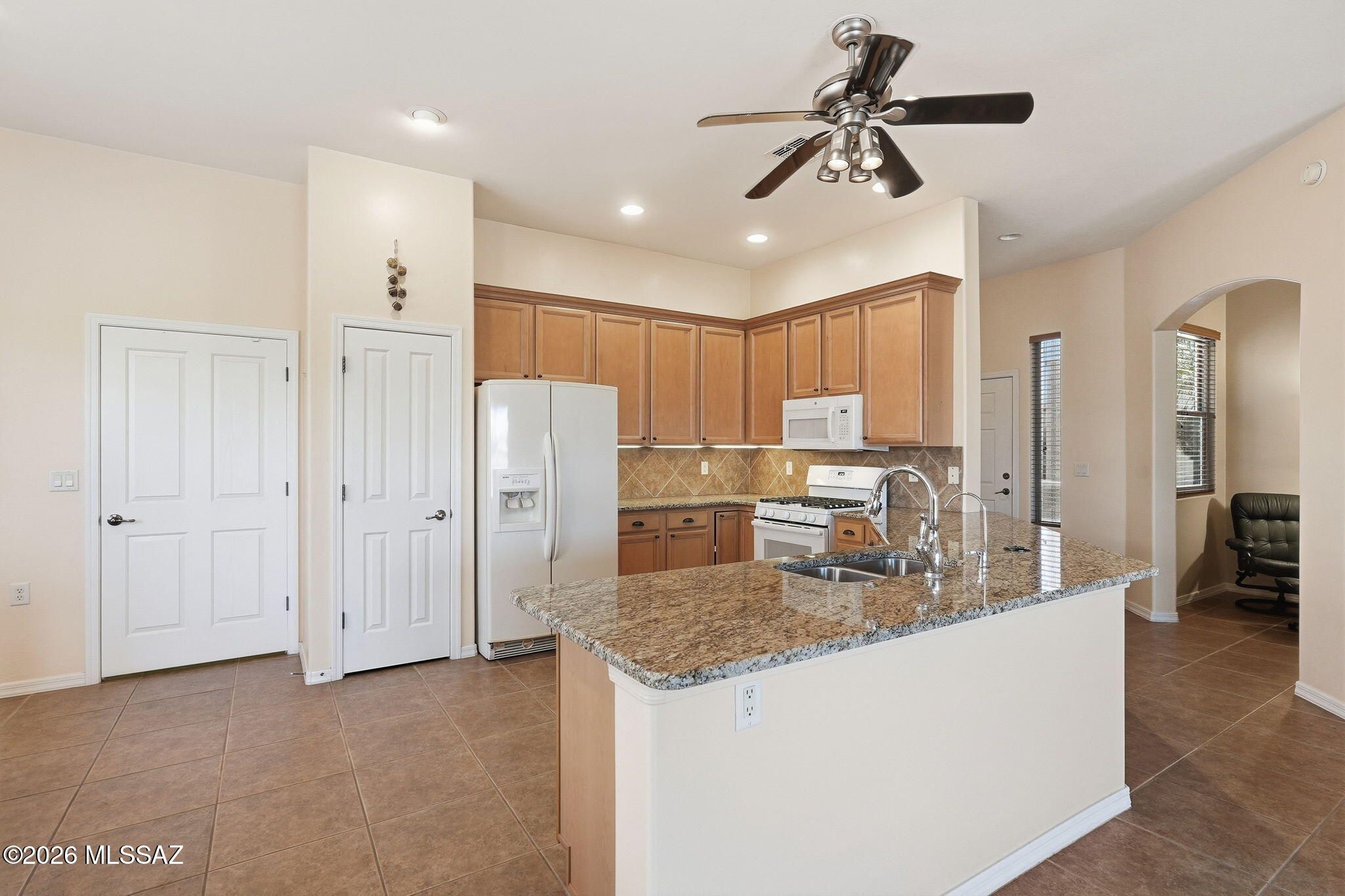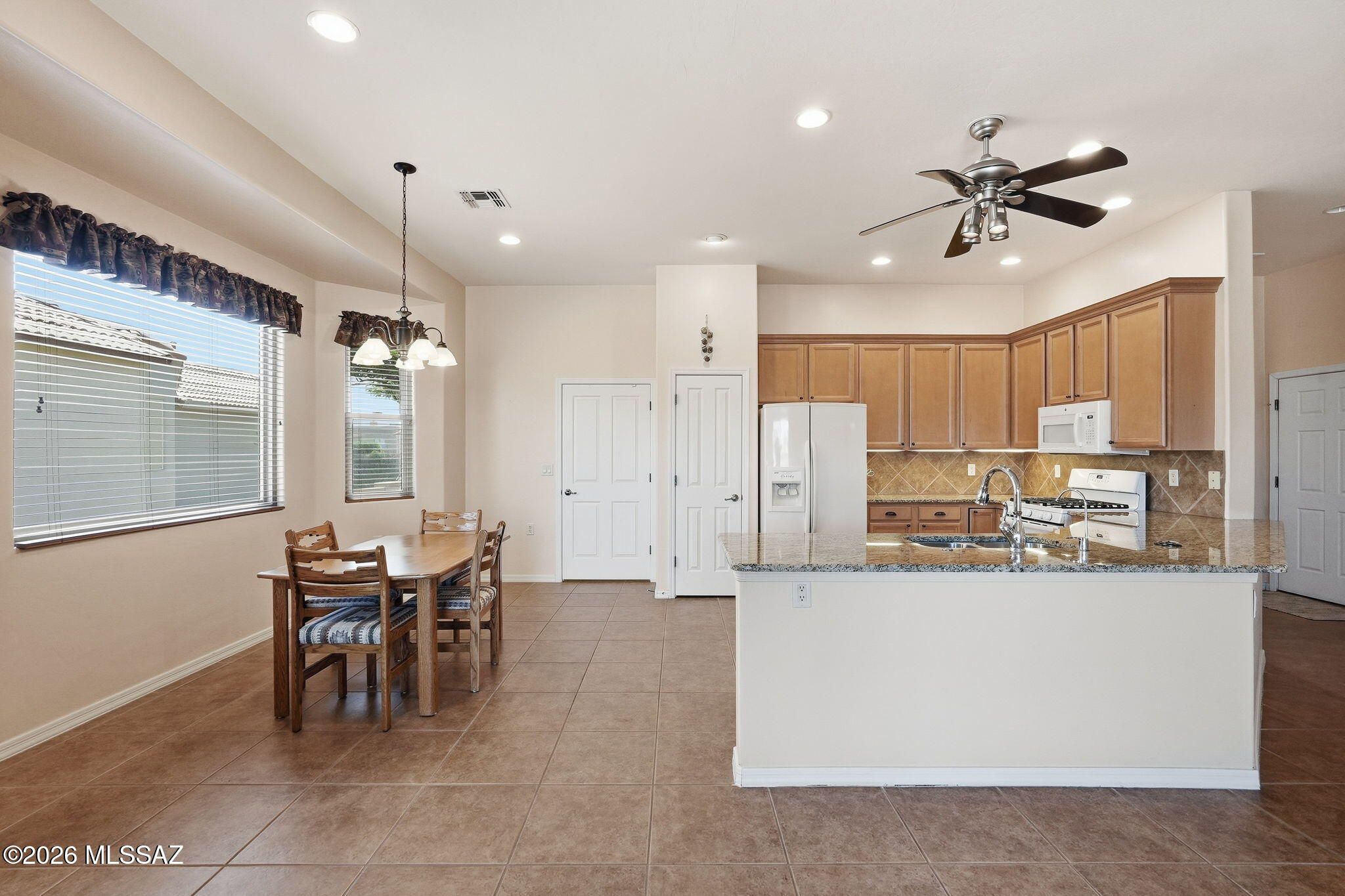 Experience comfortable, easy Southwest living in this well-maintained 1,599 sq. ft. home, ideally situated in the heart of Green Valley. Offering 2 bedrooms, 2 bathrooms, a versatile den, and a 2-car garage, this home is thoughtfully designed for both everyday comfort and relaxed entertaining.A spacious front courtyard creates a warm welcome and provides a private setting to enjoy morning coffee or quiet afternoons. Inside, the open great room is filled with natural light and centered around a cozy fireplace, adding both charm and a sense of comfort. The adjoining kitchen is designed to stay connected to the living space and features granite countertops, white appliances, generous cabinetry, and a functional layout that makes hosting simple.