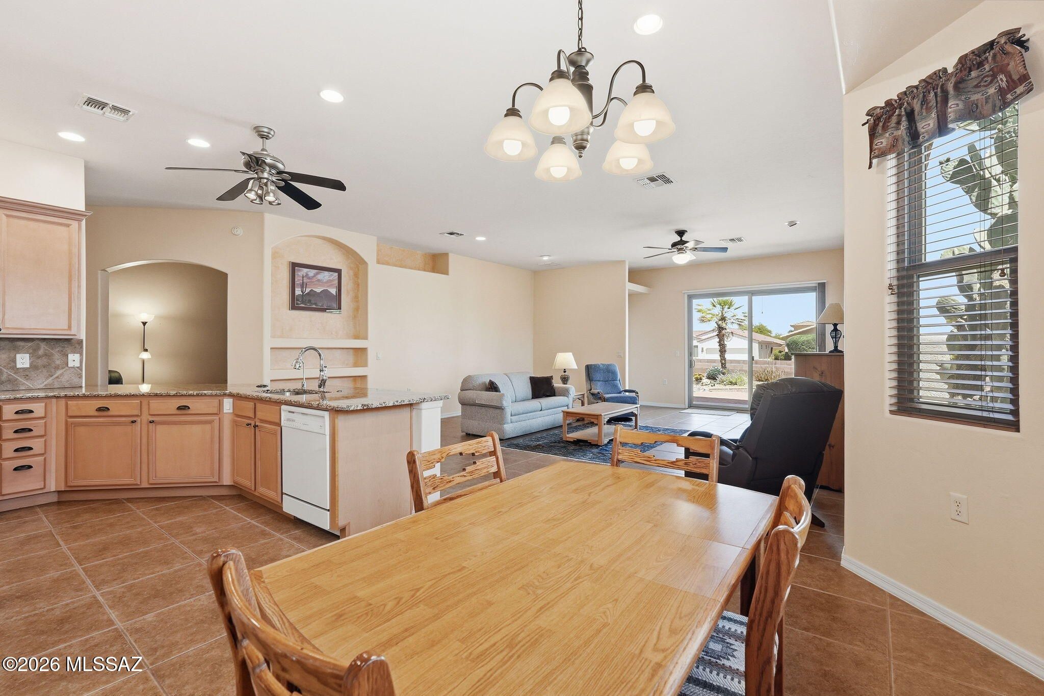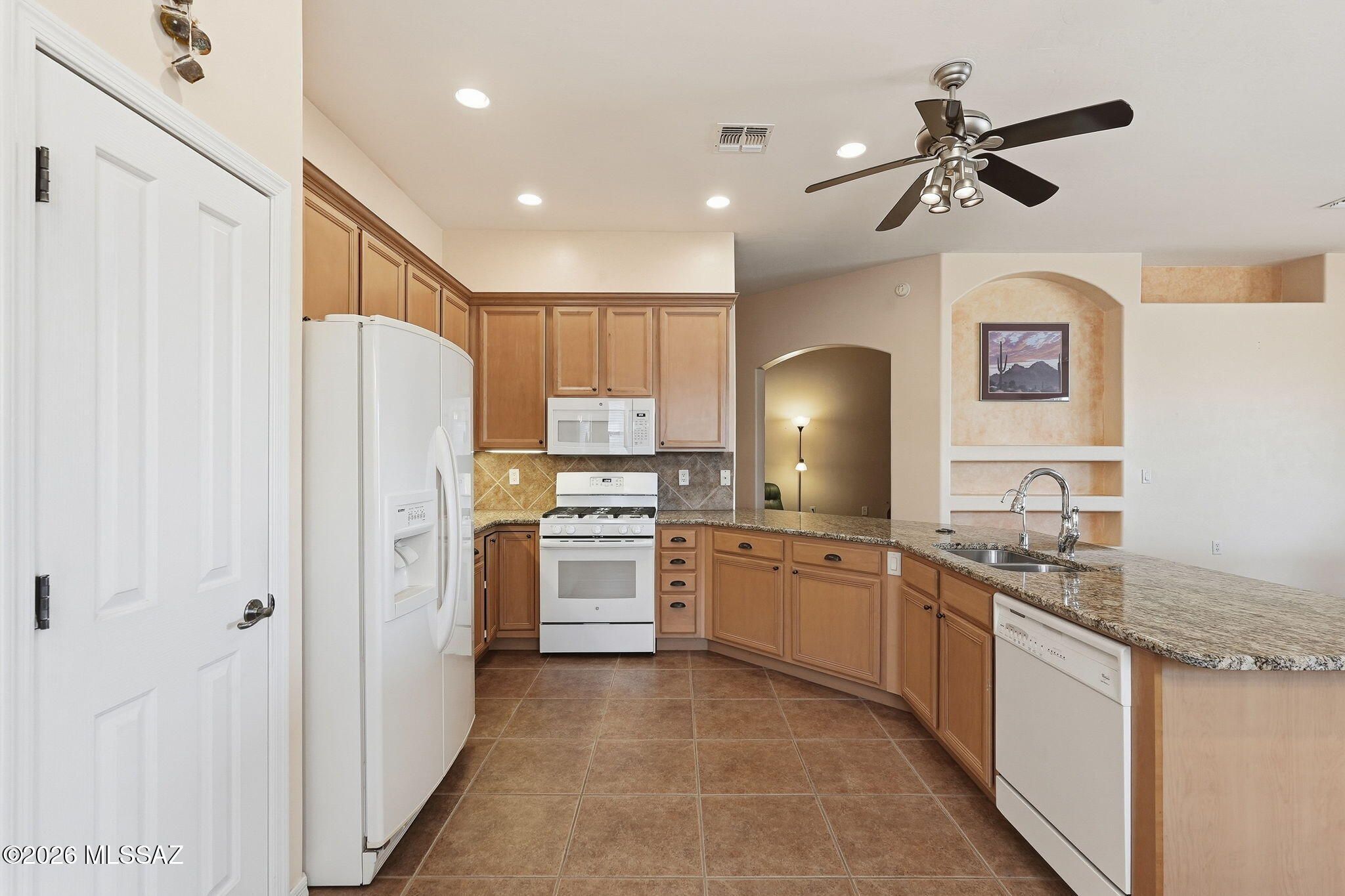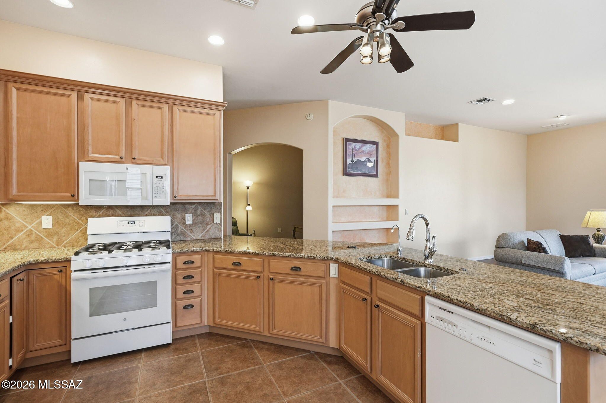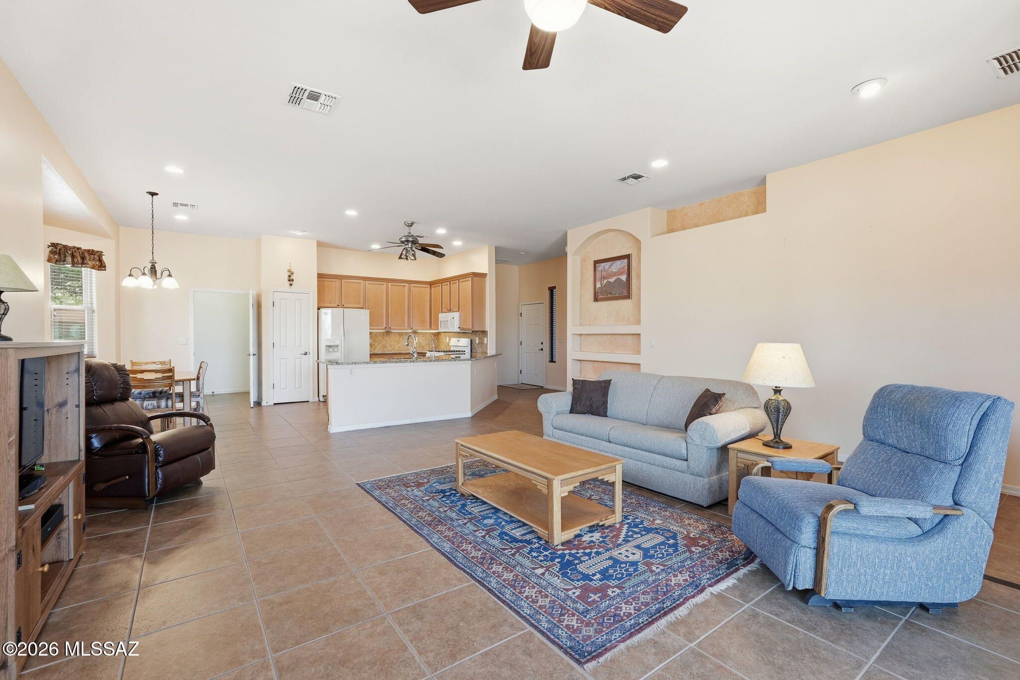Experience comfortable, easy Southwest living in this well-maintained 1,599 sq. ft. home, ideally situated in the heart of Green Valley. Offering 2 bedrooms, 2 bathrooms, a versatile den, and a 2-car garage, this home is thoughtfully designed for both everyday comfort and relaxed entertaining.A spacious front courtyard creates a warm welcome and provides a private setting to enjoy morning coffee or quiet afternoons. Inside, the open great room is filled with natural light and centered around a cozy fireplace, adding both charm and a sense of comfort. The adjoining kitchen is designed to stay connected to the living space and features granite countertops, white appliances, generous cabinetry, and a functional layout that makes hosting simple.