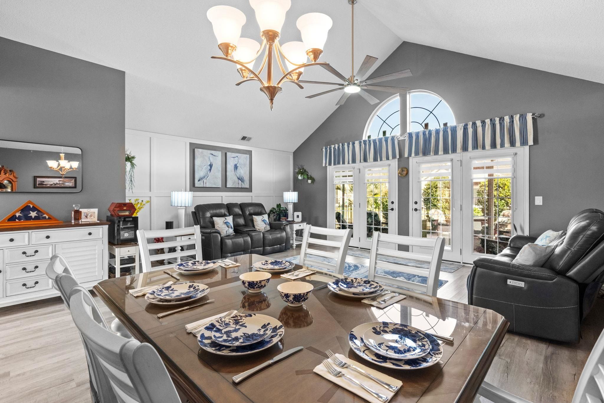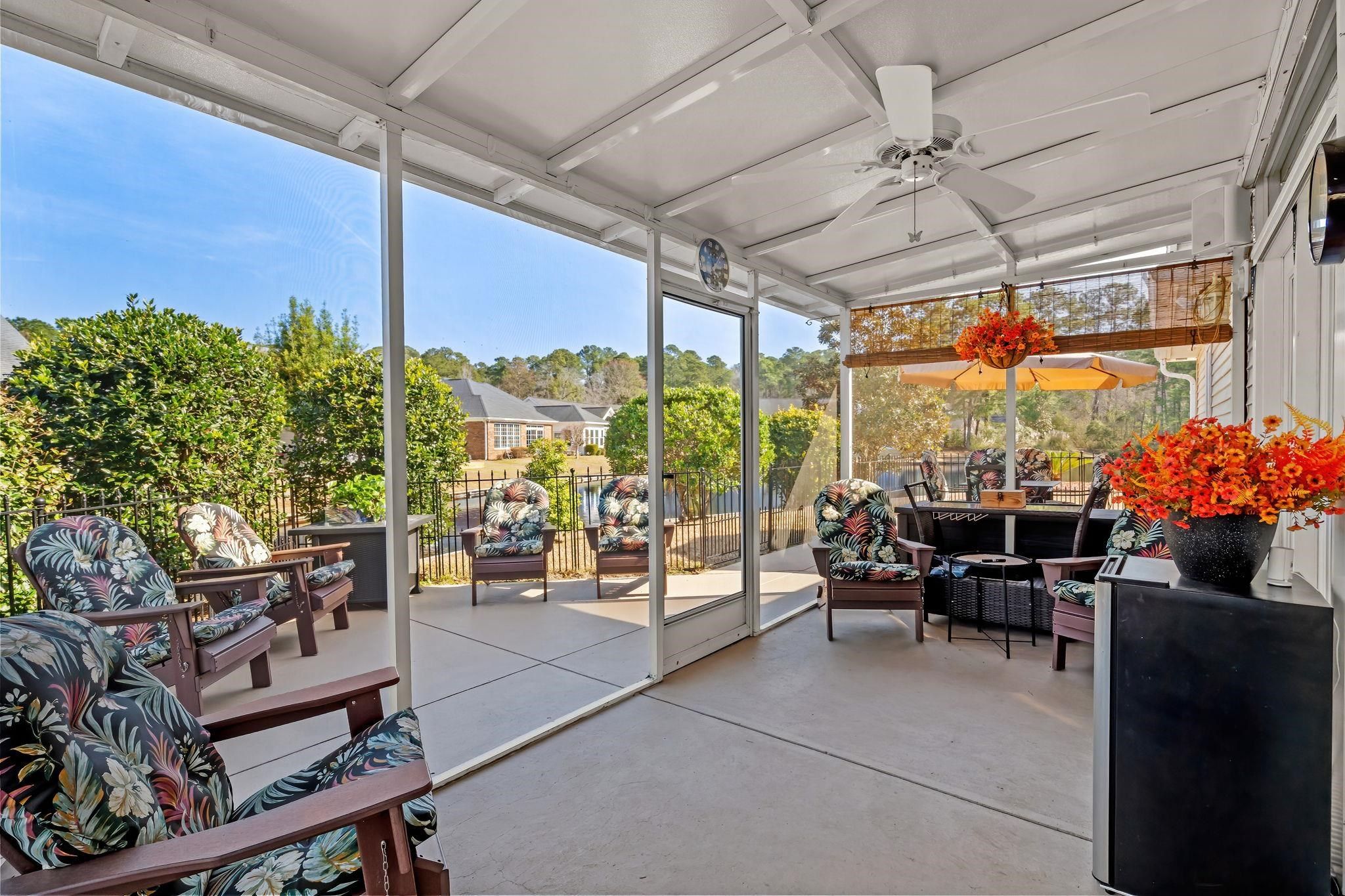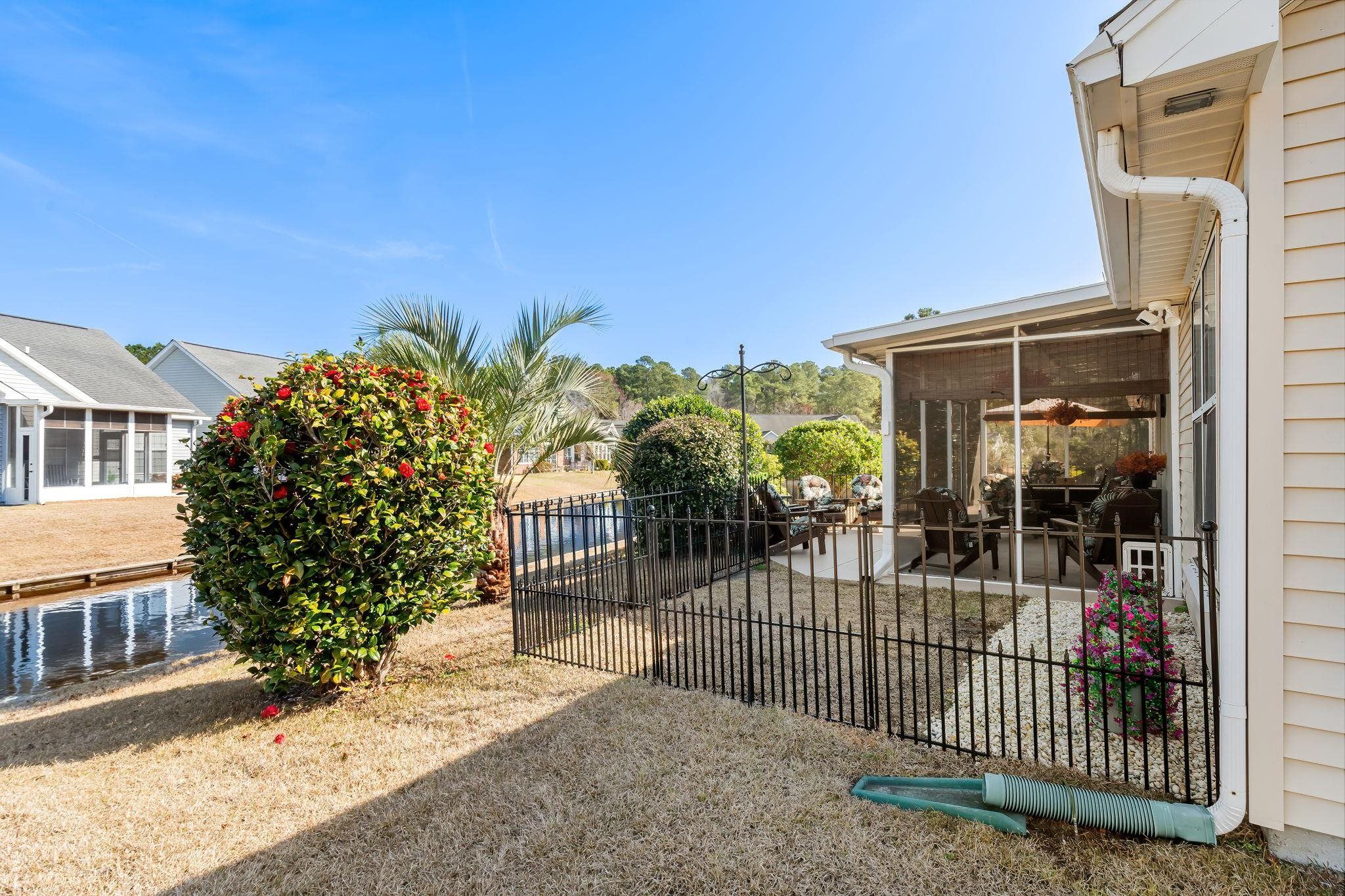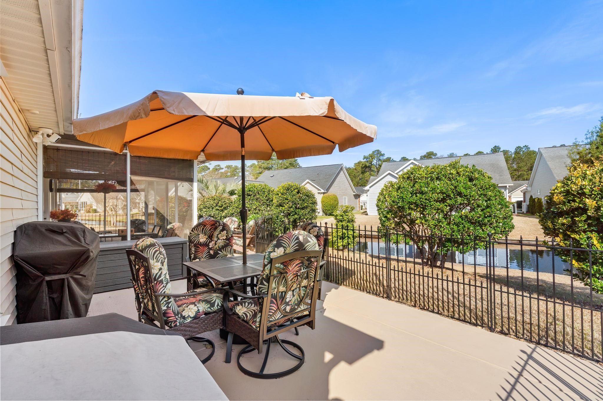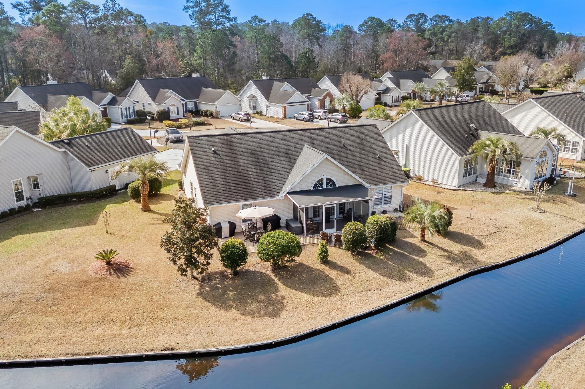 Water views, cul-de-sac privacy, and fully furnished in an active 55+ community just minutes from historic downtown Conway and a short drive to Myrtle Beach. Enjoy low-maintenance coastal living in this beautifully updated, move-in ready home offering modern upgrades and a vibrant community lifestyle. Step inside to a bright open floor plan featuring vaulted ceilings, luxury vinyl plank flooring, fresh paint throughout, and stylish finishes. The spacious living room showcases Zebra shade window coverings, custom board and batten accents and stunning French doors that open to the screened porch, filling the home with natural light and creating the perfect indoor-outdoor living space to relax and enjoy peaceful water views. The updated kitchen boasts new granite countertops, freshly painted cabinetry with new cabinet doors and hardware, tile backsplash, new appliances, along with a bright breakfast nook with a charming bay window that fills the space with natural light and updated lighting, offering a modern and functional space ideal for everyday living and entertaining. The primary suite includes a fully renovated bathroom with a tile walk-in shower, new vanity, updated tile flooring, modern lighting, barn door entry, and exhaust/heat fan. Additional bedrooms feature new carpeting and updated finishes. Enjoy relaxing outdoors on the screened porch with a new roof or entertain guests on the adjoining patio overlooking the fenced backyard. The yard has been refreshed with new sod and irrigation for easy maintenance and year-round curb appeal. Security system conveys with home as well as hurricane shutters which are currently stowed in the spacious attic. Additional highlights include a spacious two-car garage offering plenty of room for parking, storage, or hobbies. Residents of this low hoa, welcoming 55+ community enjoy access to a saltwater pool, shuffleboard, bocce ball, clubhouse for event space, and an active social calendar with several clubs and activities including card games, dining groups, and neighborhood gatherings. With its peaceful cul-de-sac setting, beautiful water views, thoughtful updates, and welcoming community lifestyle, this home offers the perfect blend of comfort and convenience. Being sold fully furnished so it’s truly move-in ready. Schedule your private showing today and come experience everything this wonderful home has to offer.