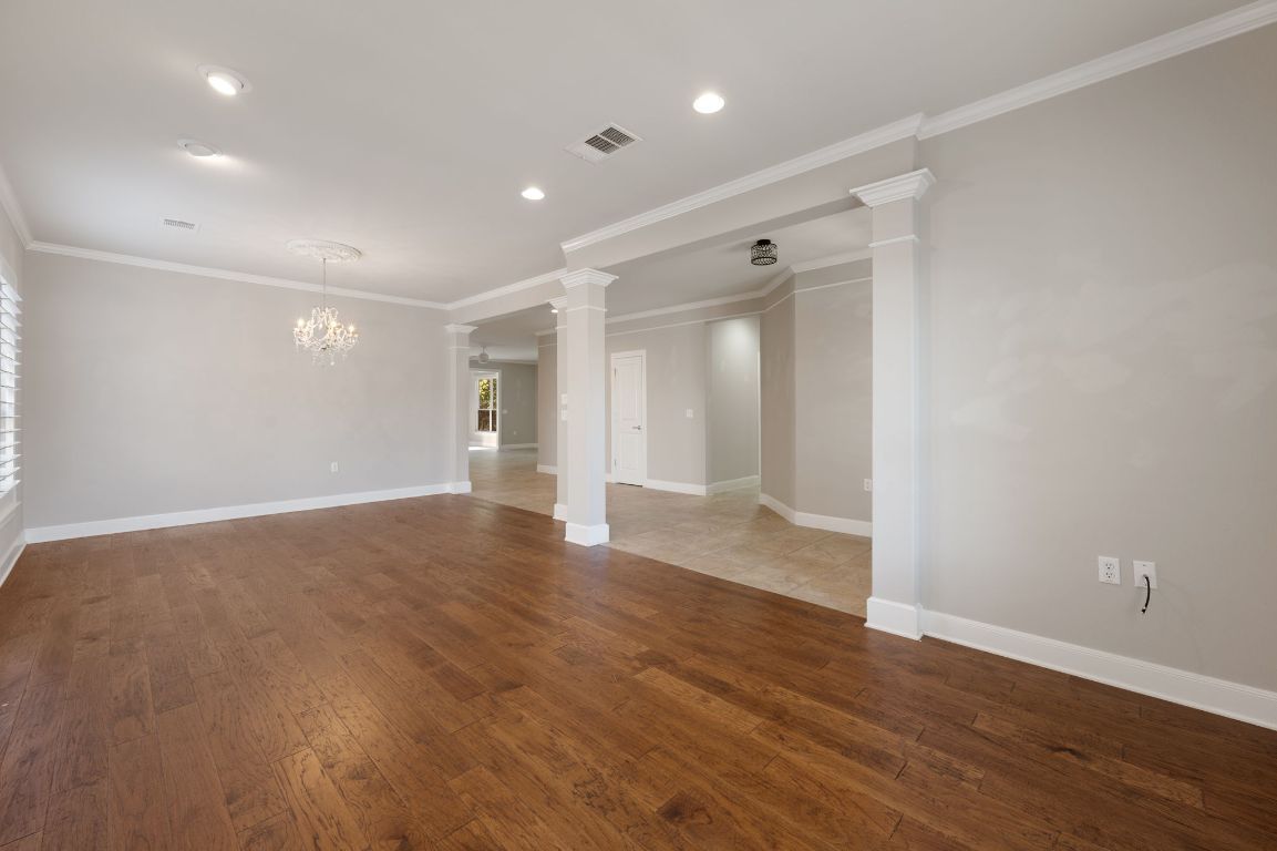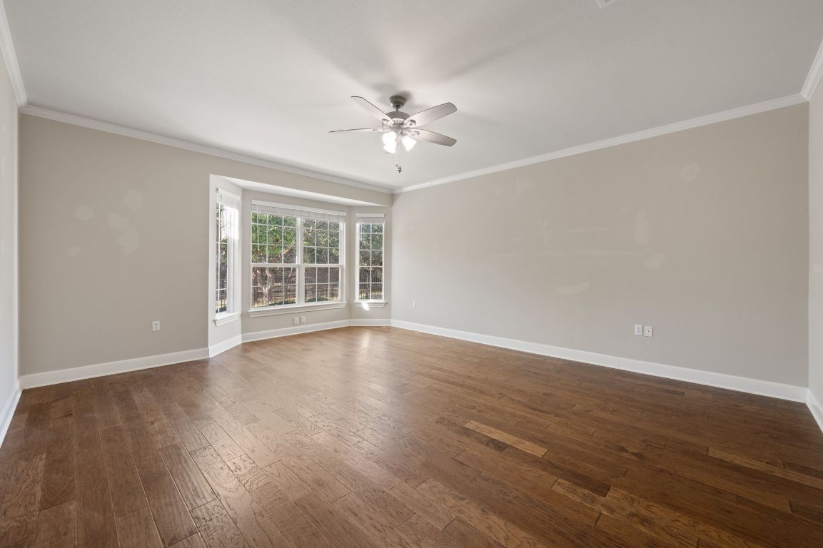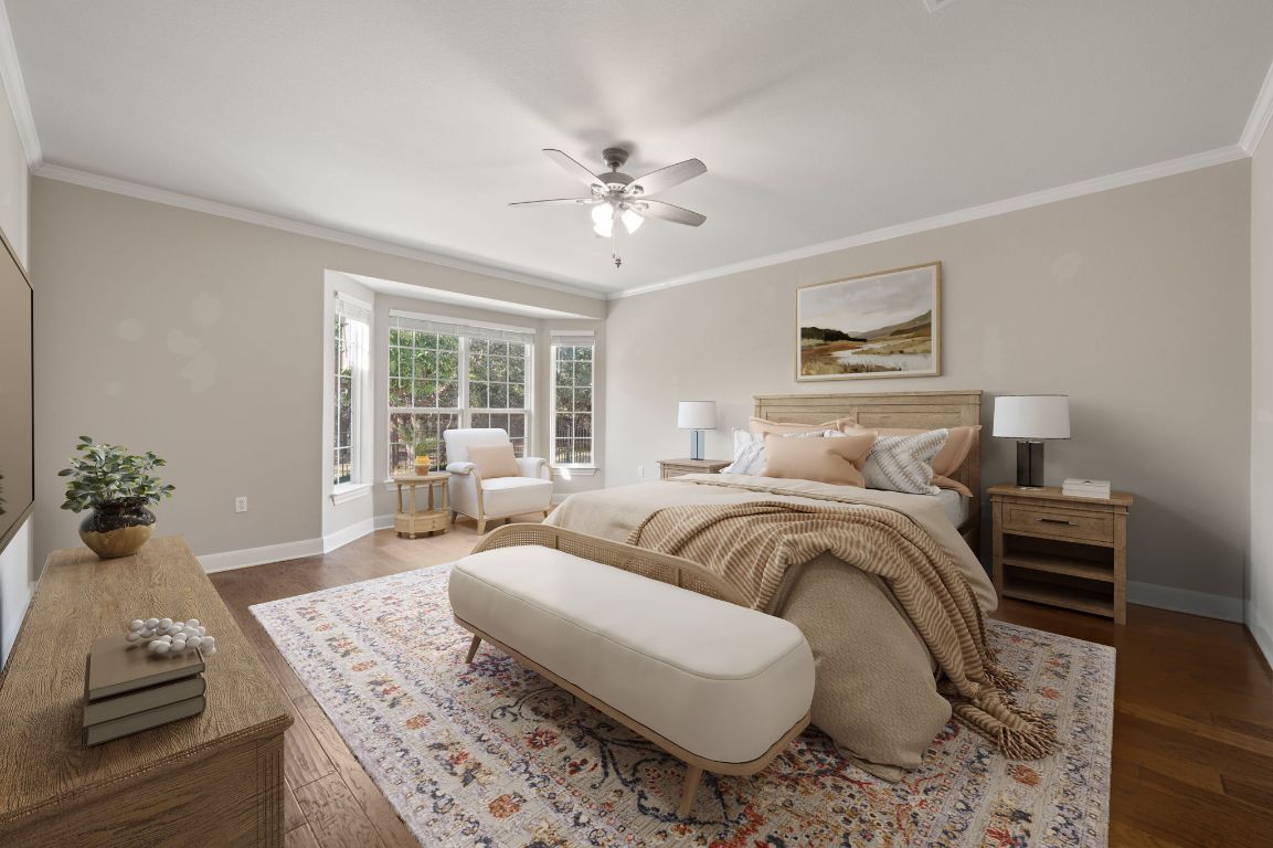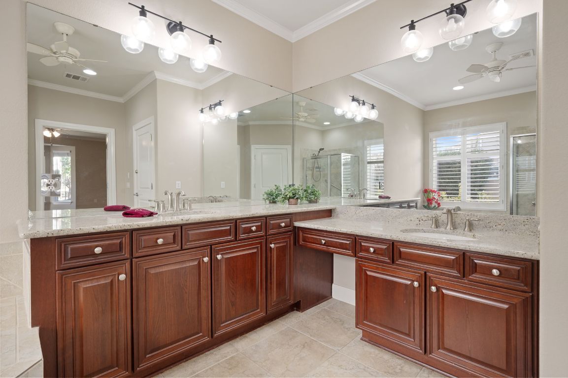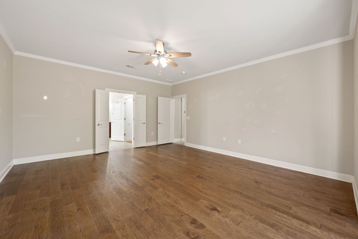 - Breakfast Bar, Ceiling Fan(s), Crown Molding, Double Vanity, Entrance Foyer, Eat-in Kitchen, Granite Counters, Kitchen Island, Main Level Primary, NoInteriorSteps, Open Floorplan, Pantry, Recessed Lighting, Walk-In Closet(s)