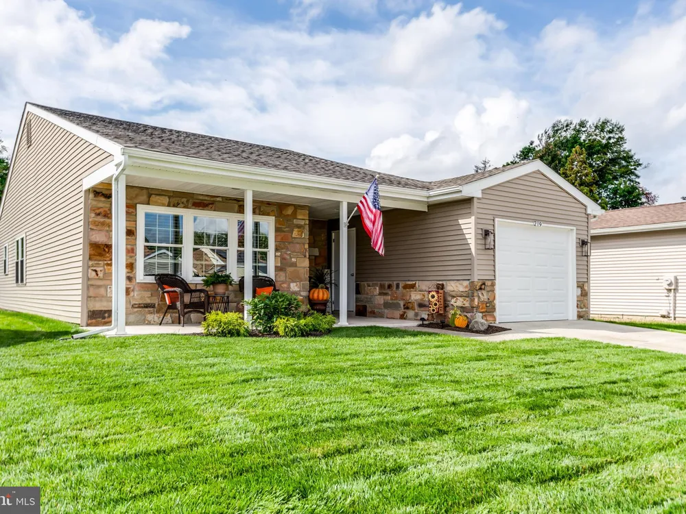 What an Extraordinary Opportunity! This Immaculate, Fresh and Stunning Haverford Model boasts more than 1350 Sq. Ft. of Beautiful Living. From the time you pull up onto the Concrete Driveway you will be Besotted by this Home’s Beauty and Attention to Detail. It all begins as you step onto a Lovely Covered Porch with Stone Façade, Tranquil in all ways! As we walk through the Welcoming Front Door, you will immediately notice the Elegance of this Home. Greeted by Stunning Luxury Plank Flooring that gives the Home Depth and Refinement. Every Room in this home is Expertly Appointed in Style and Presentation. The Living and Dining Room are Open allowing for Large or Small Gatherings. A Bespoke Ceiling Fan and Dining Room Chandelier are indicative of the Class that Abounds. Ample in Size and Layout these Rooms can Accommodate your Style of Furniture. We now move forward into the Pride and Place of this Home, a Sophisticated Kitchen Featuring Soft-White Soft-close 42” Cabinets Accented with Crown Molding, Complimented by Coordinated Hardware. Striking Custom Leather-finish Granite Countertops, Rich Subway Tile Backsplash, Deep Sink with Gooseneck Faucet, and Stainless Steel Appliances Accentuate this Kitchen’s Beauty! A Lovely Island with Additional Cabinetry offers Versatility and Completes the Space. Looking for that little “Extra” for your Kitchen Sundries? How about a Walk-in Pantry? Can I have the Keys, Please?!? Yes, There is more…a Back Door leading to a Covered Trex Patio offers a Respite for Afternoon Talks and Quiet Enjoyment! Back inside, you will find a Large Primary Bedroom, which is Carpeted for Softness under your feet and Features a Ceiling Fan, Ample Walk-In Closet and a Sumptuous Dedicated Updated Bathroom Replete with an Expanded, Tiled Walk-in Shower, Lovely Vanity and Coordinated Medicine Cabinet and Mirror is all for You! Tasteful all the way! The Main Bathroom, which your Guests will Admire, is Beautiful! Sparkling Tub-Shower, Coordinated Vanity and Medicine Cabinet offer an Aesthetically Pleasing Contrast to the Crispness of this Bathroom. More Elegance! The Second Carpeted Bedroom with Ceiling Fan is Bright and Airy and has Ample Space to give you the Versatility of having it as a Guest, Office/Library, or Craft Room. There is a Laundry Center Conveniently Located. Through-out the Home you will find Raised Panel Doors, Energy Efficient “Low-E” Glass all with Custom Window Treatments. There is also a Recently Installed Sprinkler System to help Maintain that Lush and Plush Front Lawn! Come and Discover this Impeccable Home, Refreshing and Exquisite in Every Detail.