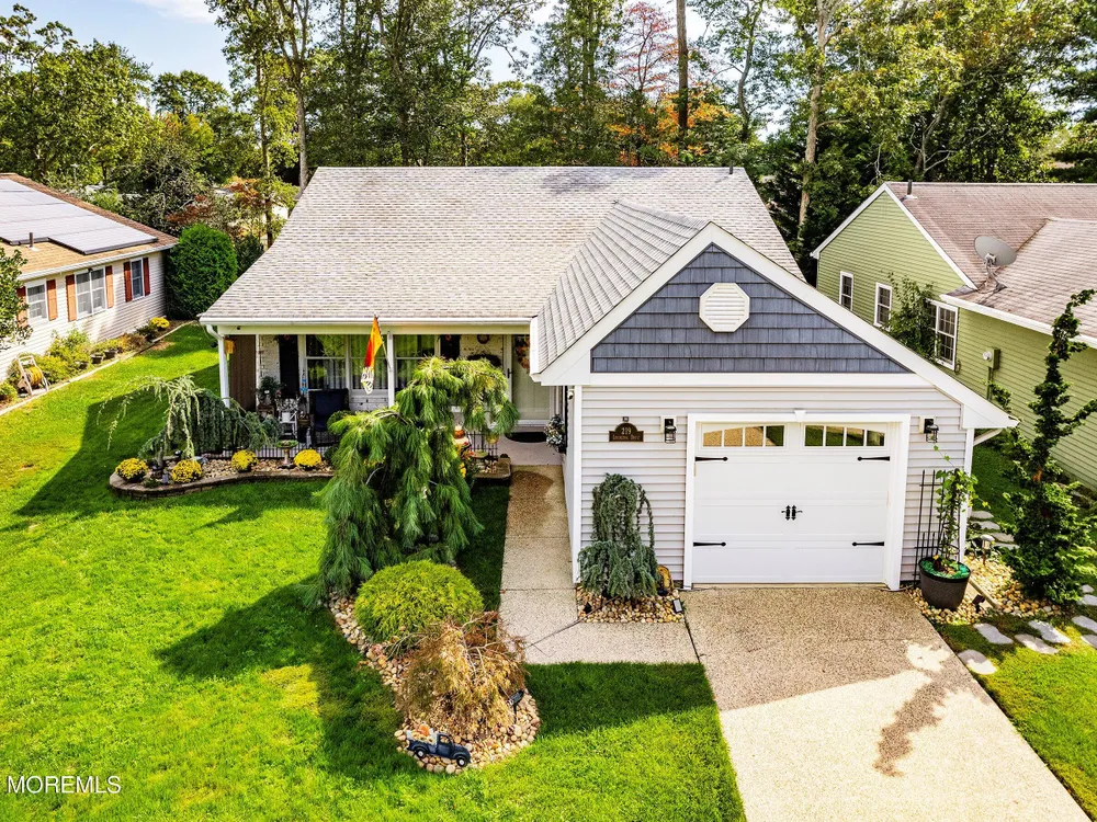 Pride of Ownership in this Charming Jamesburg model home with a front porch, enclosed 3-season sunroom, abundance of storage, including a floored attic over the garage & new pull-down stairs. Some recent updates (1-7 years) include new vinyl siding, landscaping, Tankless water heater, washer, dryer & more! Relax on the new paver patio backing to the woods. The updated kitchen features attention to detail for all your cooking needs with 42'' custom Adornus cabinetry with soft-close, a new fridge with double ice maker, double oven stove, garbage disposal, pantry, and large spice rack. Enjoy Mystic Shores Community amenities, large pool, bocce, clubhouse with daily activities, & a private bus with many planned trips, all with low taxes & HOAs!
