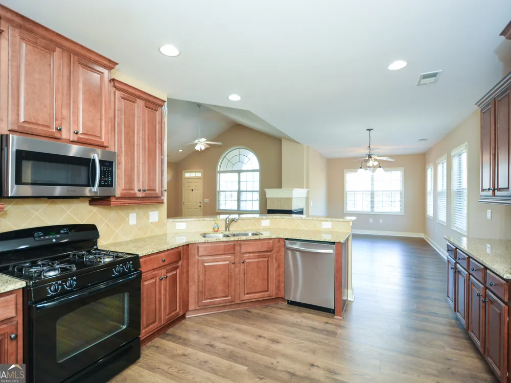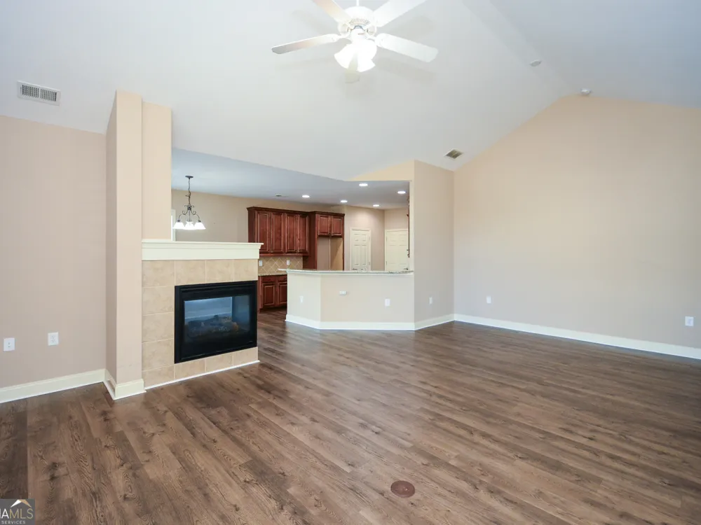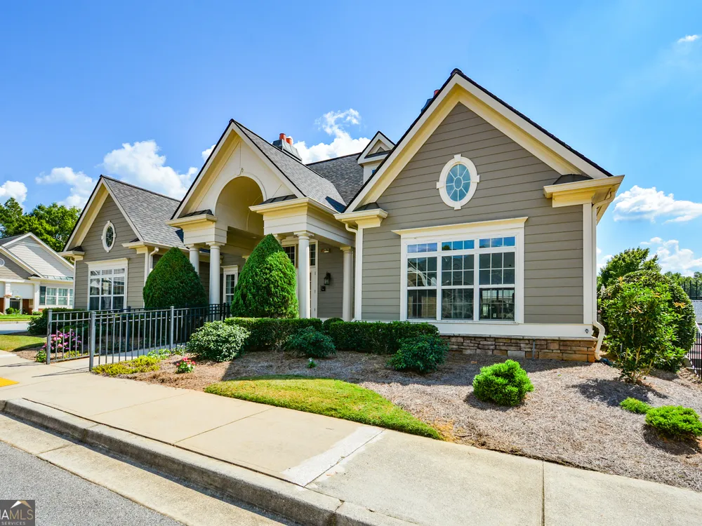 Welcome to Orchards of East Cherokee, a Highly Sought-after 55+ Community in the Hickory Flat Area offering Low-Maintenance living with Unmatched Convenience. Just minutes from Vibrant Downtown Woodstock, Shopping, Dining, Healthcare, and Parks, it combines Comfort and Lifestyle in One. This Former Model Home features a Spacious 2-Bedroom, 2-Bathroom Open Floor plan with High Ceilings, Hardwood Floors, and Lots of Natural Light. The Chef's Kitchen is Designed for both Function and Entertaining, Complete with Granite Countertops, Under-Cabinet Lighting, Stained Cabinetry, a Gas Range, and a Cozy Breakfast Nook. A Versatile Sitting Area/Keeping room Extends Off the Kitchen, Adding Flexibility to Your Living Space. The Dining Room Flows Seamlessly into the Family Room, Anchored by a Charming Three-Sided Gas Fireplace Visible from Multiple Areas of the Home. The Owner's Suite is a True Retreat with a Spacious Layout, Dual Walk-in Closets, Double Vanities, a Walk-in Shower with Bench, and Private Water Closet. The Second Bedroom is Perfect for Guests, with Convenient Access to the Second Full Bath. An Additional Flex Room with French Doors Provides Options for a Home office, Den, Hobby Space, or Guest Room. Don't Miss the Spacious Laundry Room off the Kitchen and the Additional Storage above the Garage. Community Features a Beautifully Appointed Clubhouse with Outdoor Patios, Inviting Pool, and a Charming Fountain! This Home has it All! Make it Your First Stop!
